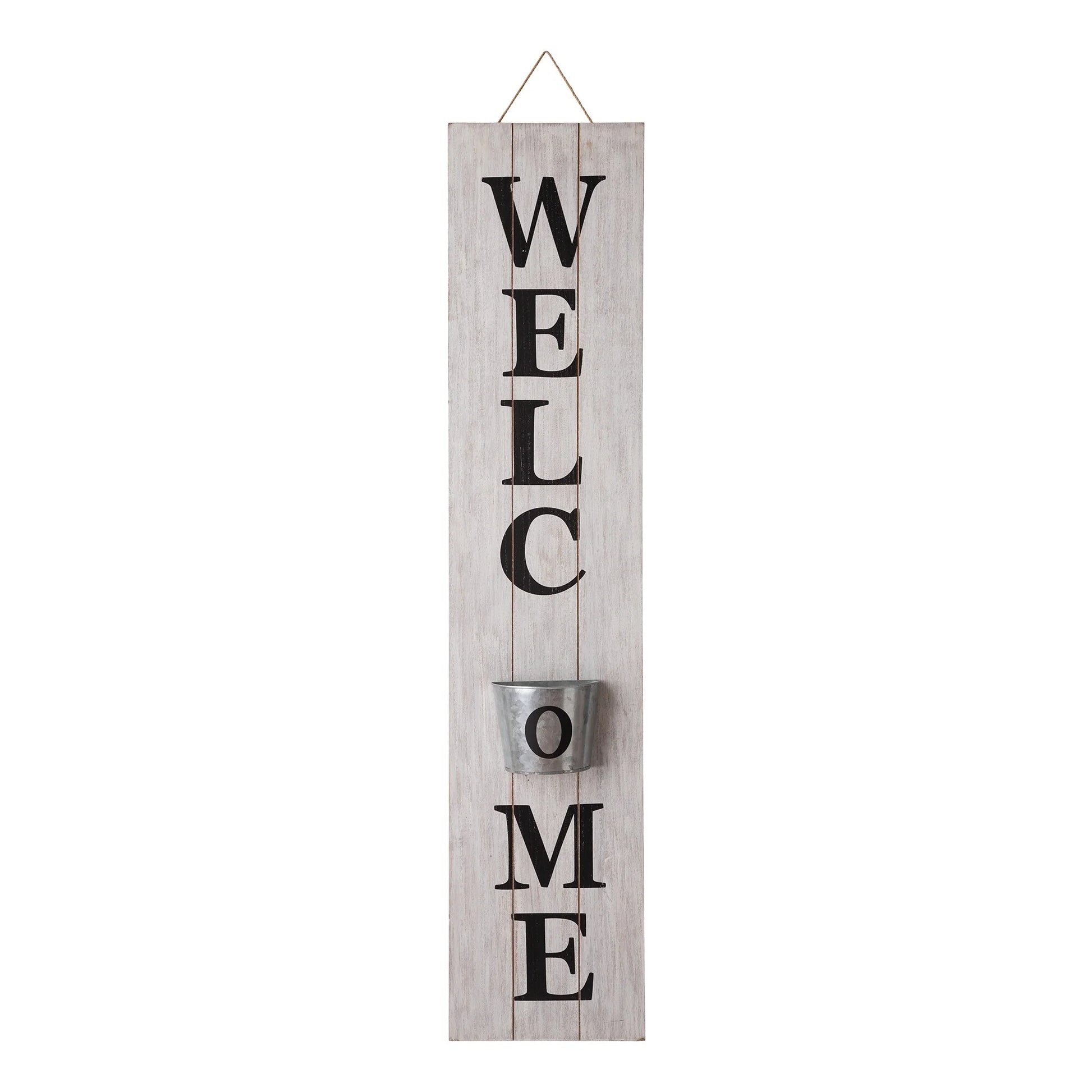 Welcome your guests in style with the Glitzhome 42" Wooden Welcome Porch Sign featuring a galvanized metal planter to showcase your favorite flowers. Available in multiple colors, this porch sign is made of MDF and metal and is both stylish and inspirational. It's easy to hang and is sure to impress anyone who walks through your door.