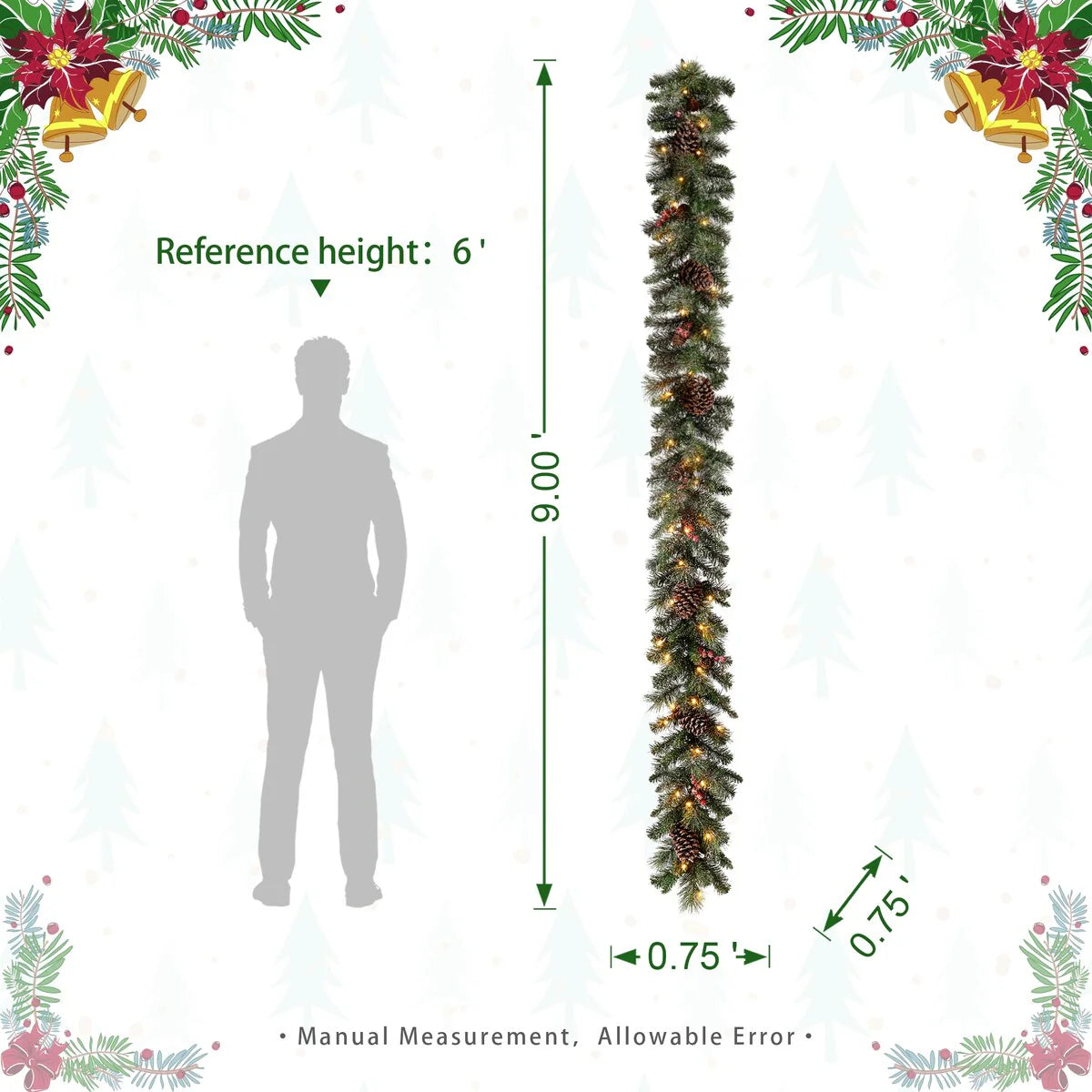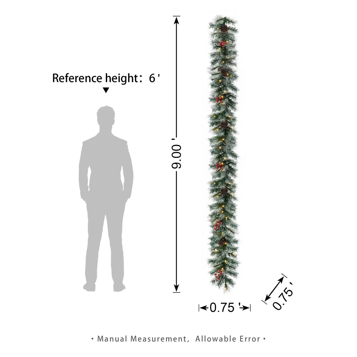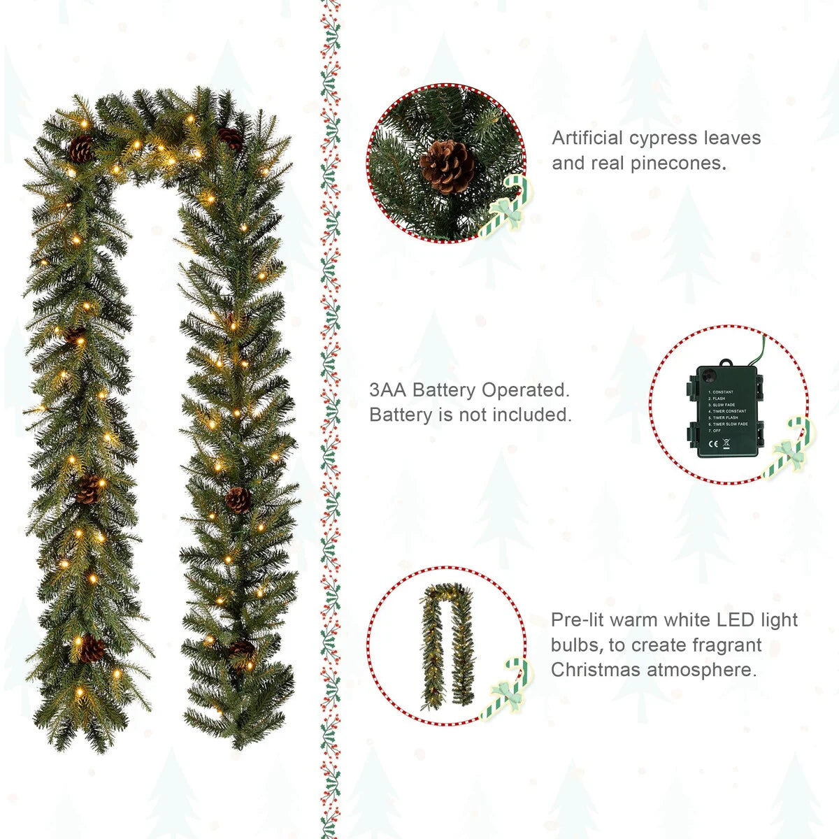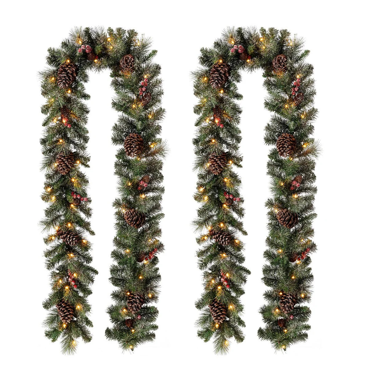 Glitzhome 9'L Pre-Lit Christmas Garland with Warm White LED Light