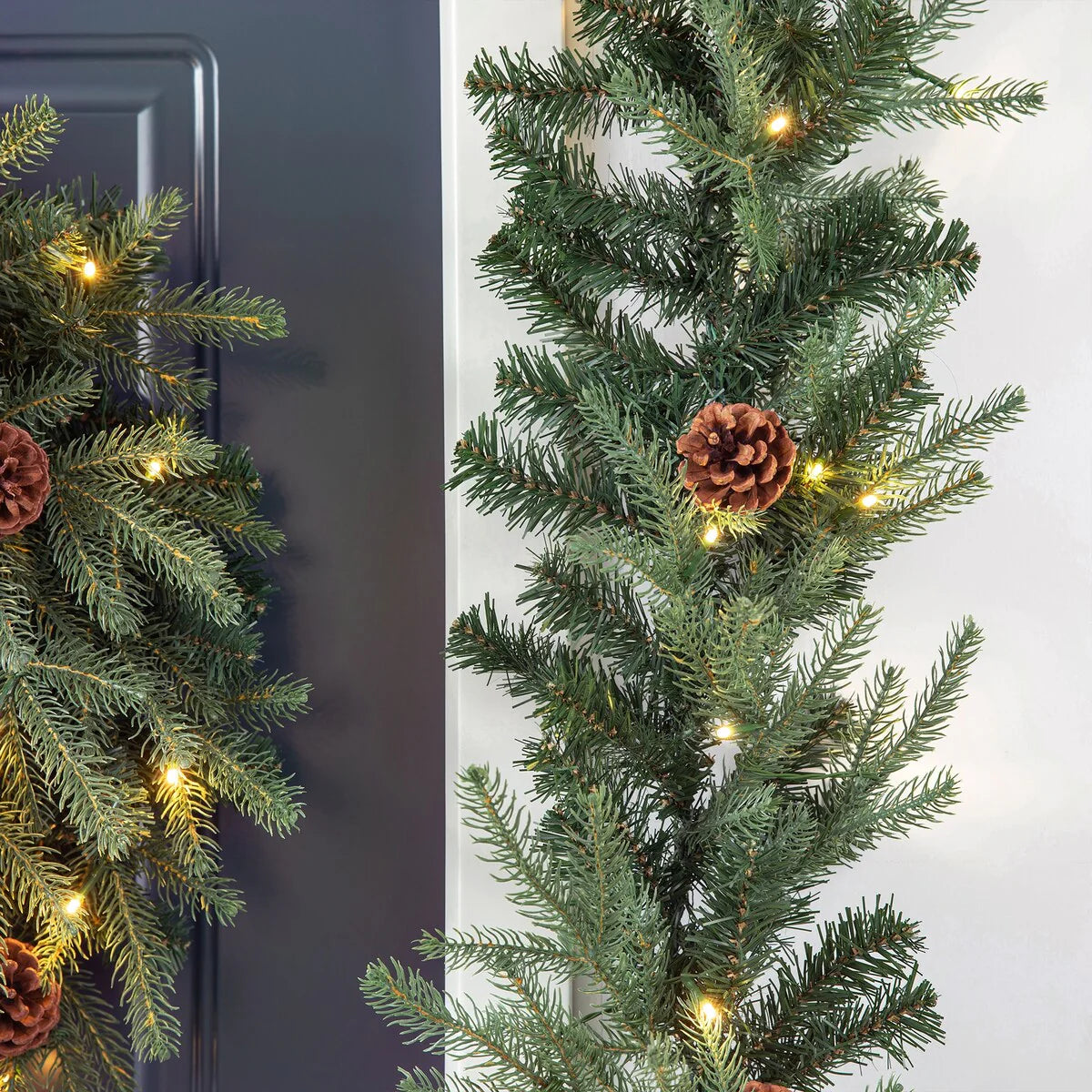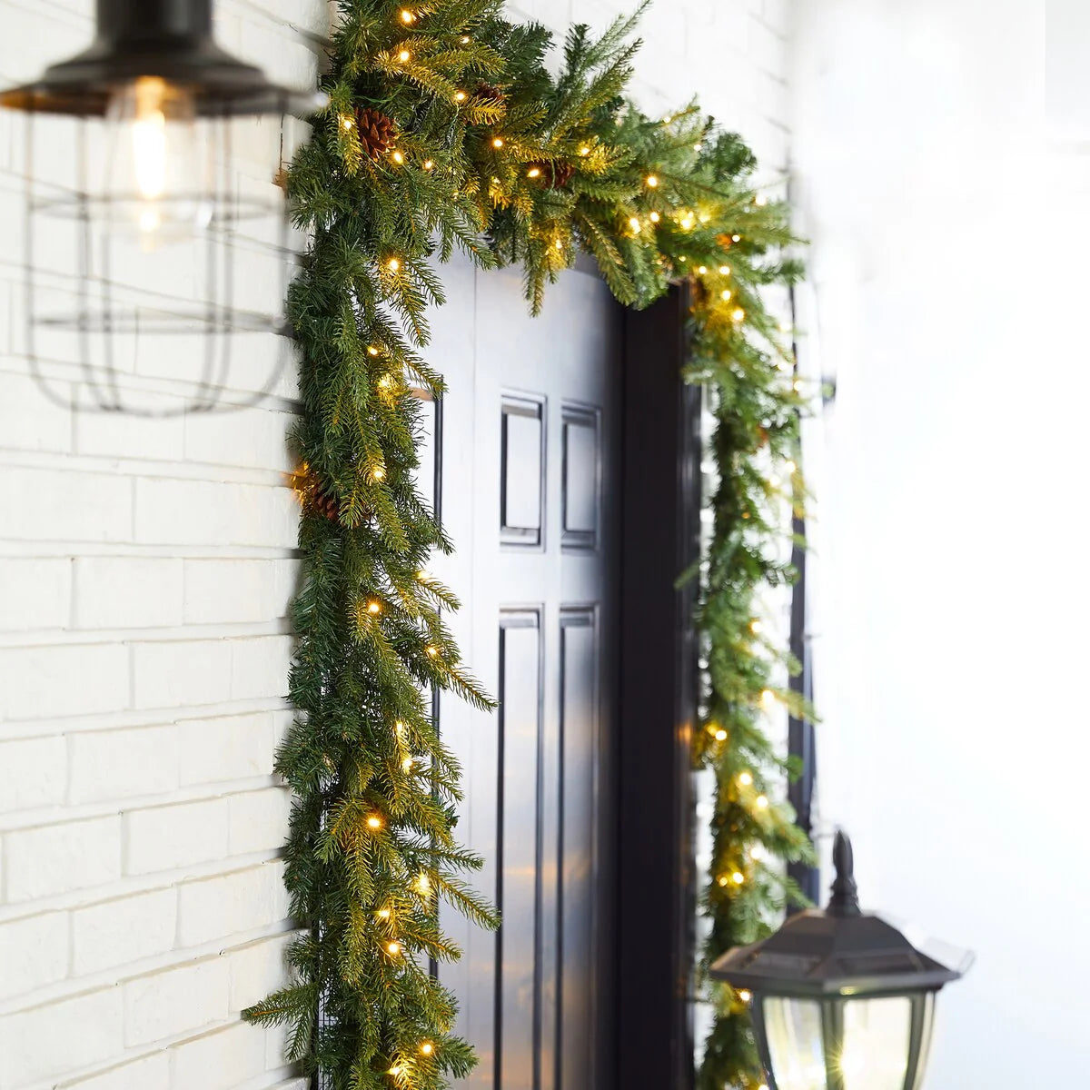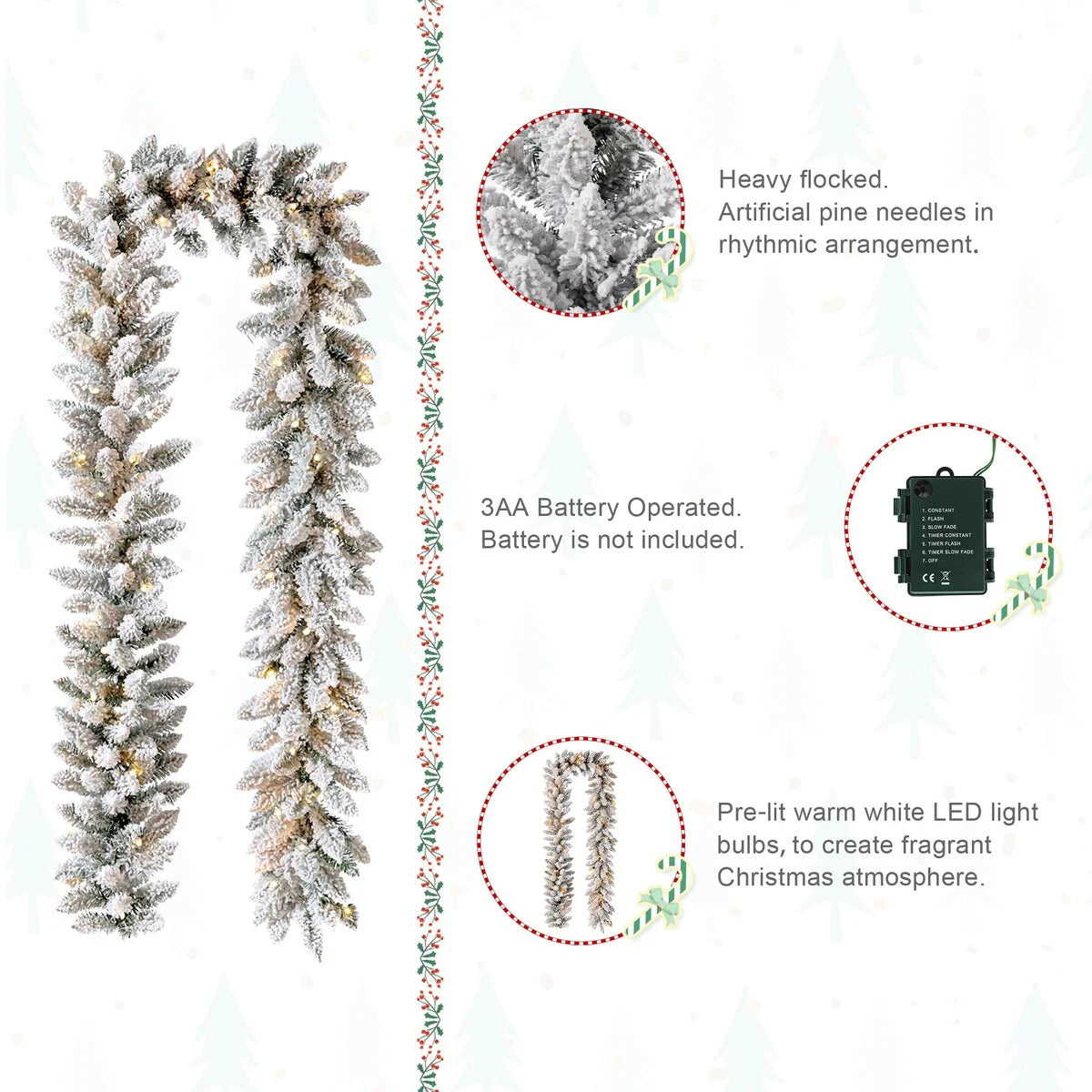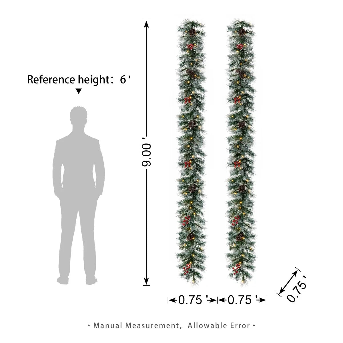 Glitzhome 9'L Pre-Lit Christmas Garland with Warm White LED Light
