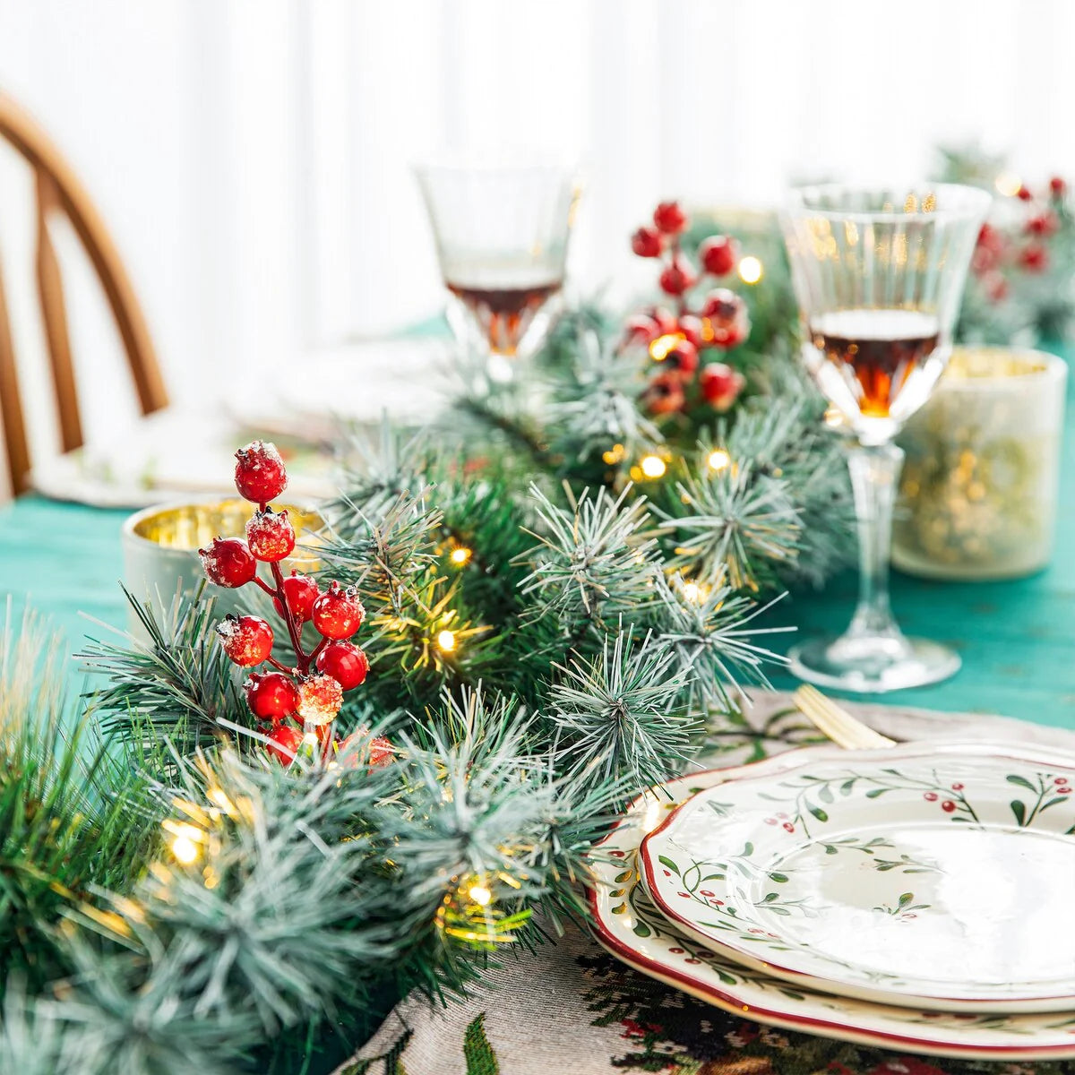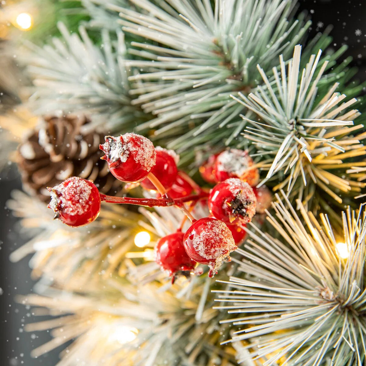 - Glitter: PINE NEEDLE TIPS: 40 PVC TIPS: 140 ROUND PINE CONES: 8 LONG PINE CONES: 8 RED BERRIES: 8 CLUSTERS, 6PCS/CLUSTER