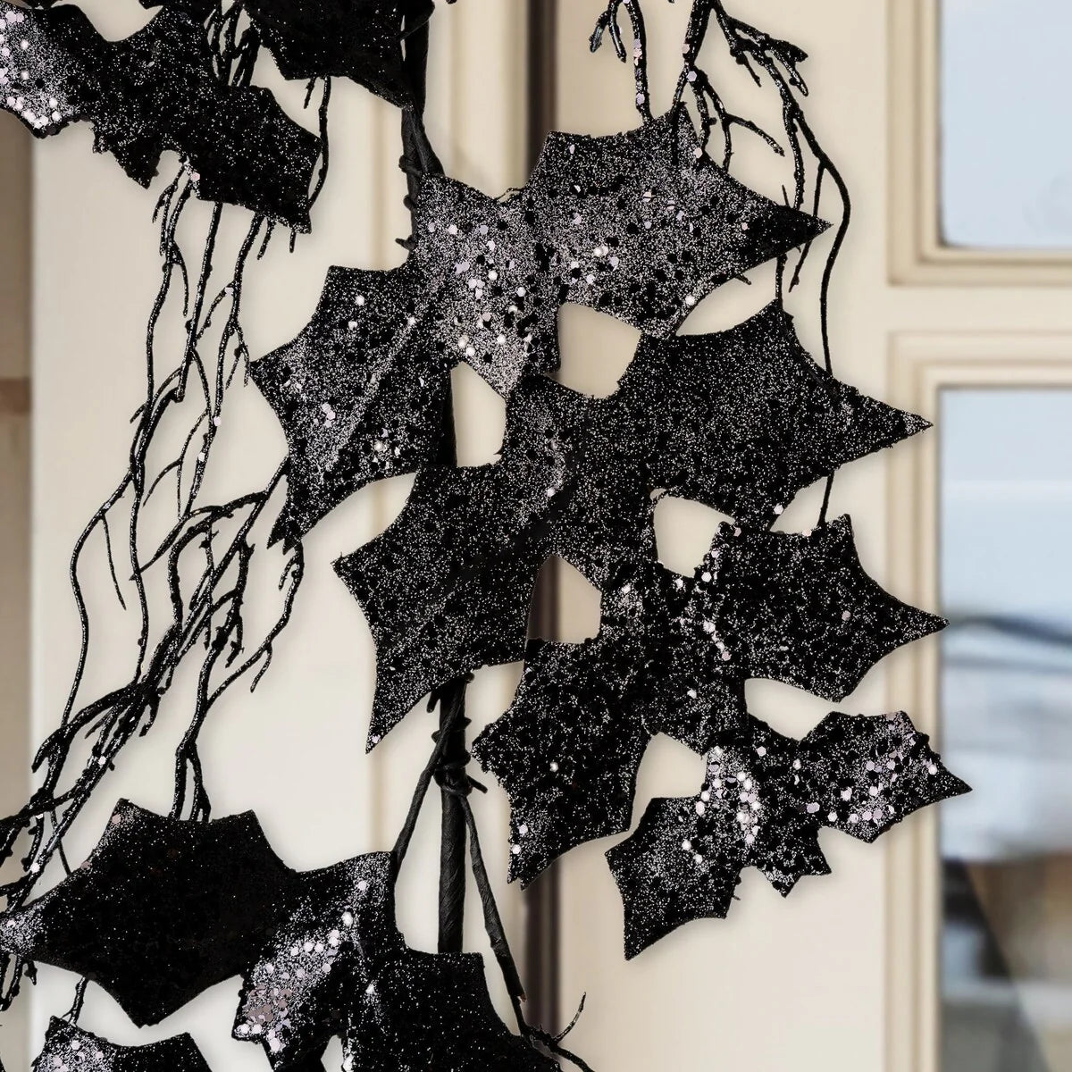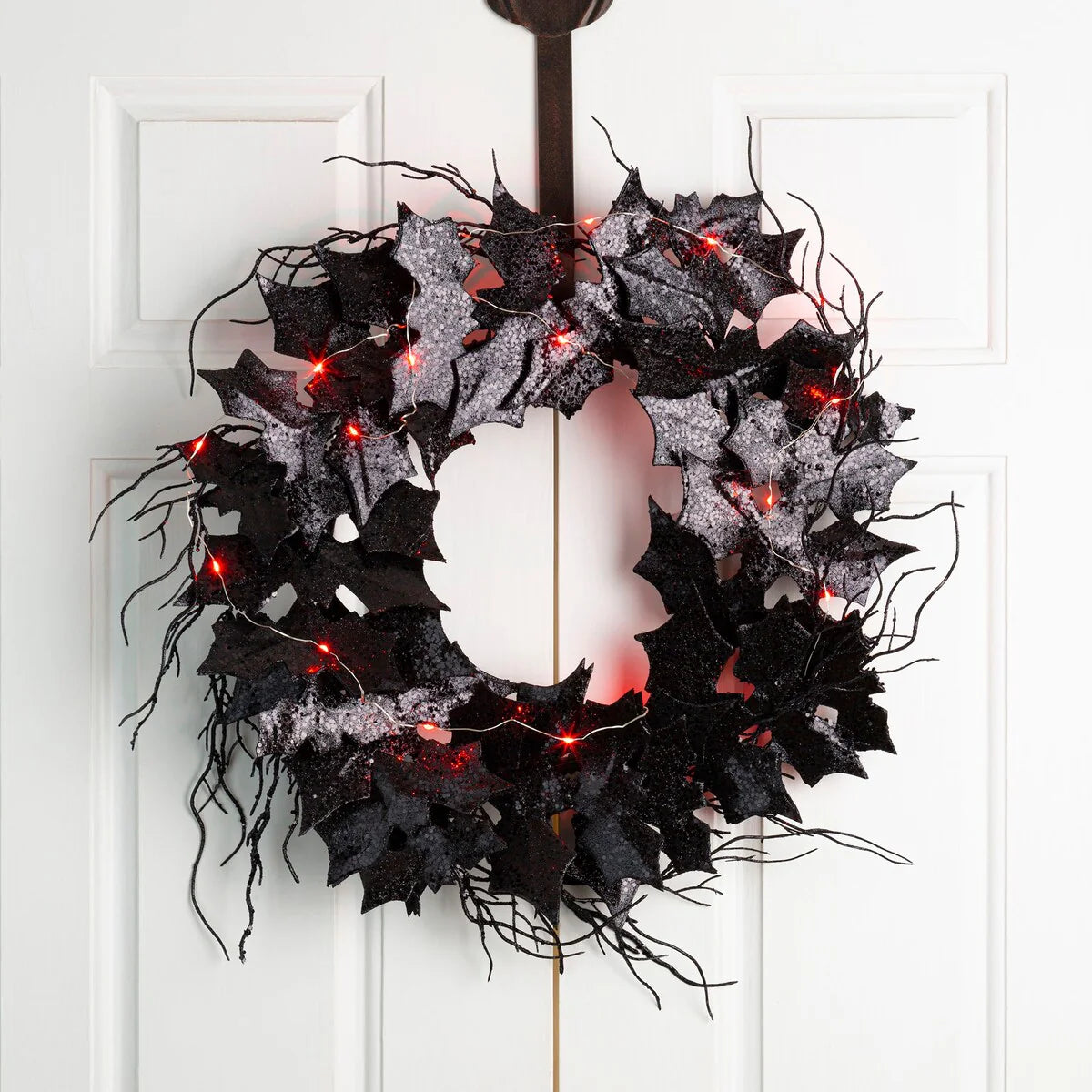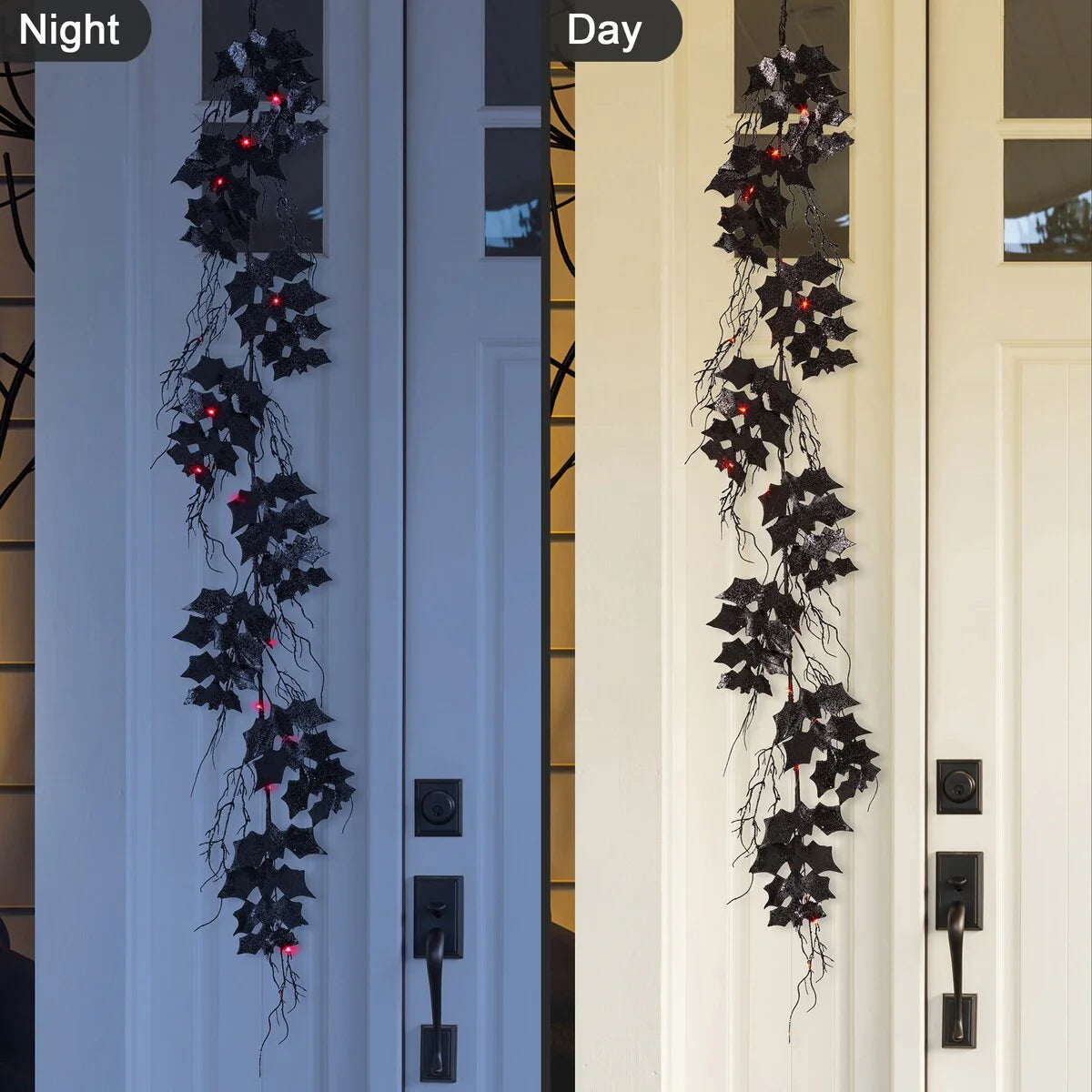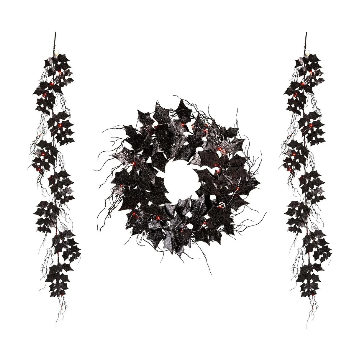 Glitzhome LED Lighted Halloween Bat Garland Wreath Wall Hanging Decor