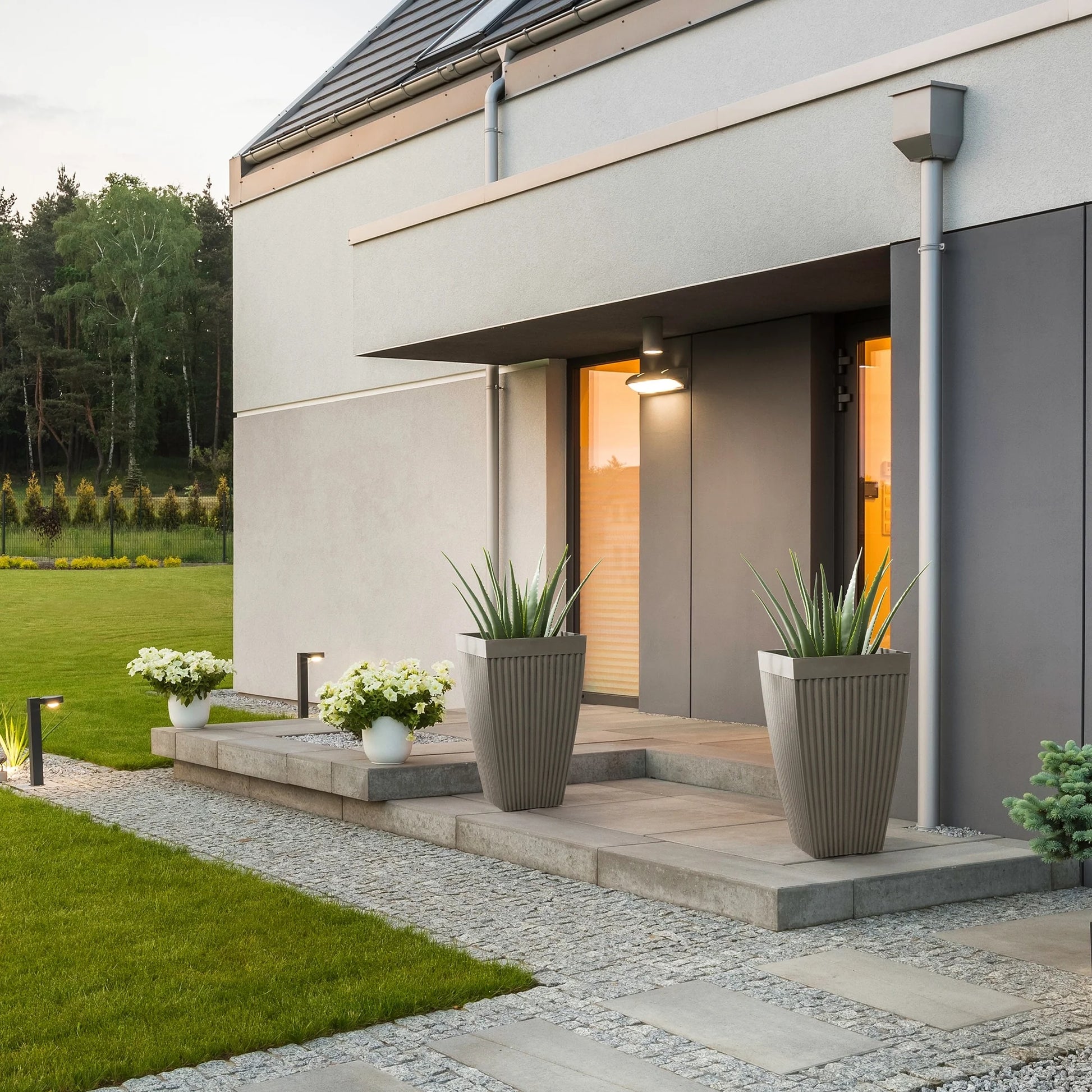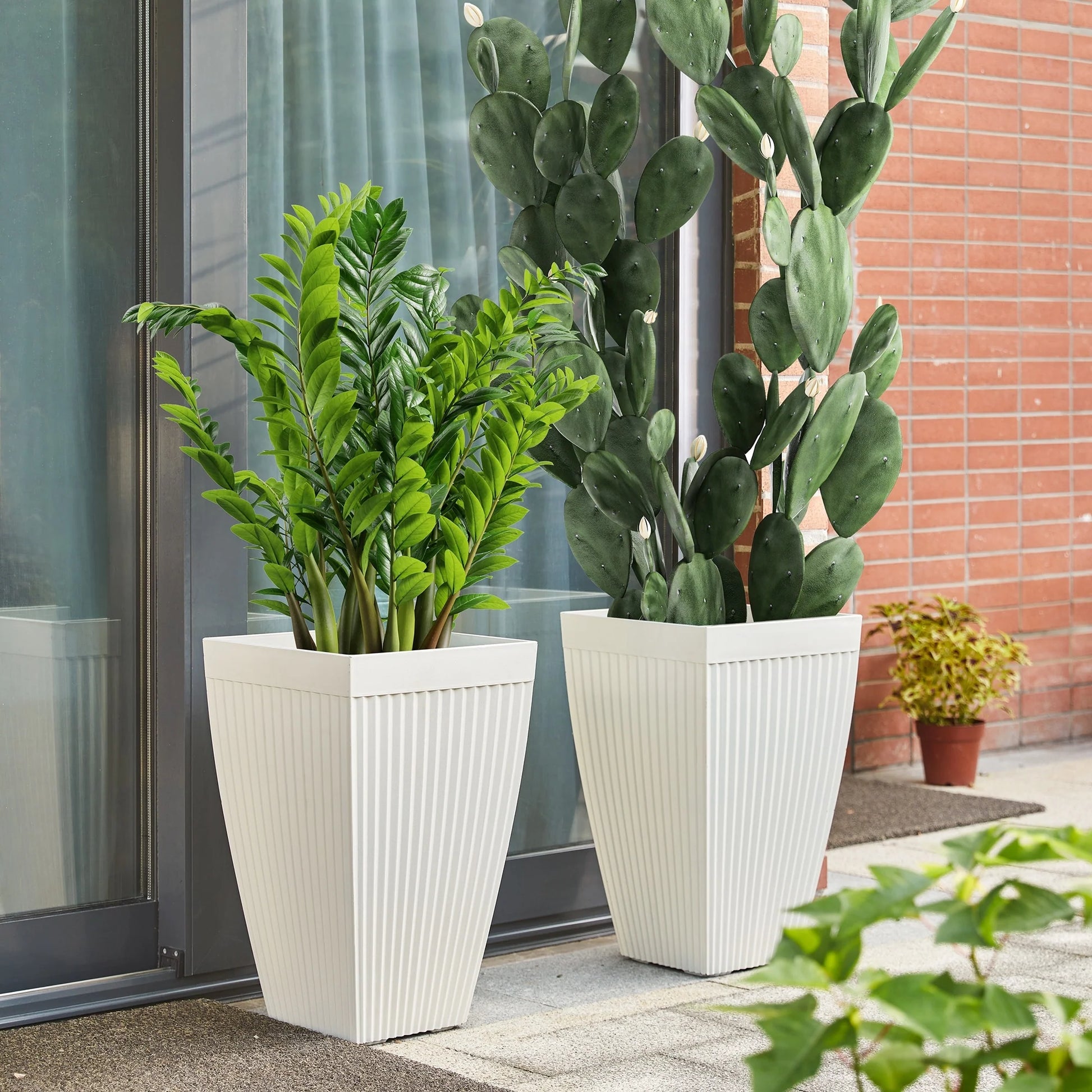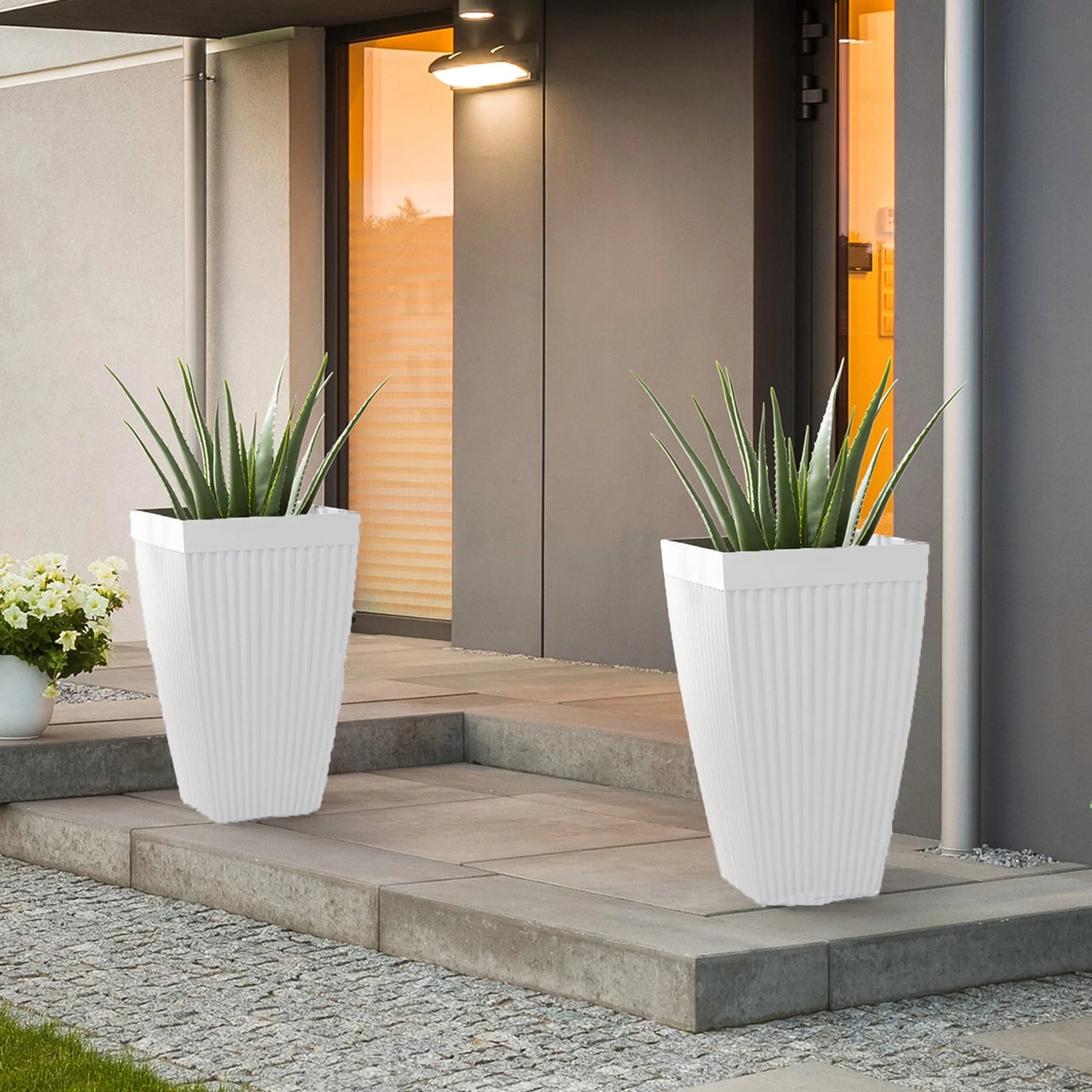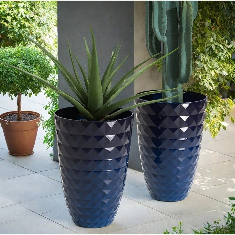 Glitzhome Oversized Eco-Friendly PE Tall Planter Porch Flowerpot (Set of 2)