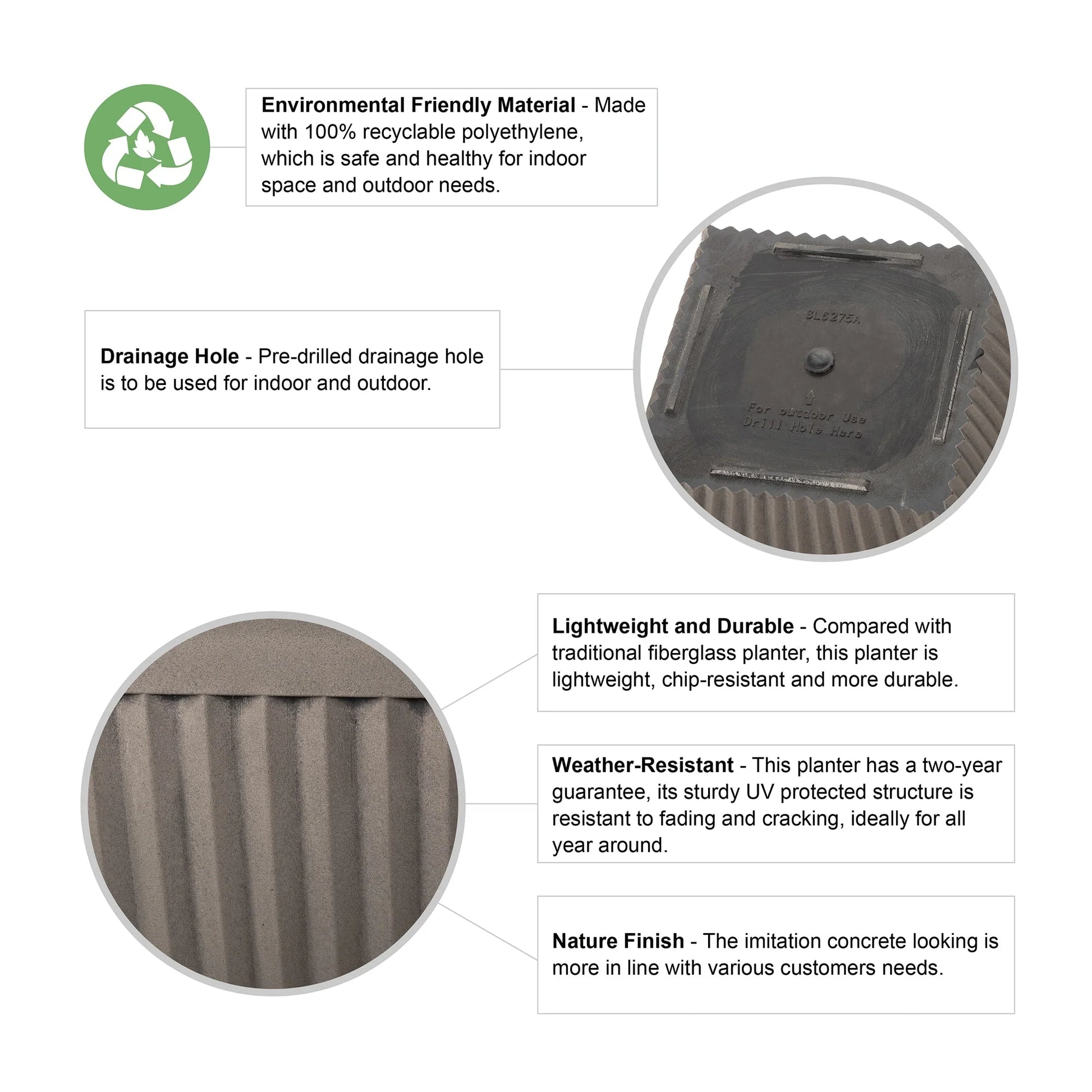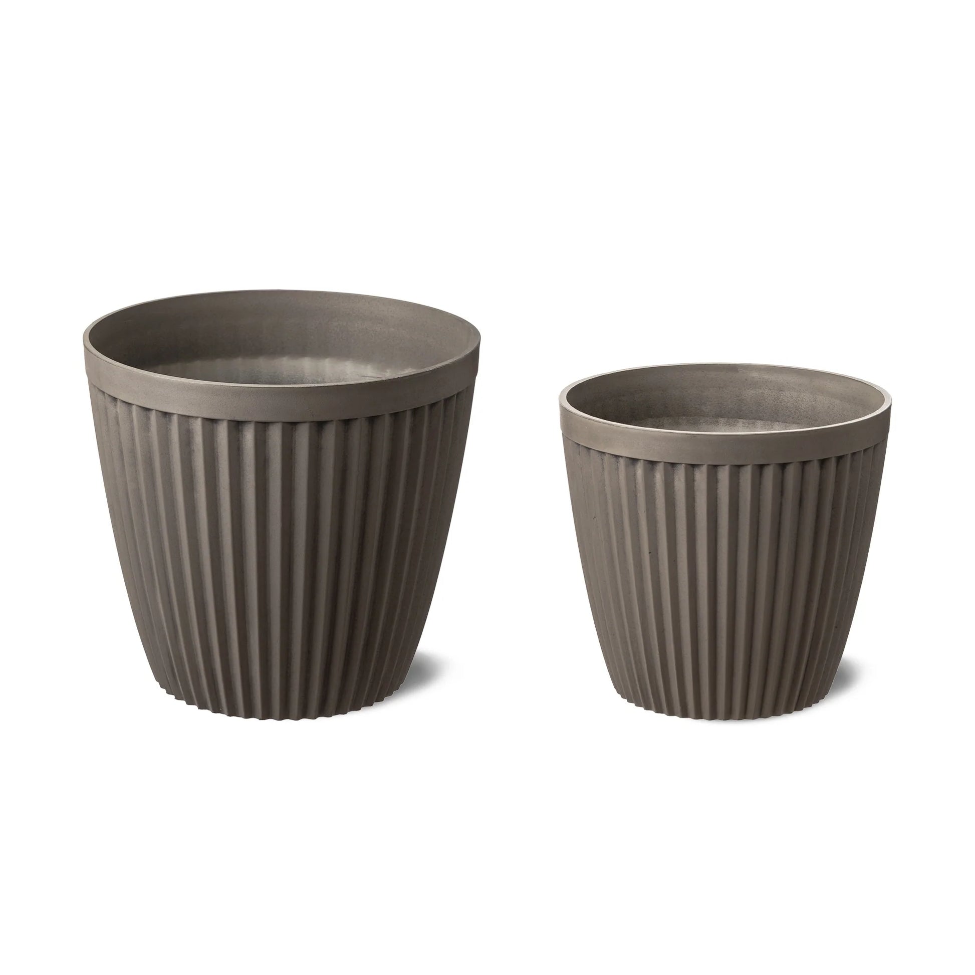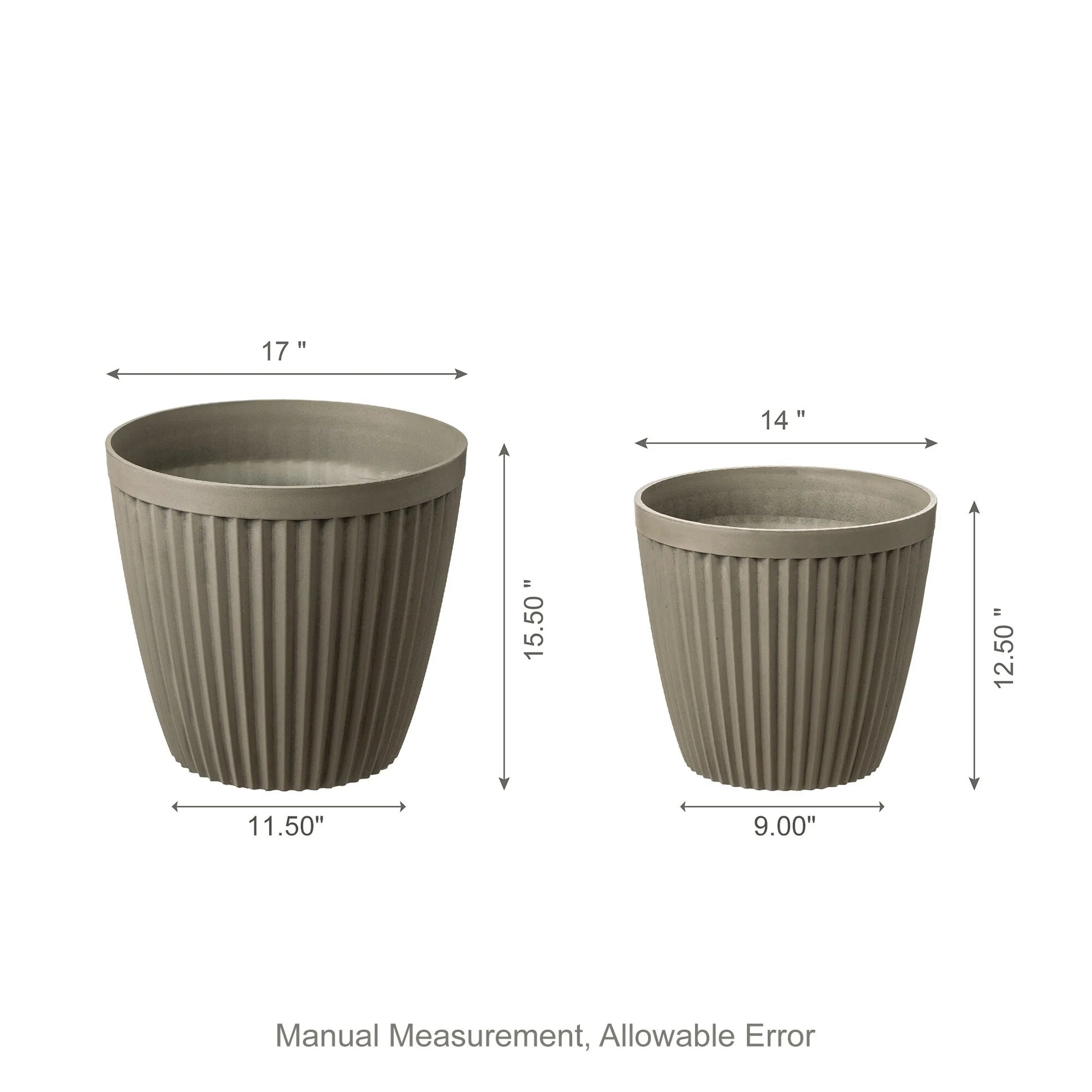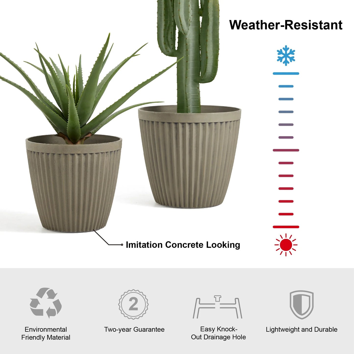 Glitzhome Set of 2 Eco-Friendly Oversized Faux Concrete Fluted Plant Pots Flower Planter Porch Decor