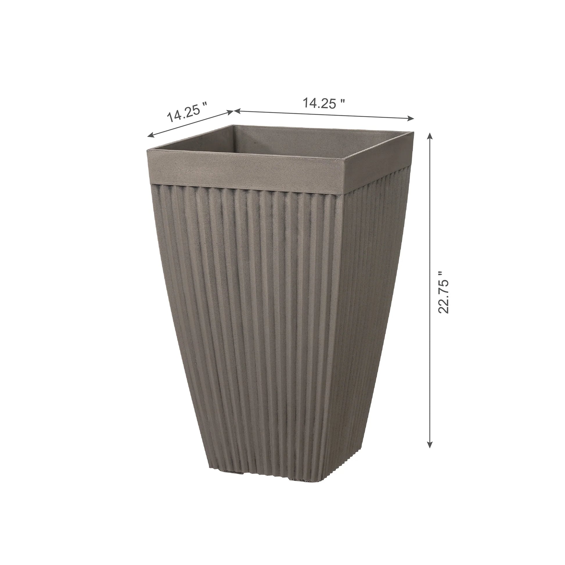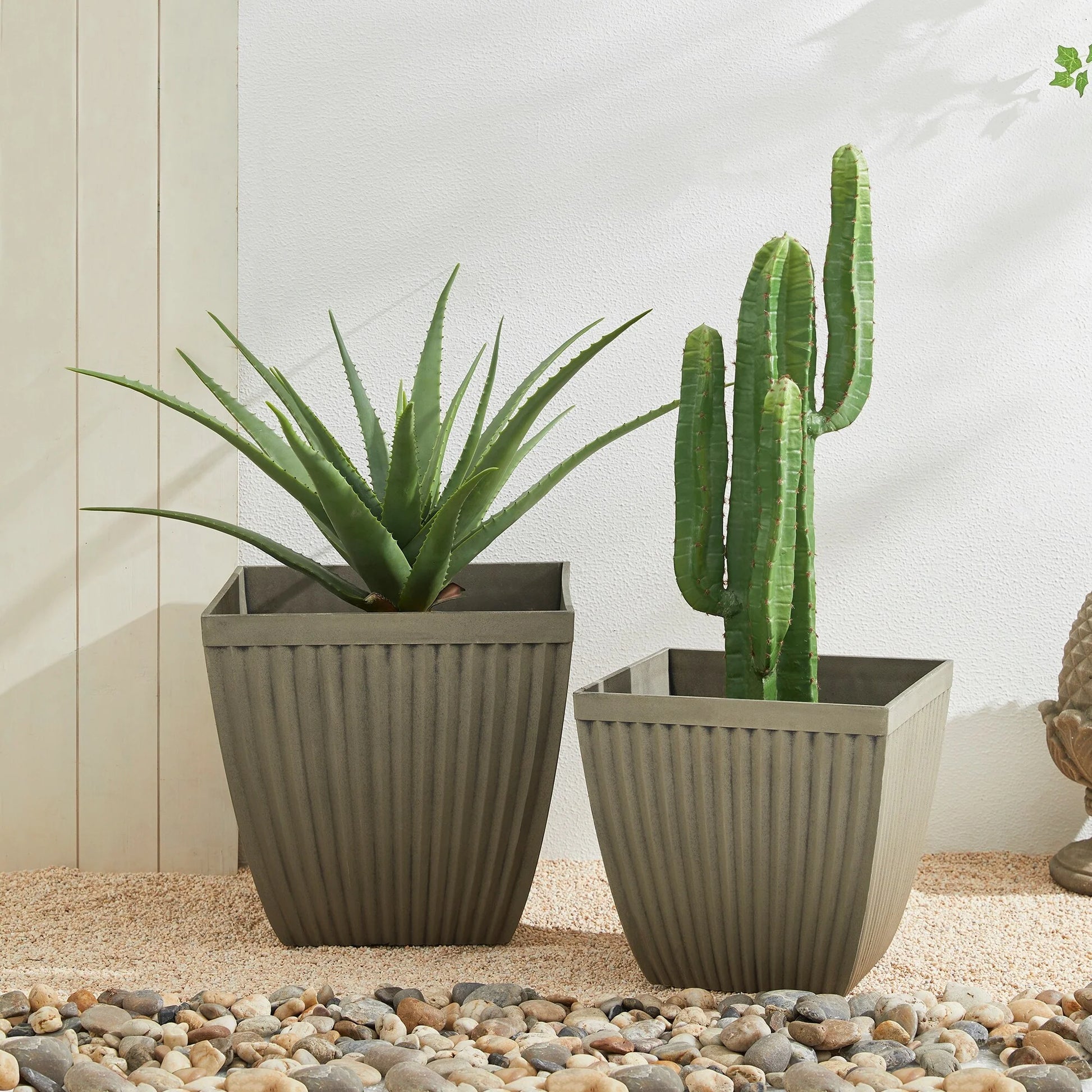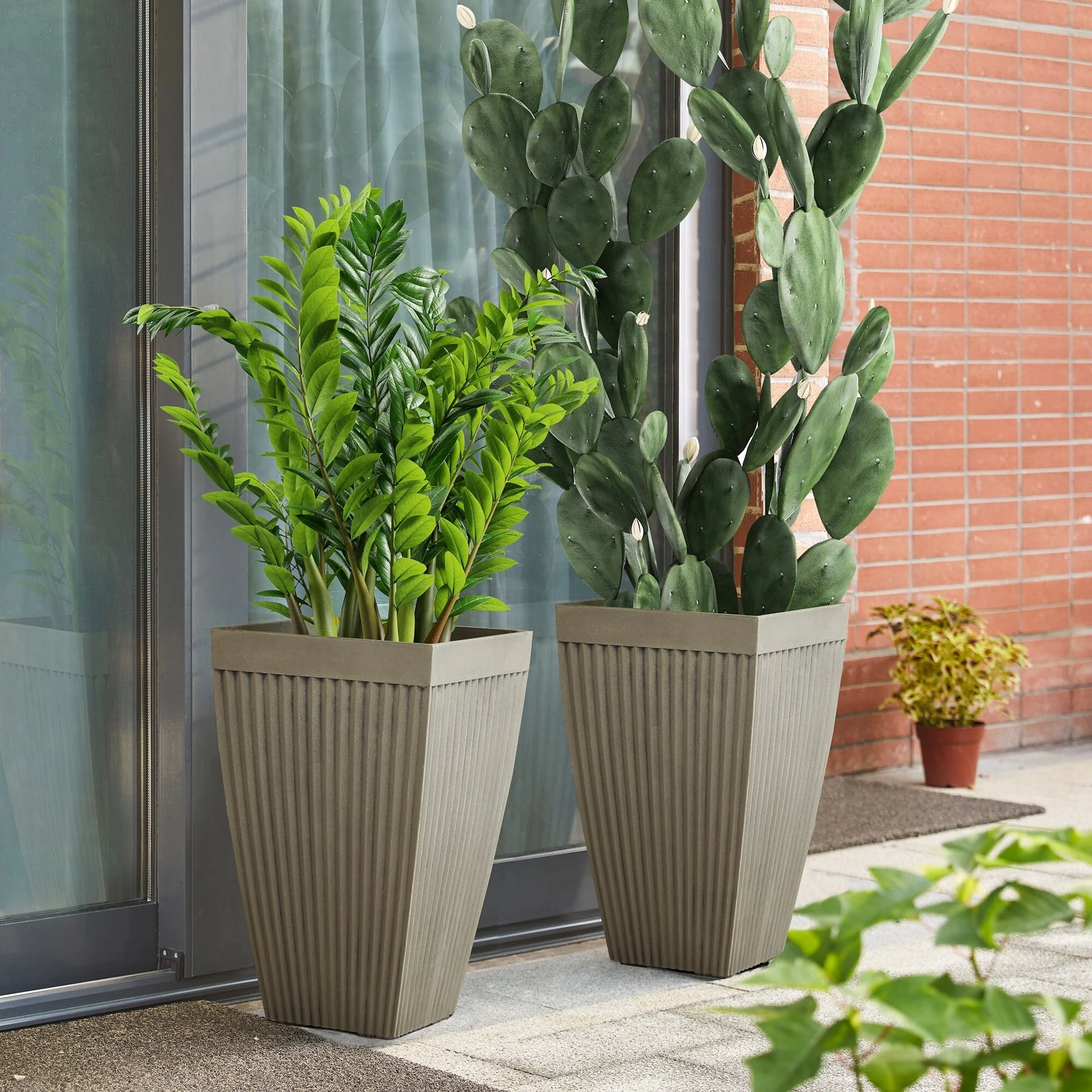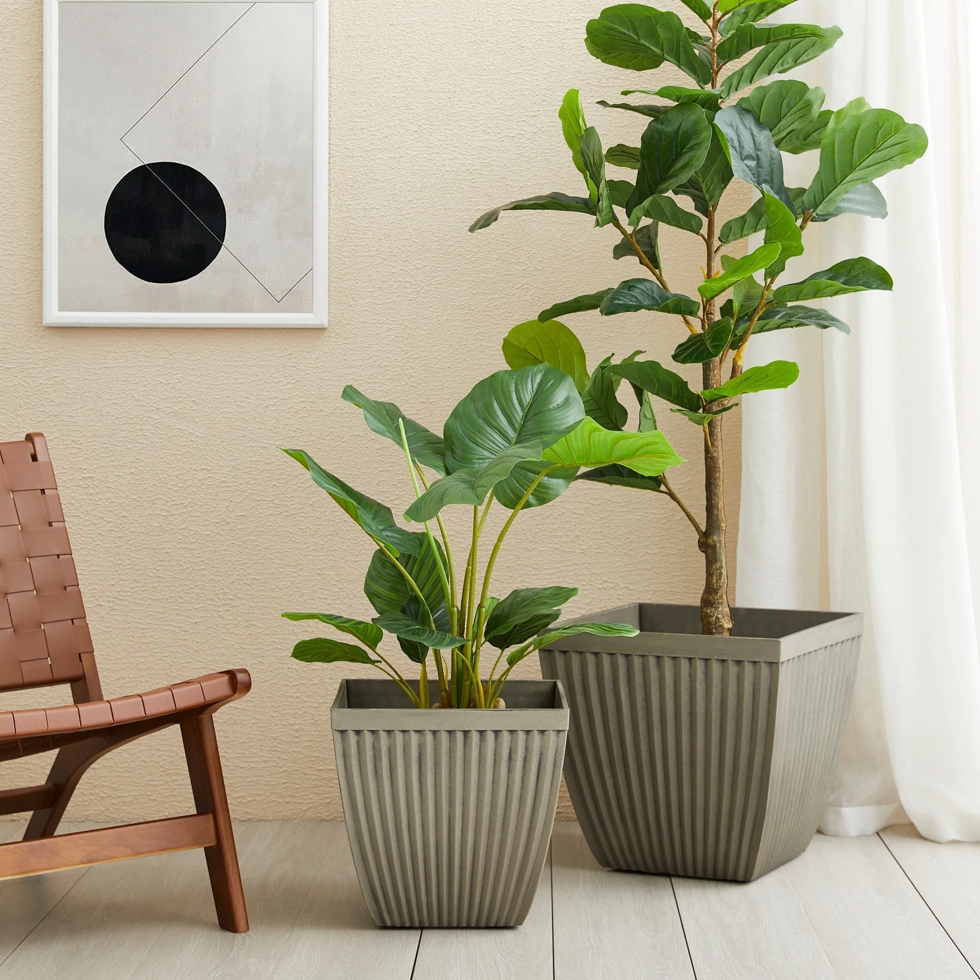 Glitzhome Set of 2 Eco-Friendly Oversized Faux Concrete Fluted Plant Pots Flower Planter Porch Decor