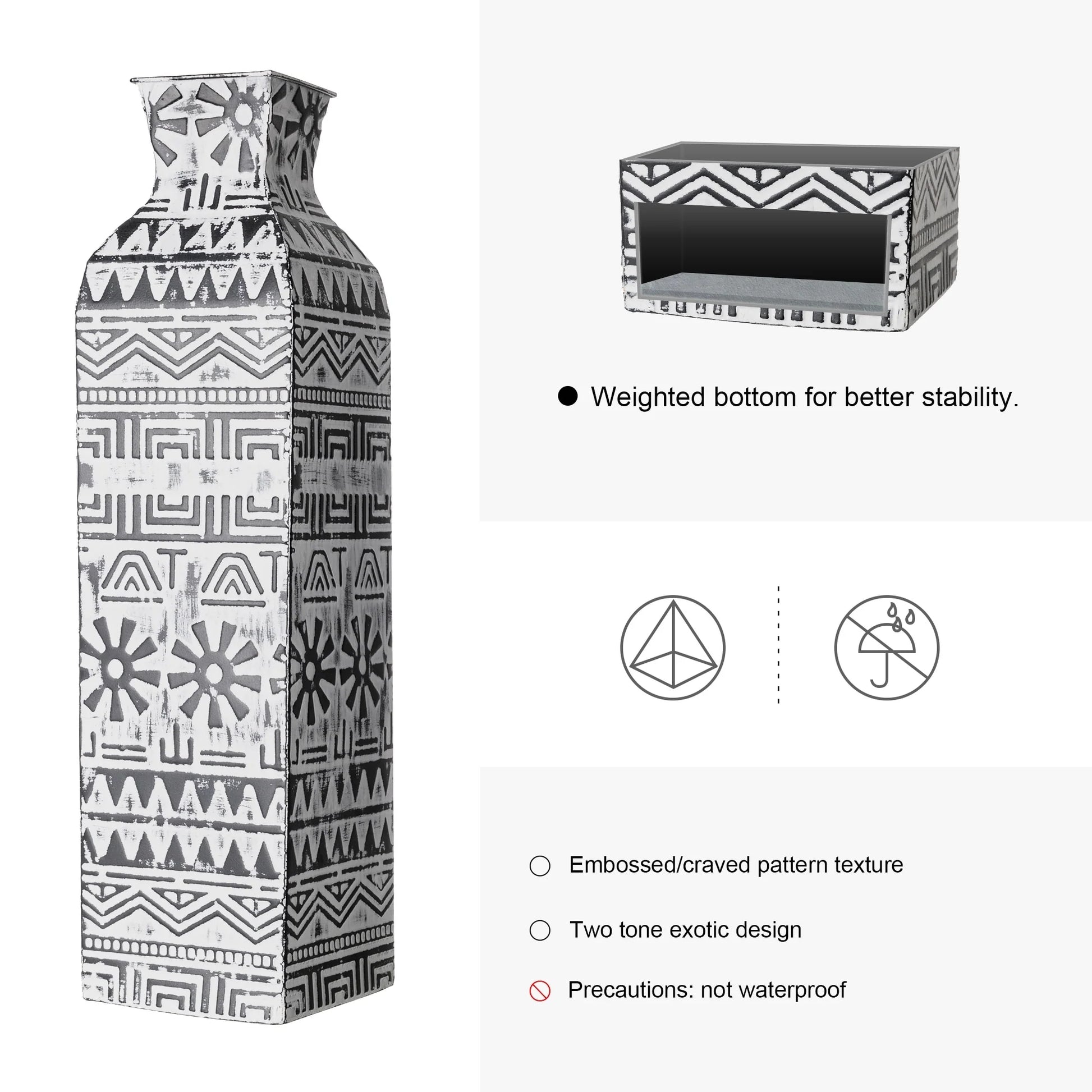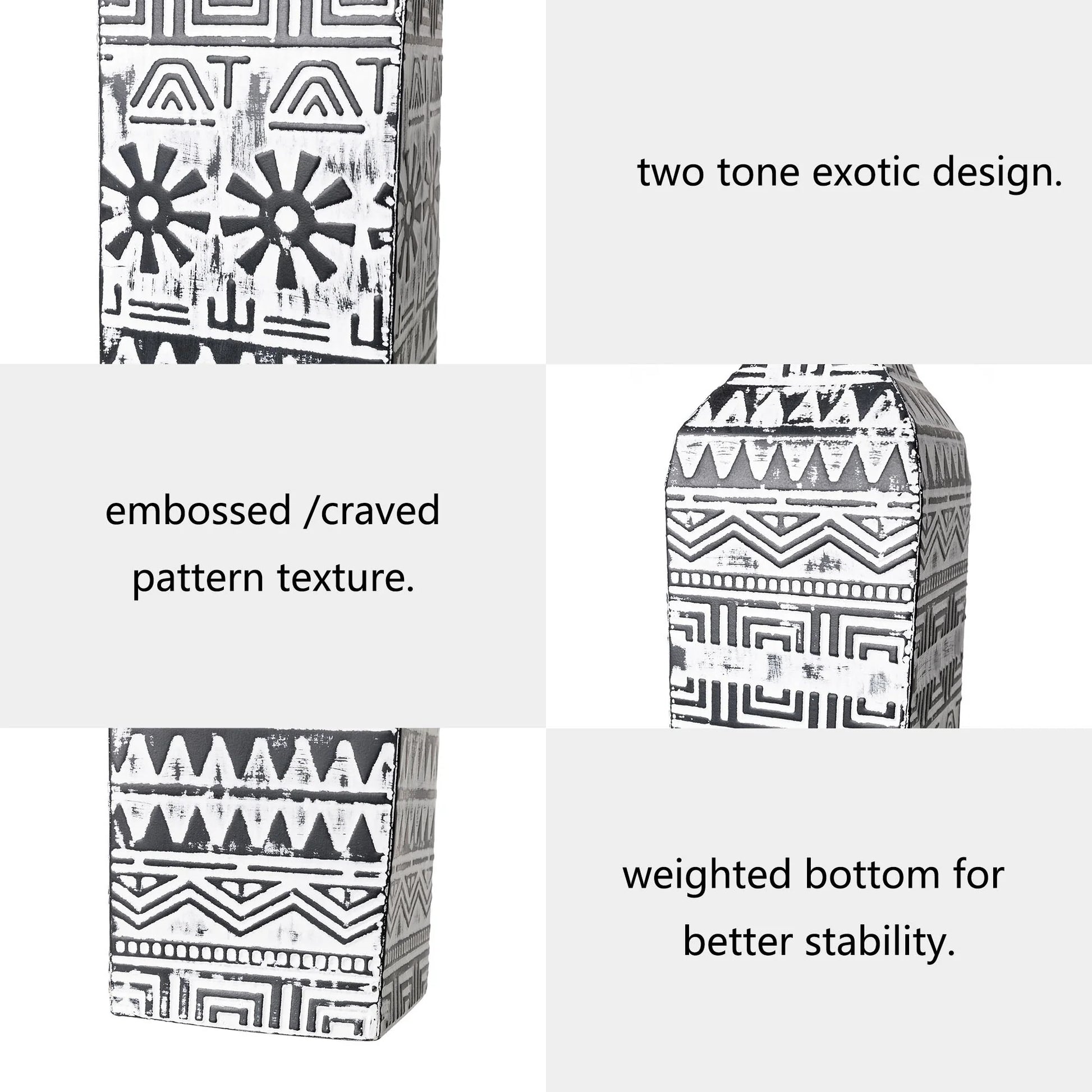 This set of global/boho chic metal vases with wash white exotic design draws its attention from the embossed/craved pattern textures of mixed flowers/mountains/letters/dots/line drawings etc., with its special distressed finish enhanced by this concept of tribal style design, it will be a special decor vase set at anywhere on table or floor as you like. Well crafted of premium raw materials with minimal pollution wastage during each step of production to protect our planet, the metal wall has been thickened, more durable, and less deformable than most iron vases at the present market. It is an eye-catching and amazing accent piece of art in your bedroom, living room, kitchen, bathroom, entryway, or anywhere you want for decoration and function. In addition, it's also a good choice for wedding party decoration or a heartwarming gift for your family or friends.