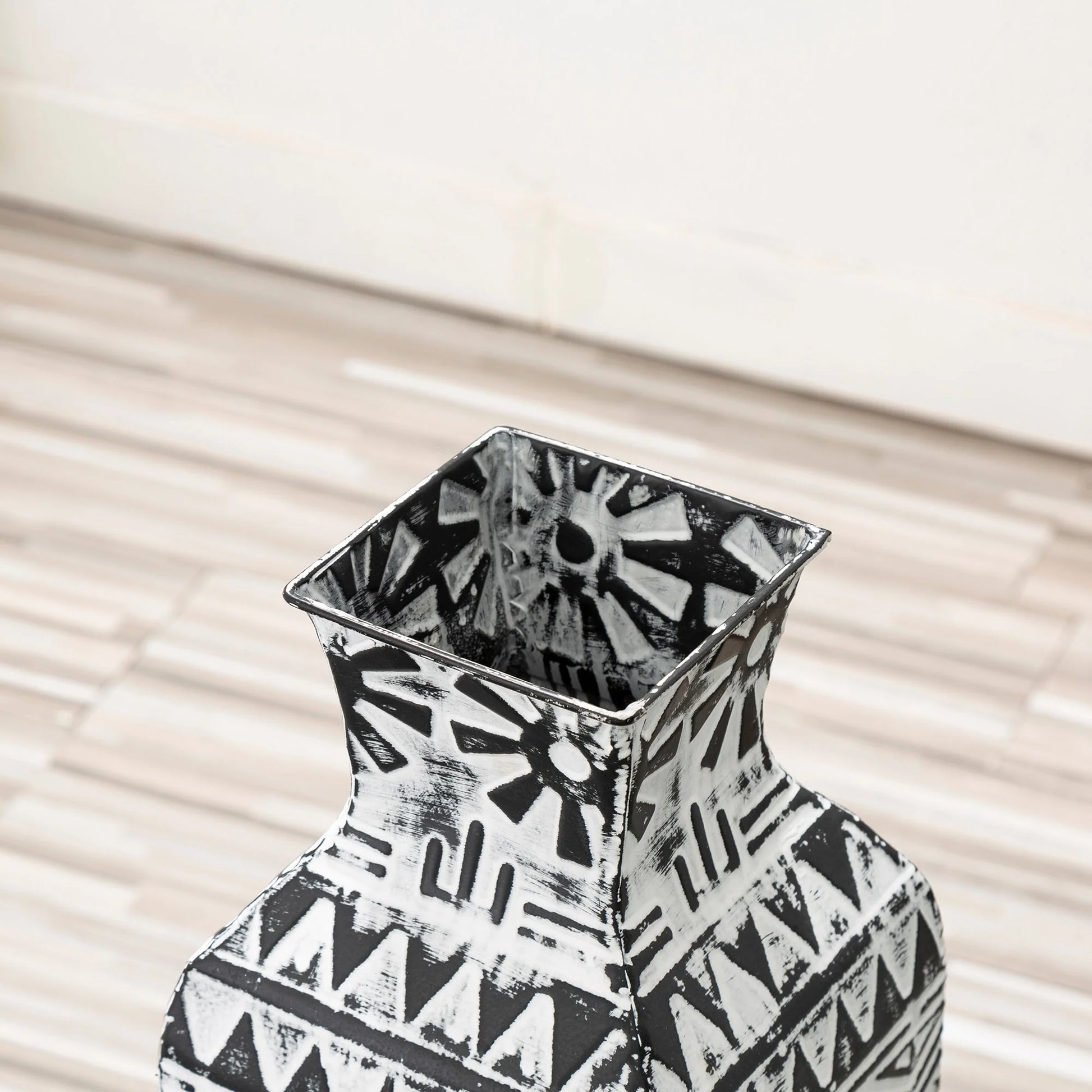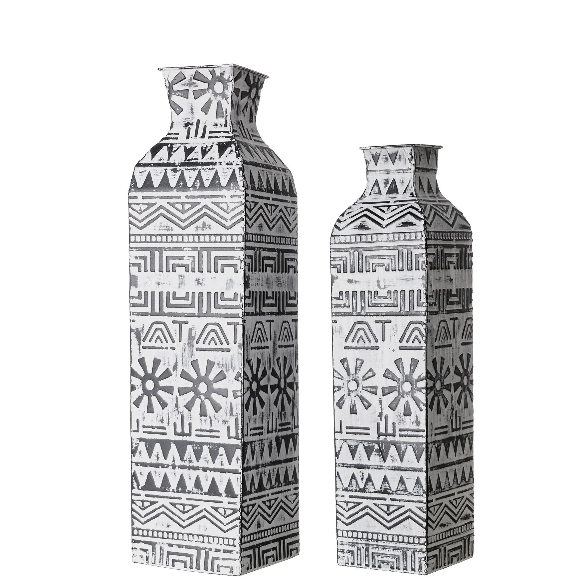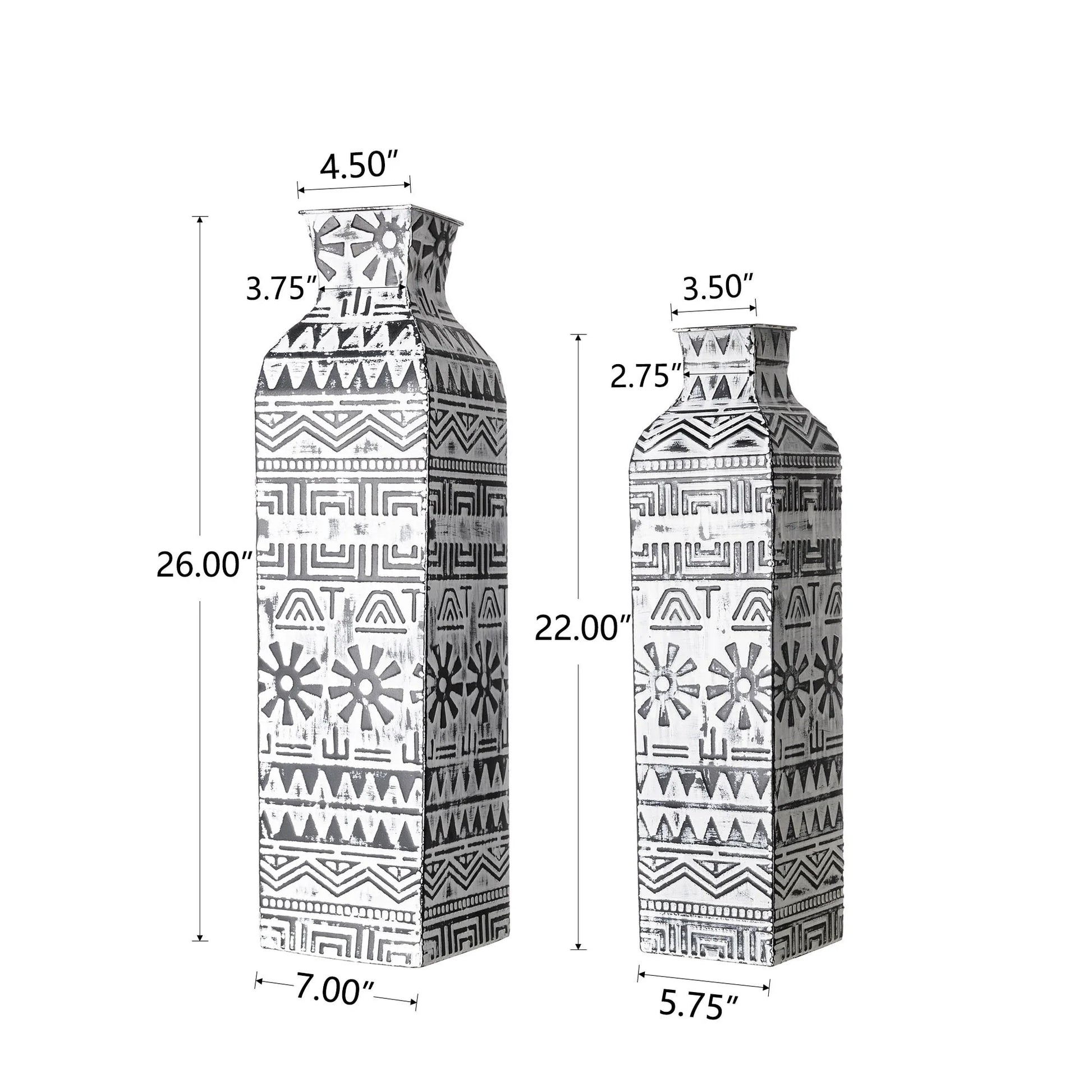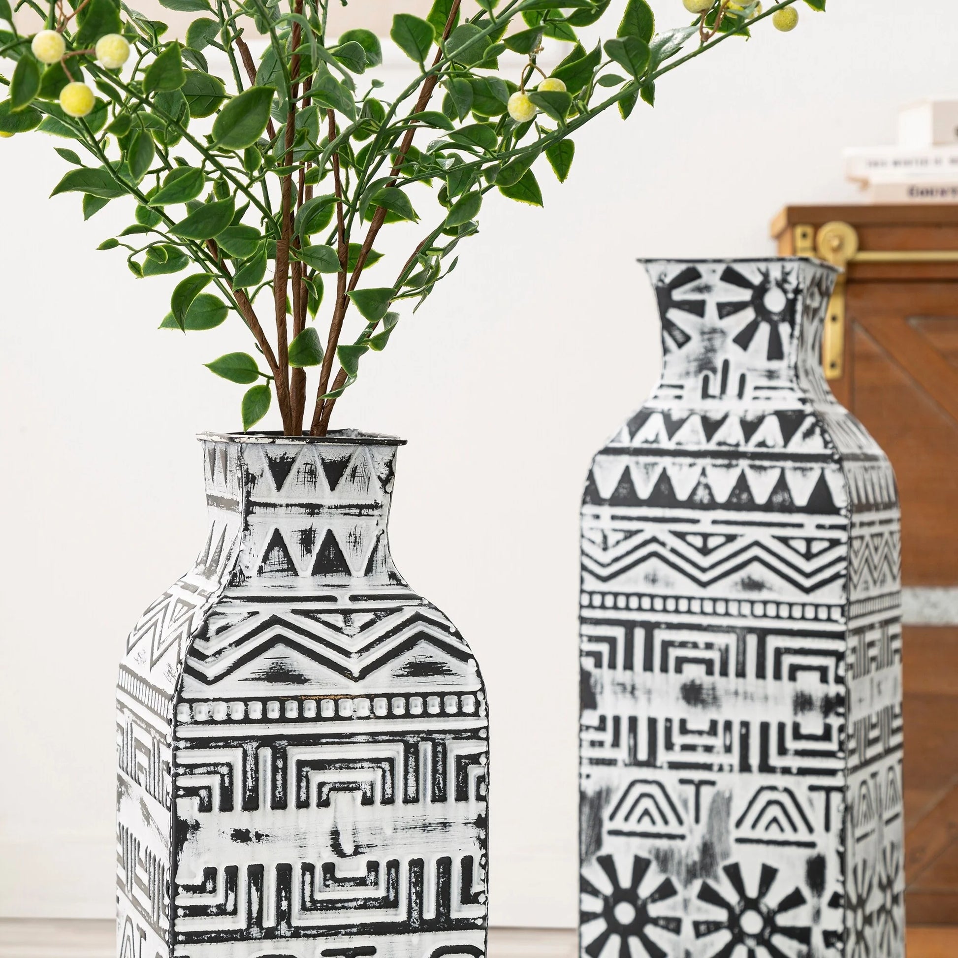 Glitzhome Set of 2 Global/Boho Exotic Textured Metal Table Floor Vases