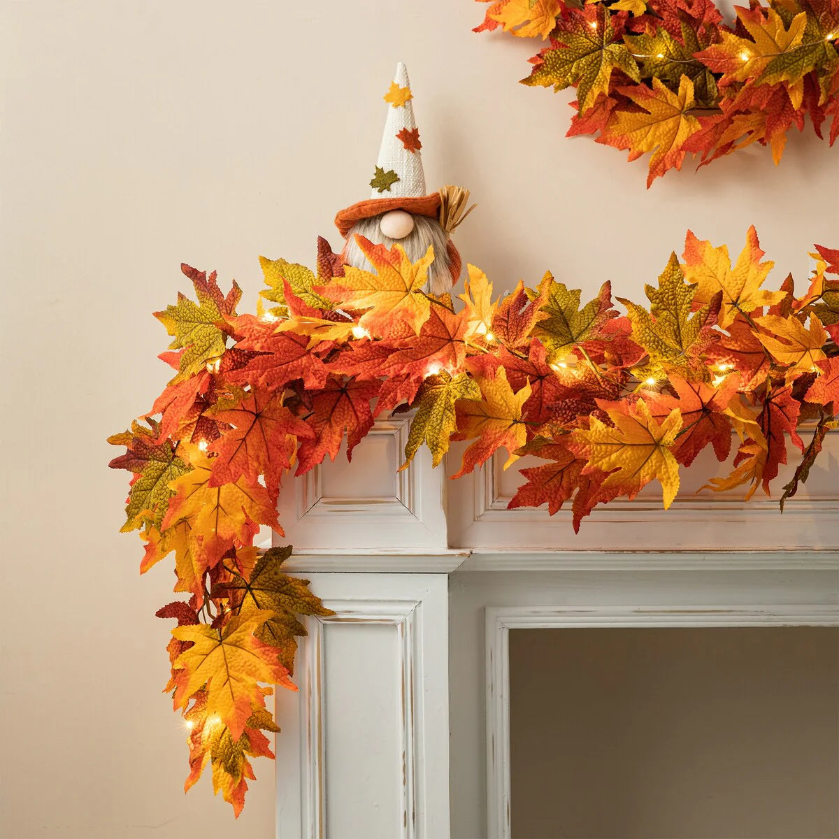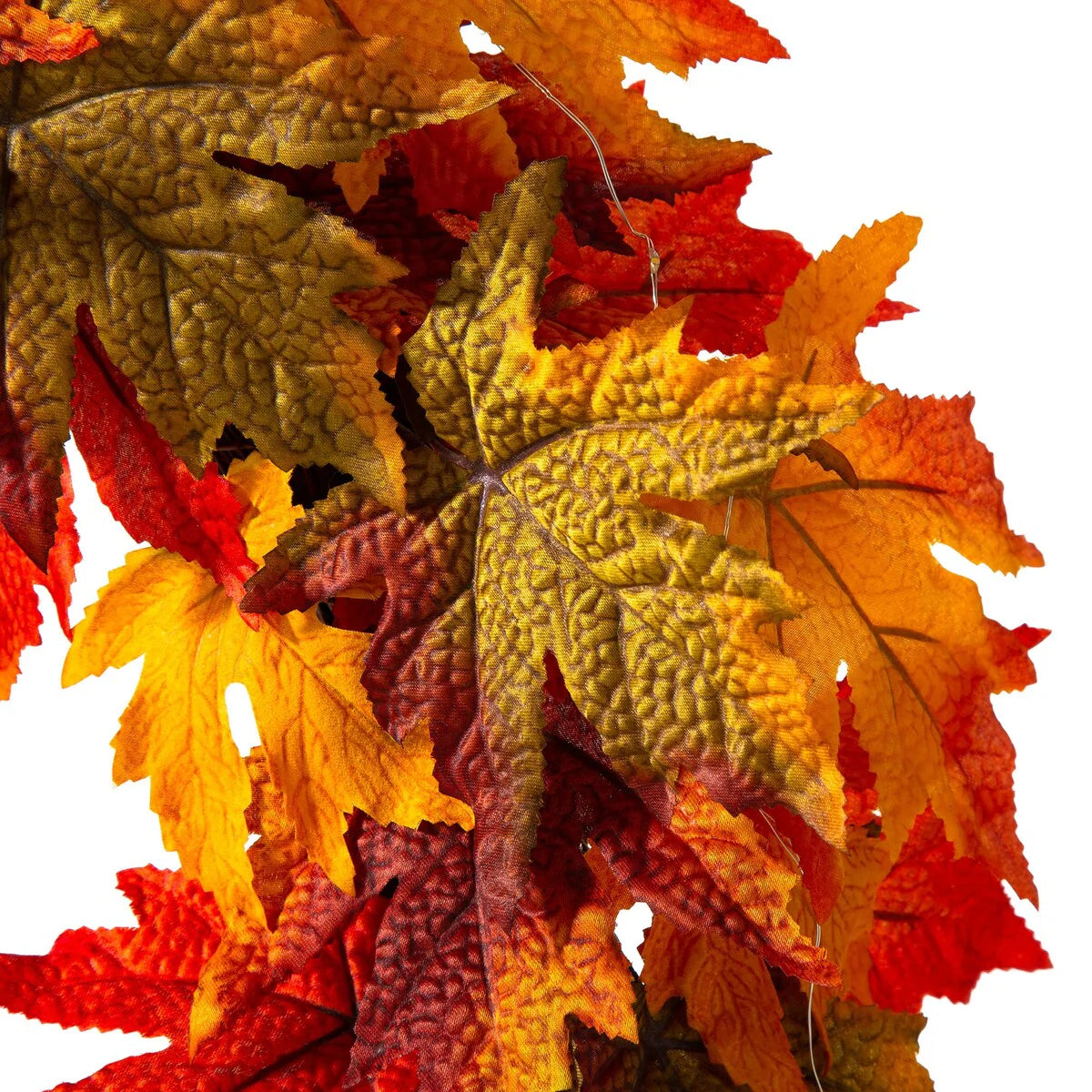 Glitzhome Thanksgiving LED Lighted Fall Maple Leaves Wreath & Garland