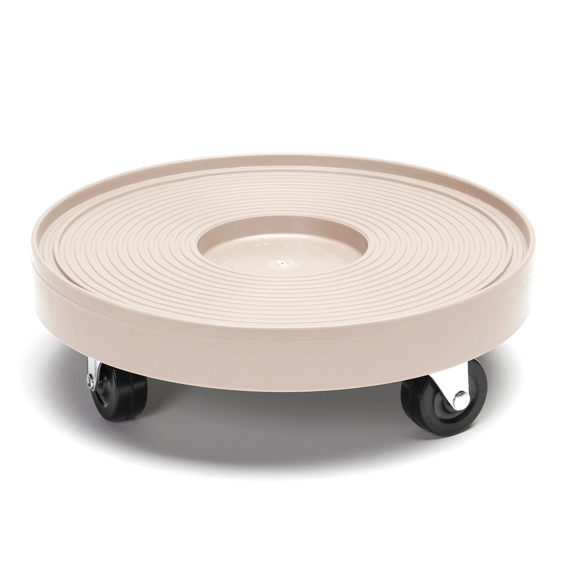 Move hefty plants effortlessly with this 12-inch Plant Dolly. Constructed from a sturdy, weatherproof plastic, the base holds plants securely in place and the low rim prevents slipping. This dolly features four rotating wheels for easy mobility, making it ideal for moving large plants around your patio, porch, or garden.