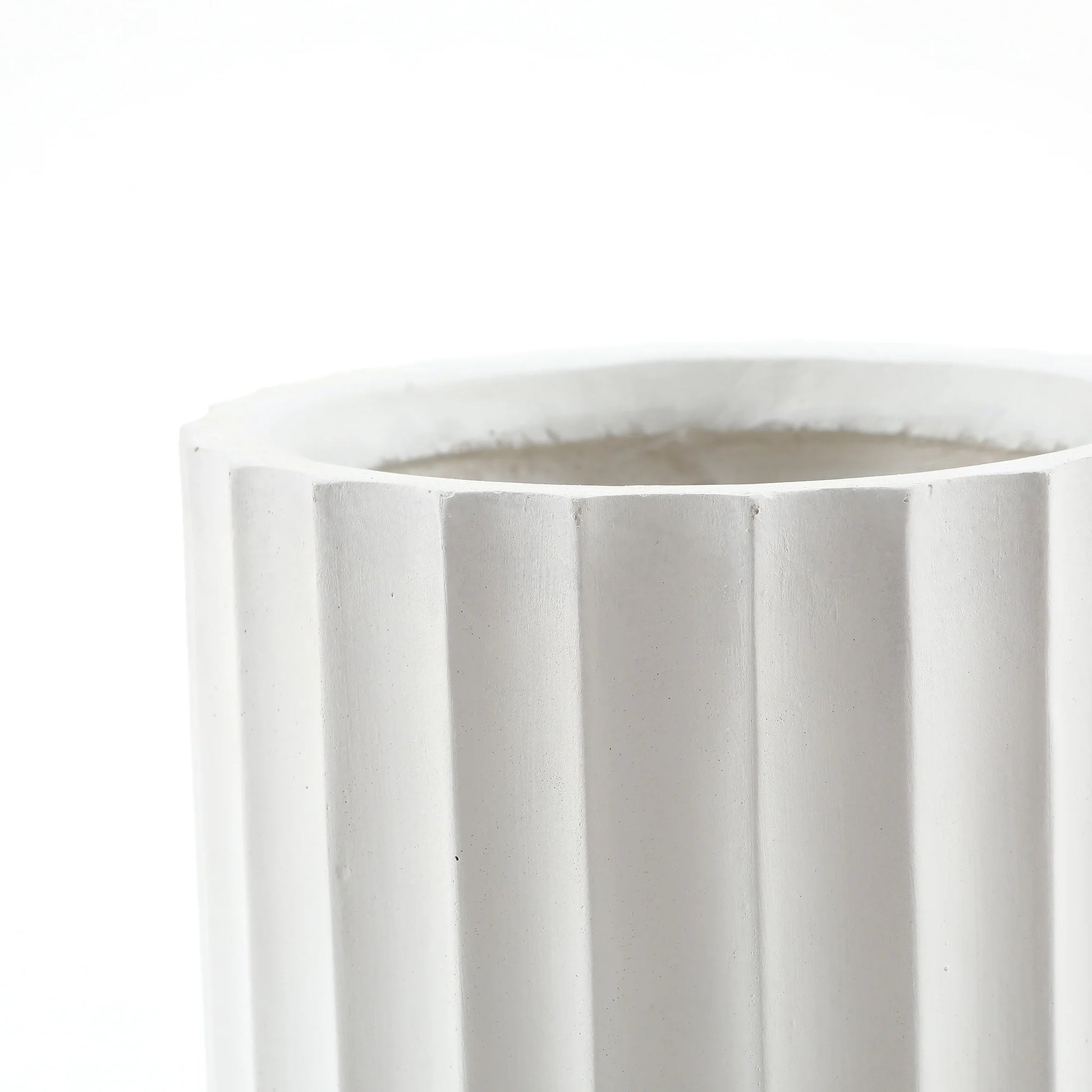 Handmade White Geometric Pattern Fiber Stone Round Tall Pot Planters
