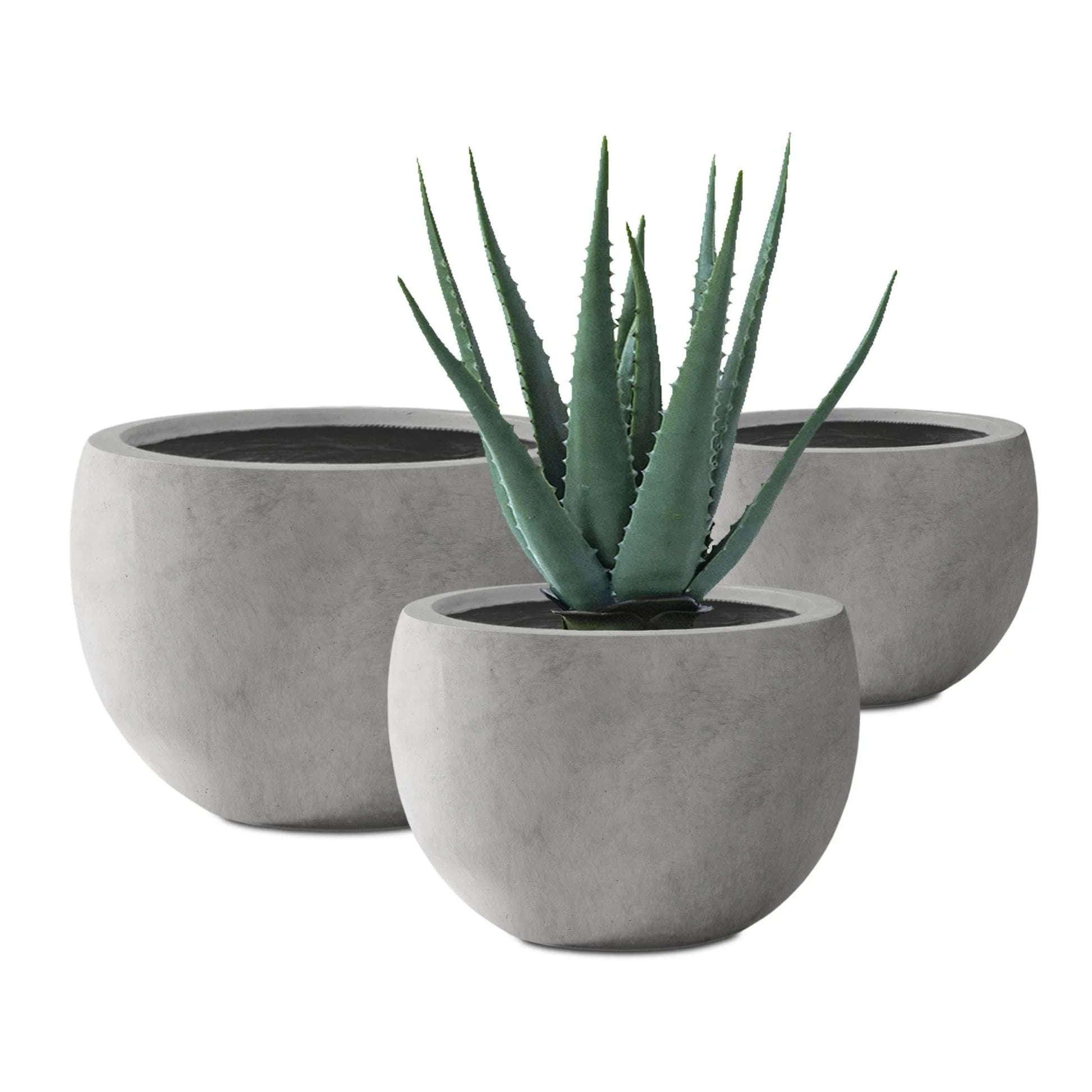 Kante 20", 16" & 12" W Lightweight Round Concrete Planters (Set of 3), Seamless w/ Drainage Hole for Indoor/Outdoor Use