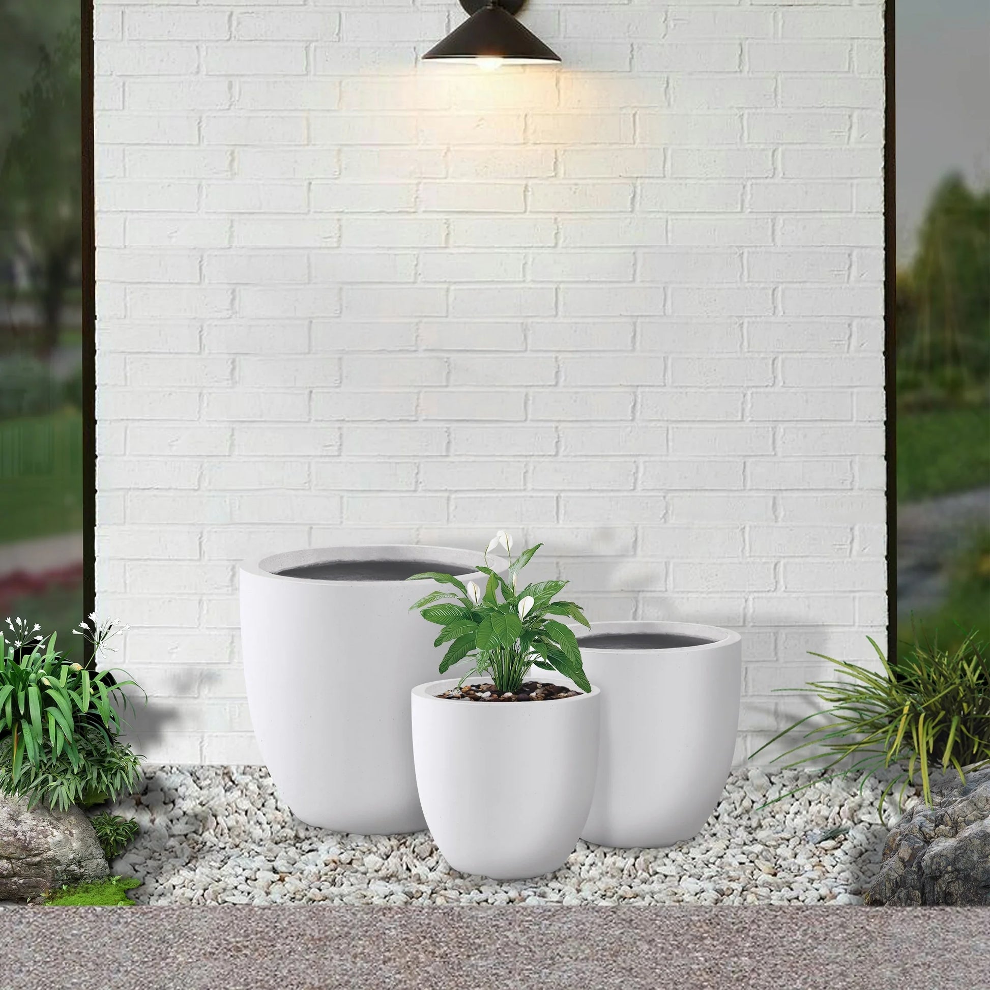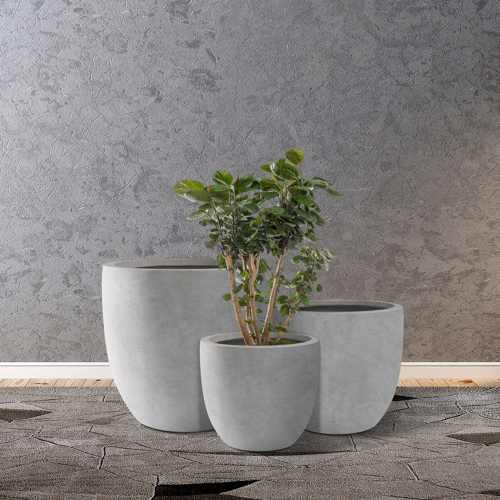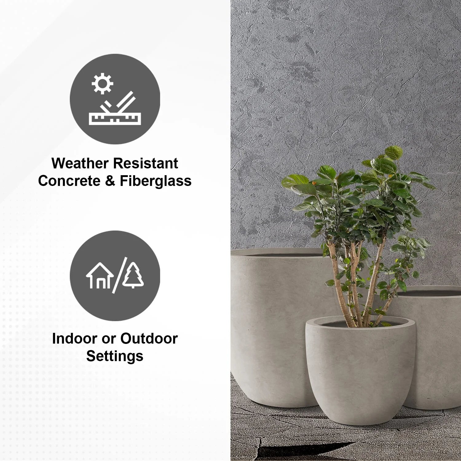 Kante 20", 16.5", 13.3"W Weathered Finish Round Concrete Planters (Set of 3), Outdoor/Indoor Decorative Pots w/ Drainage Hole