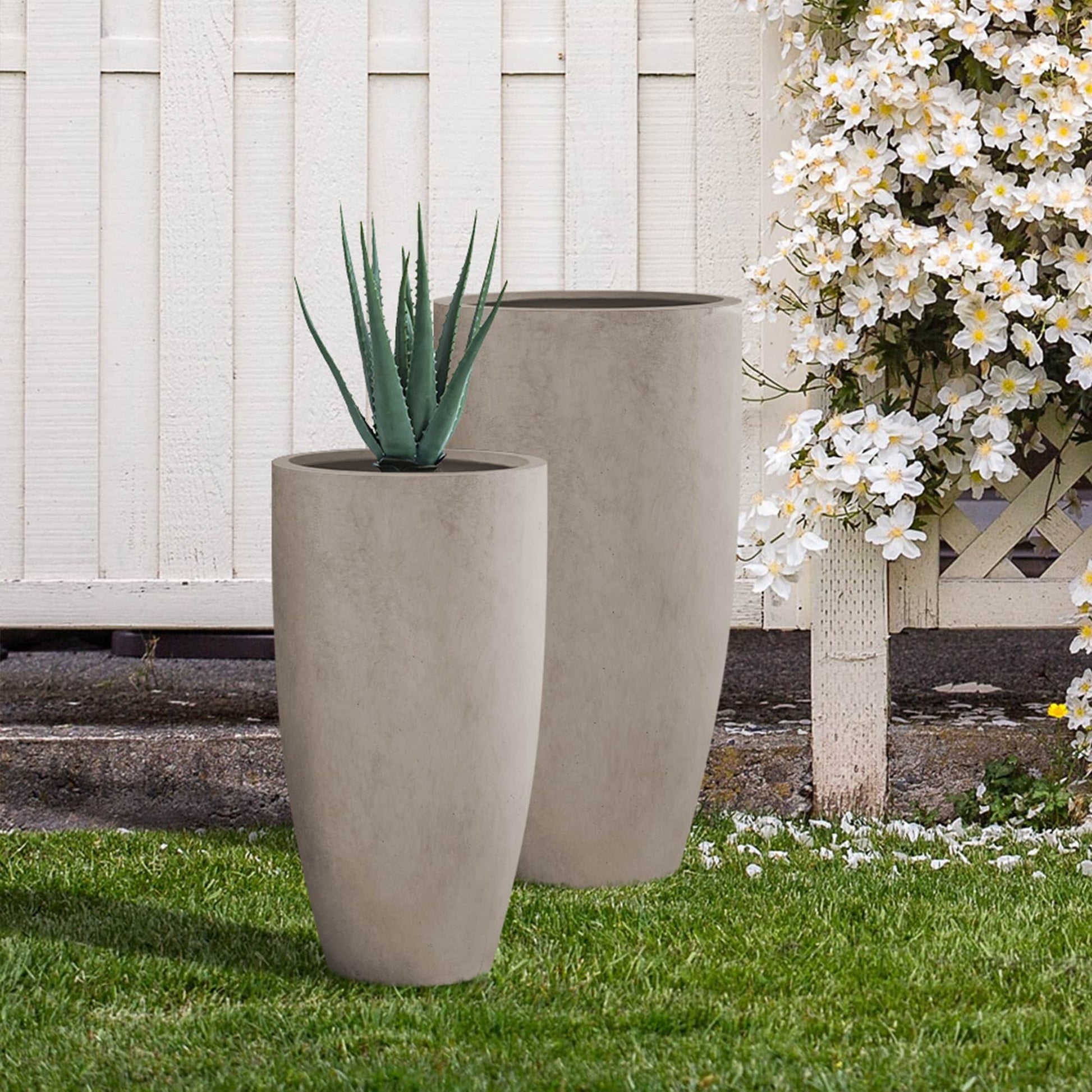 Kante 31.4" and 23.6"H Weathered Finish Concrete Tall Planters (Set of 2), Large Outdoor Indoor