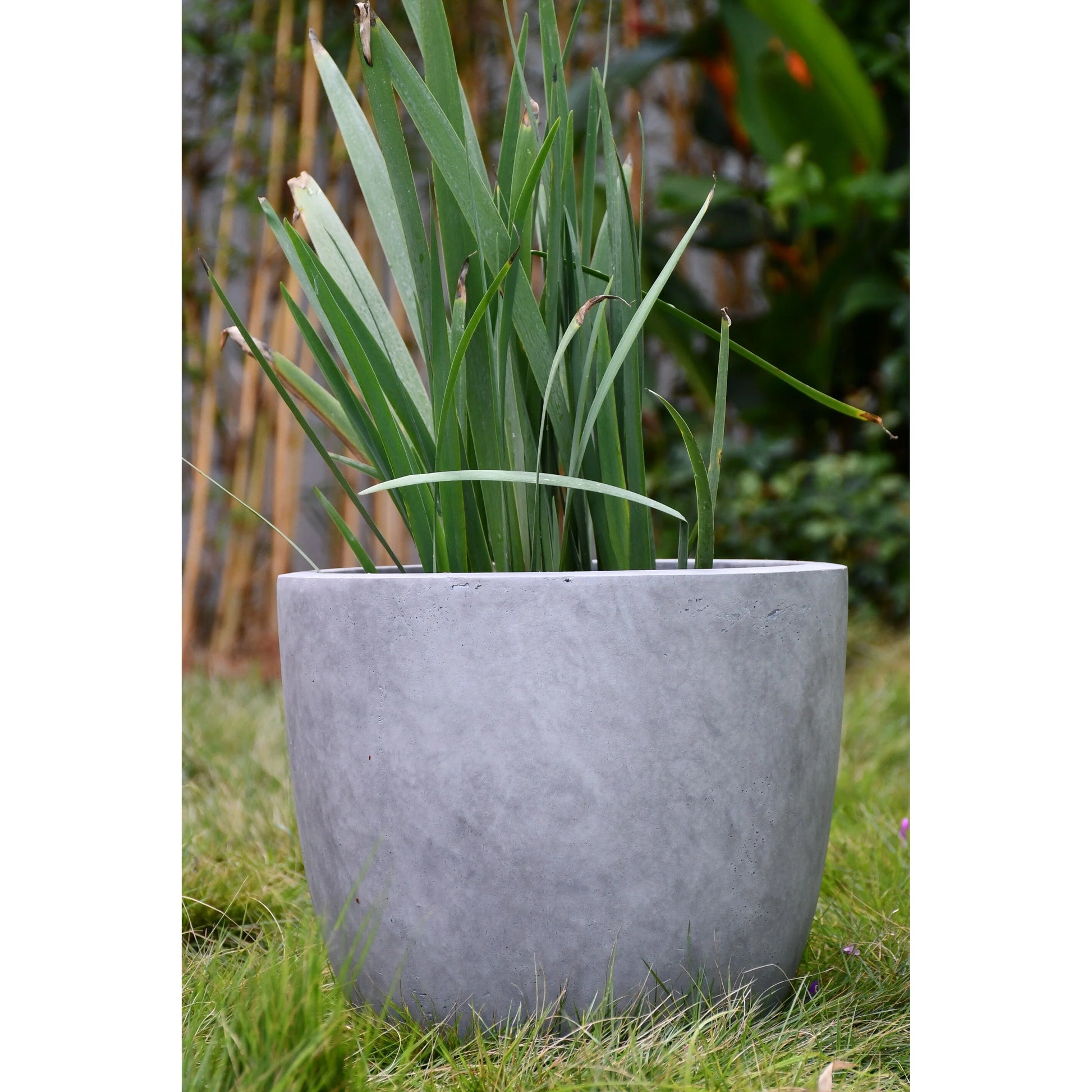 These elegant round planters have authentic concrete finish with visible pores make them beautiful contemporary pieces. The look and feel is true concrete but it weights substantially less than it looks. It also has a very smooth finish instead of rough concrete potters you might be used to. The size is very generous and can hold a good amount of plants without looking crowded. Would look great on an apartment balcony or large backyard patio. The smooth lines and round shape of these planters will help you maintain a modern design throughout your space. You can't go wrong with the grey finish as it blends well with any décor. They Can be used individually, as a set or in a row to promote unity. Made of Lightweight concrete through an ecofriendly manufacturing process. This composite material has no rubber, plastic, and steel. This material has all the advantages of concrete such as strength, durability, weather and damage resistance. Materials involve cement and weather-resistant fiberglass. This material has strong UV resistant ability and stay well in wind, rain, hot and cold season. By adding fiber clay material, planter is much easier to move around due to its lighter weight.