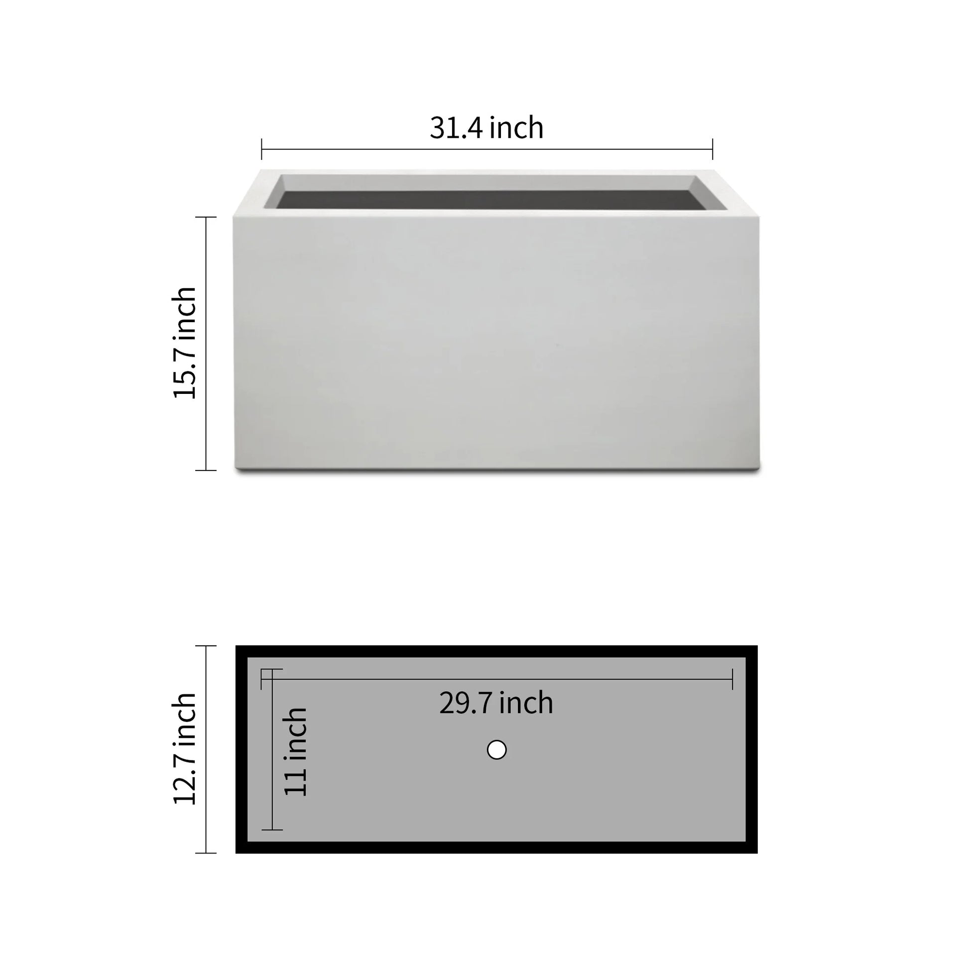 Kante Rectangular Pure White Concrete Metal Indoor Outdoor Planter Pot, w/ Drainage Hole for Patio, Home and Garden