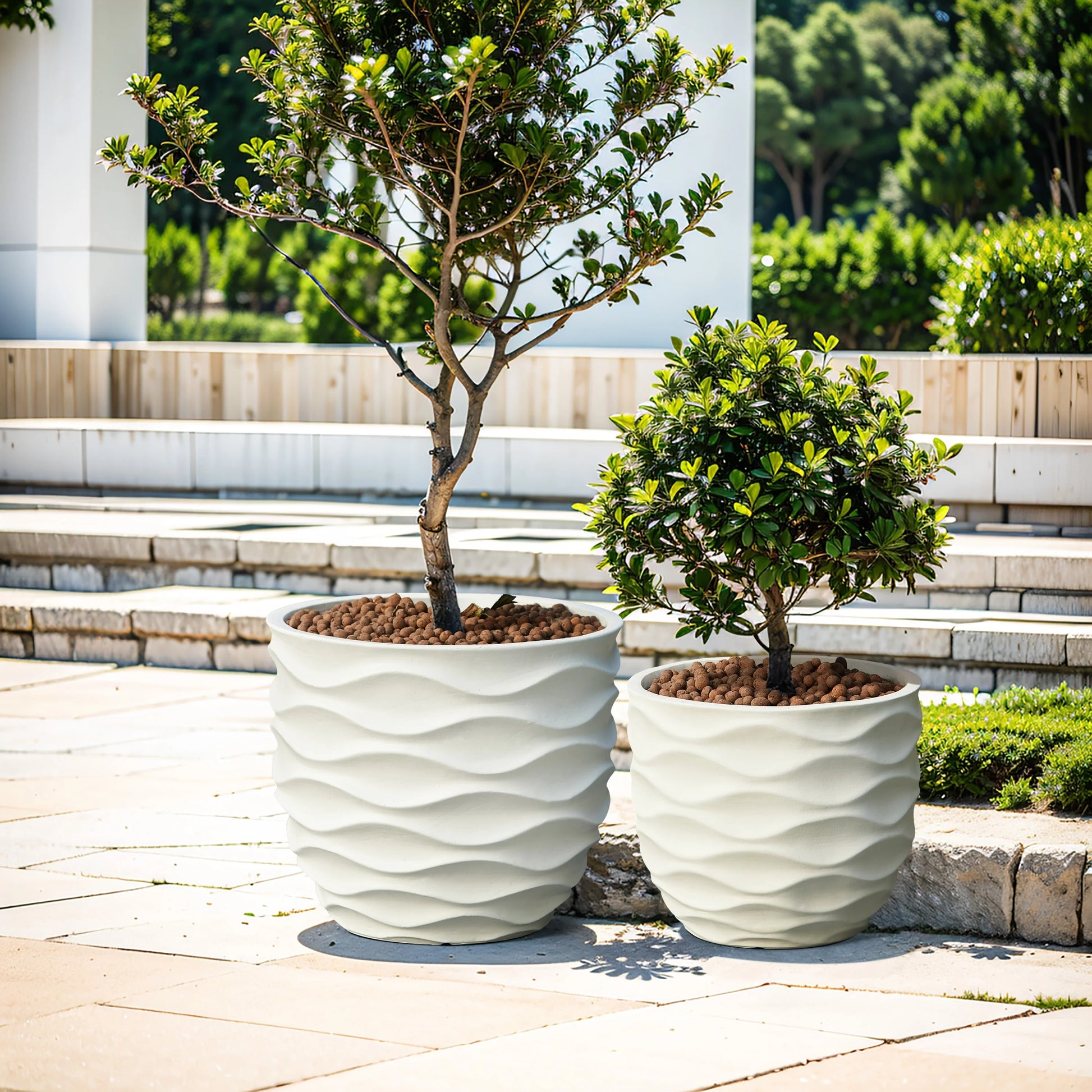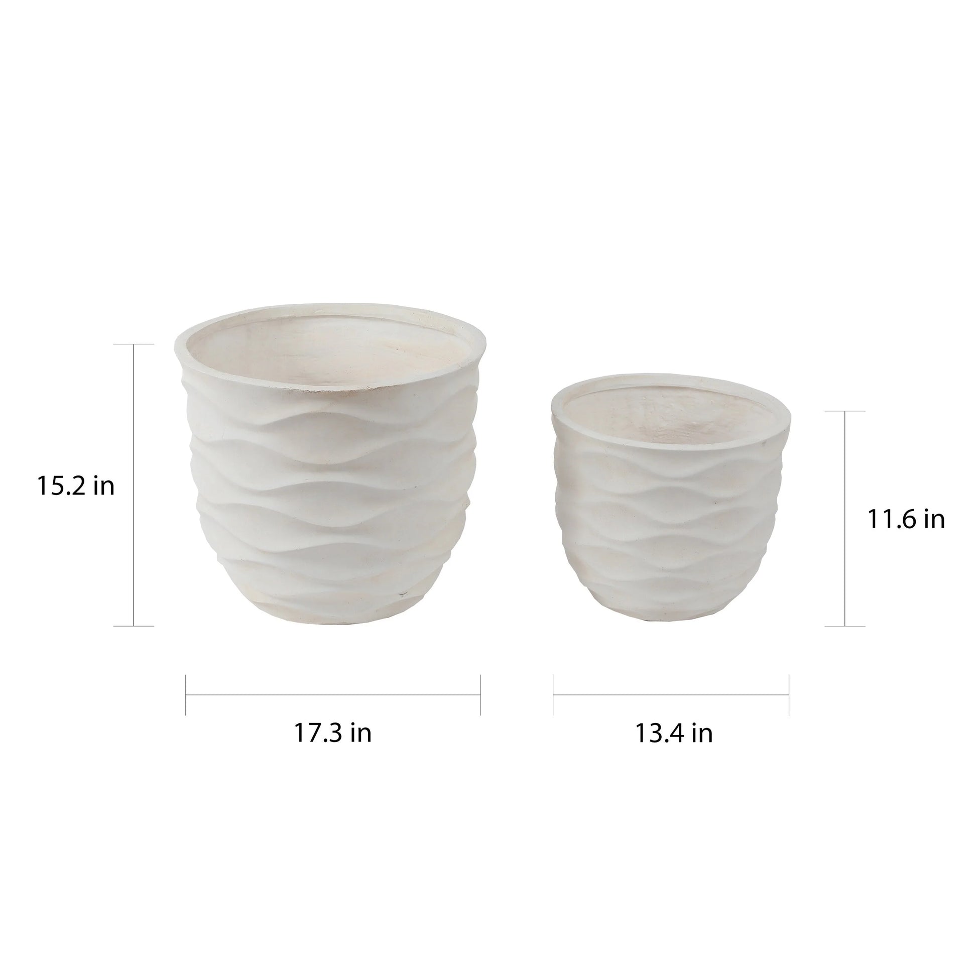 Kayu 2-piece Wavy Design White MgO Planters by Havenside Home