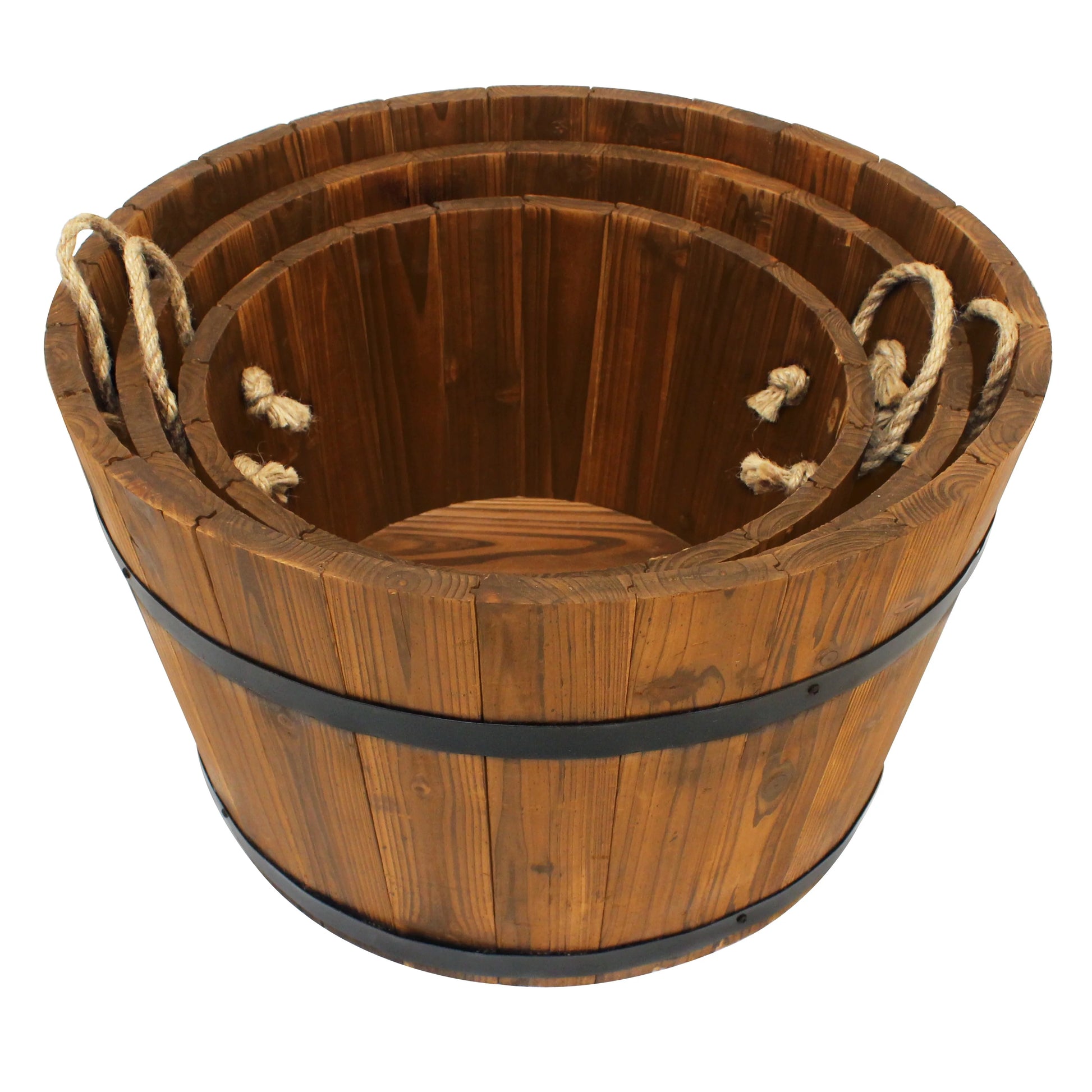 Leigh Country TX 93960 Half Barrel Bucket Wood 3Pc Planter Set