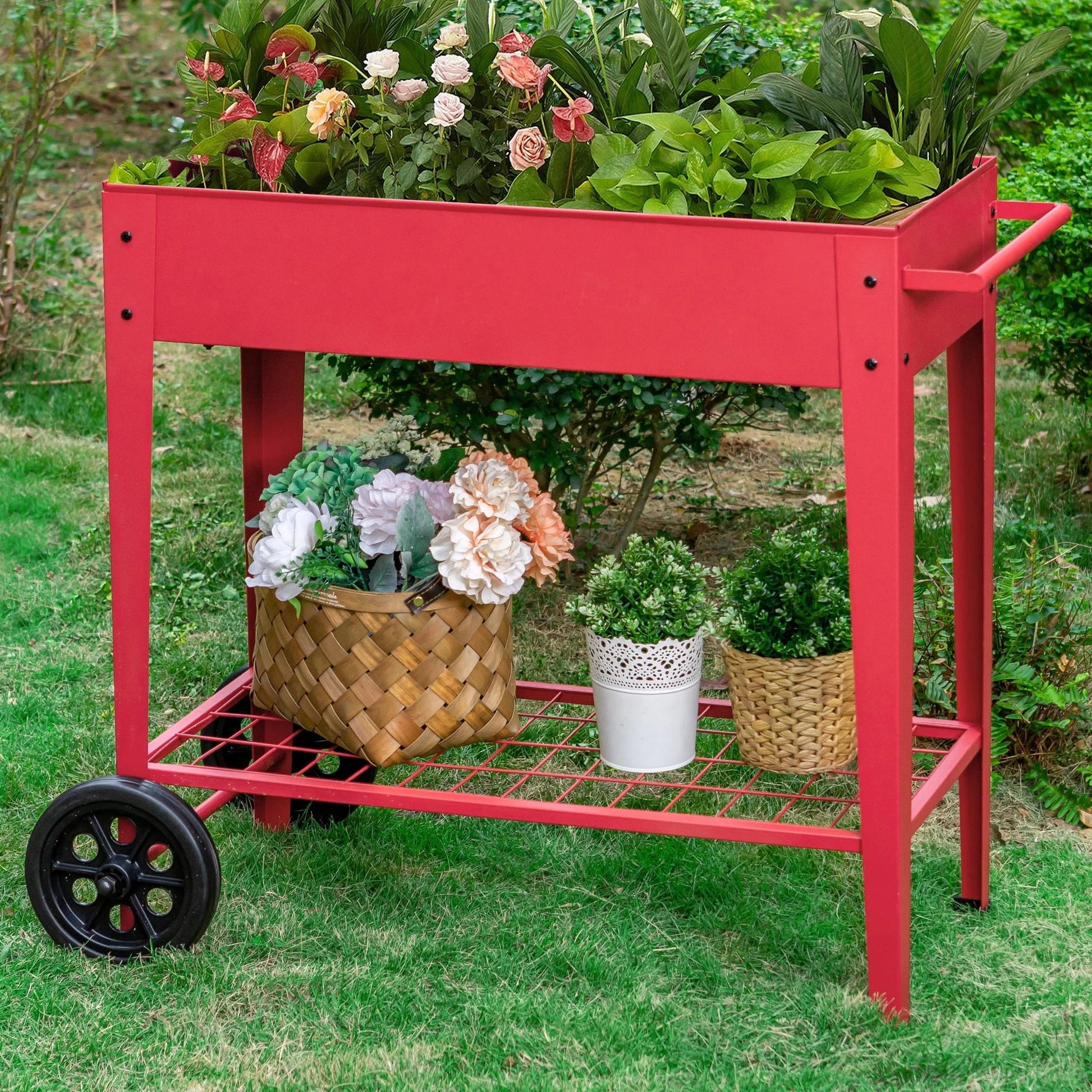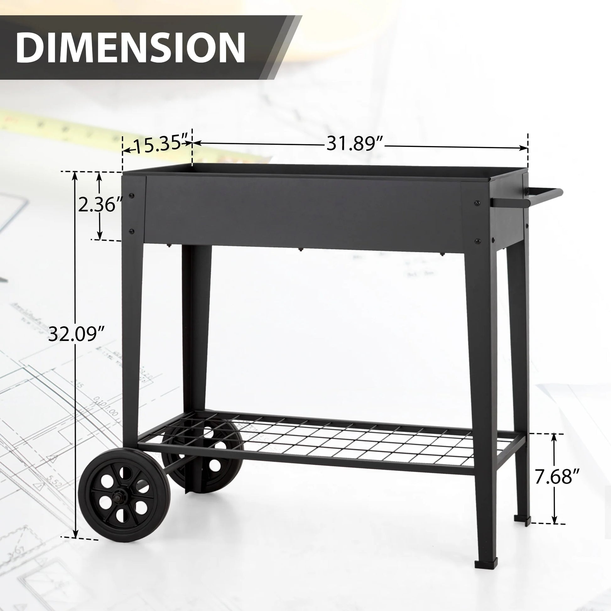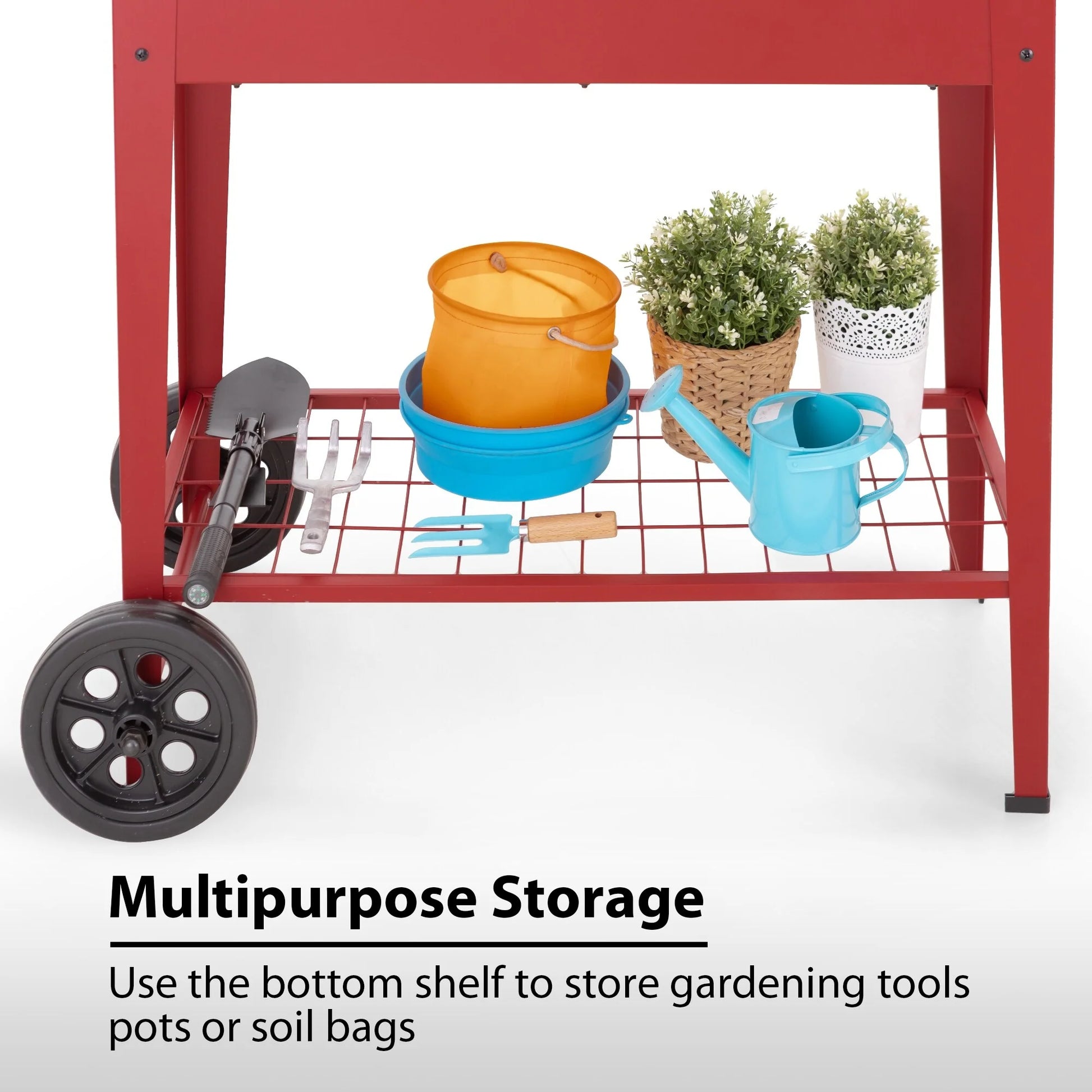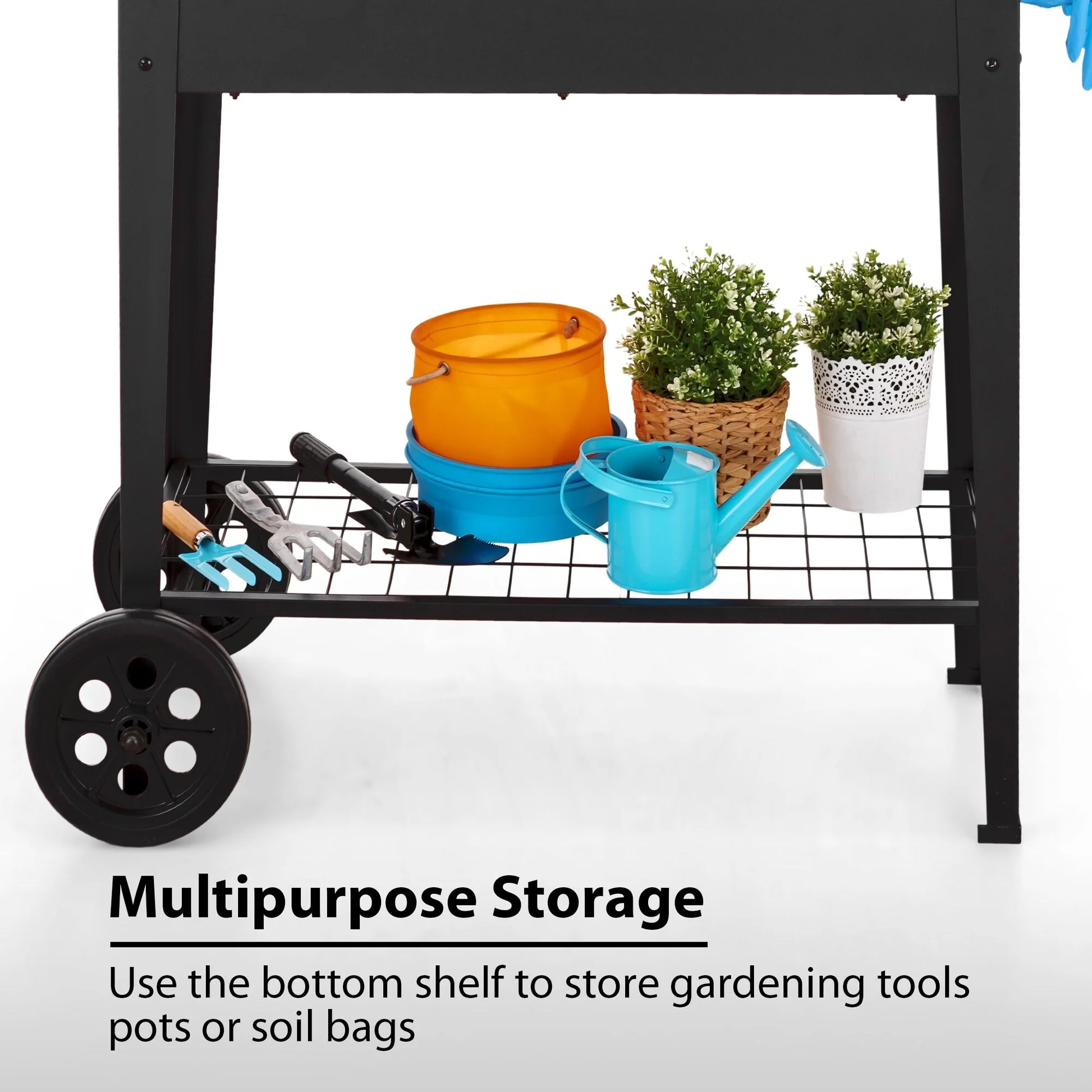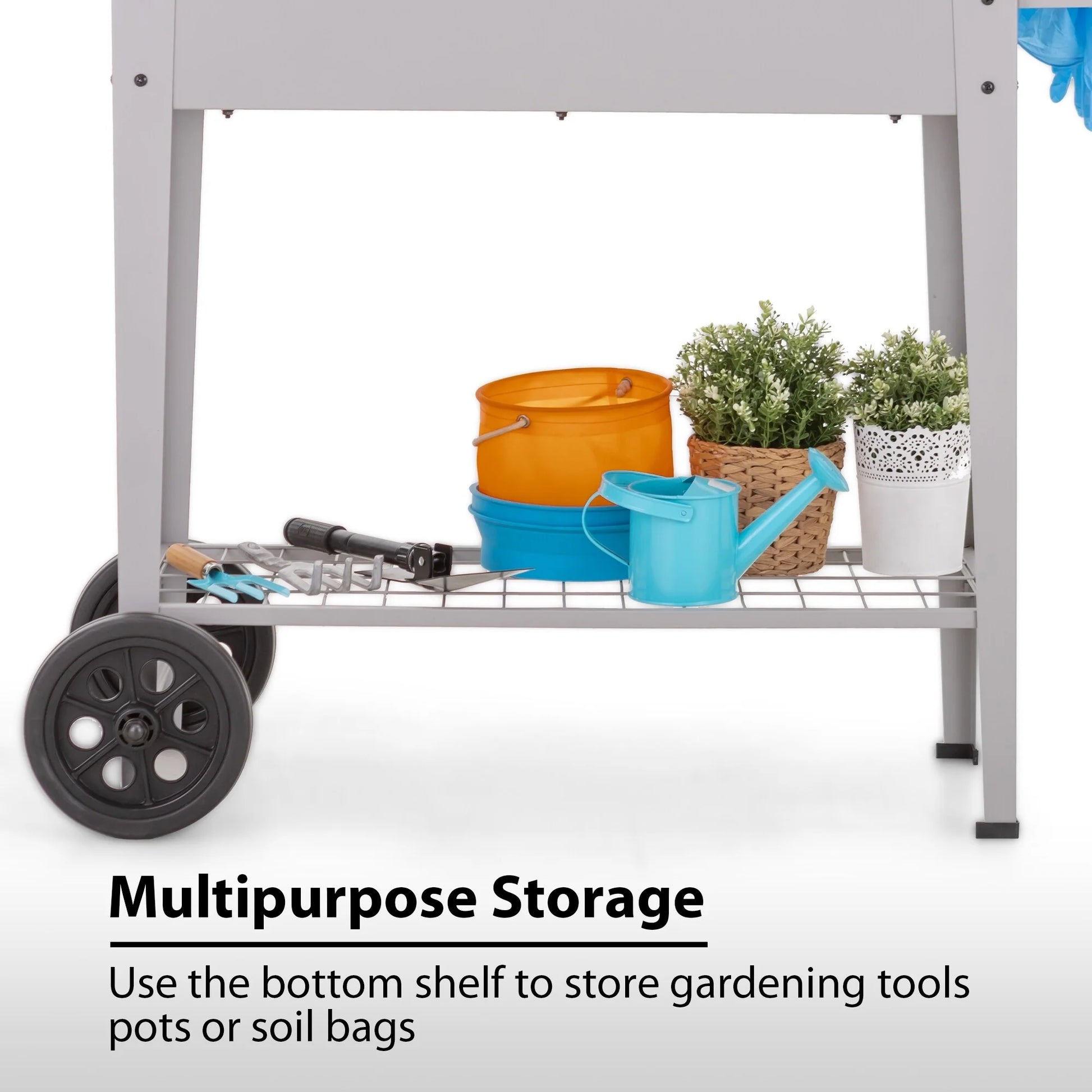- Multipurpose Storage: The raised planter box on wheels provides ample growing space to raise lettuces, broccoli, some herbs, and flowers with the shelf underneath holding your gloves, a little shovel, and a watering can nicely. Picking fresh veggies is so easy since it is at waist height.