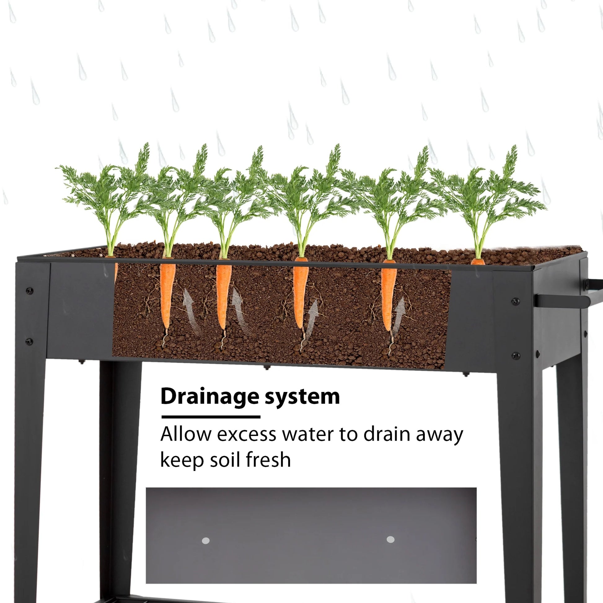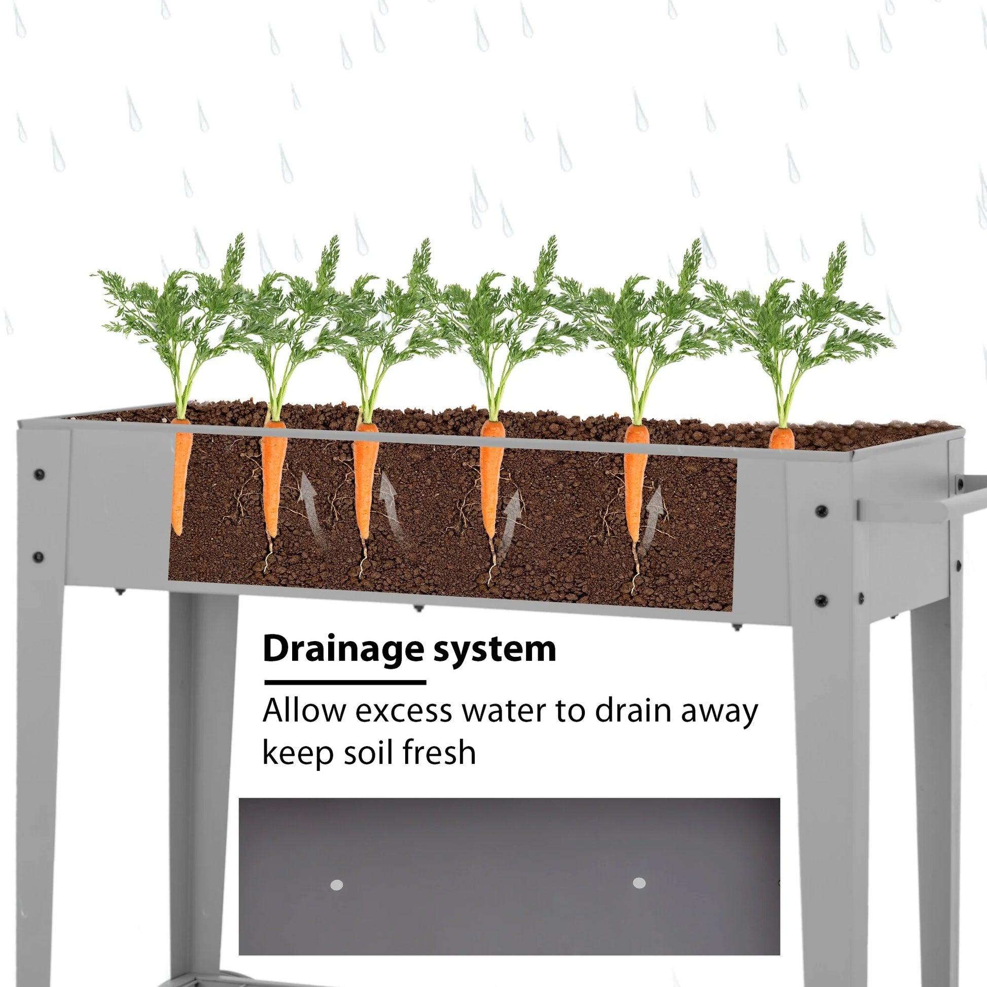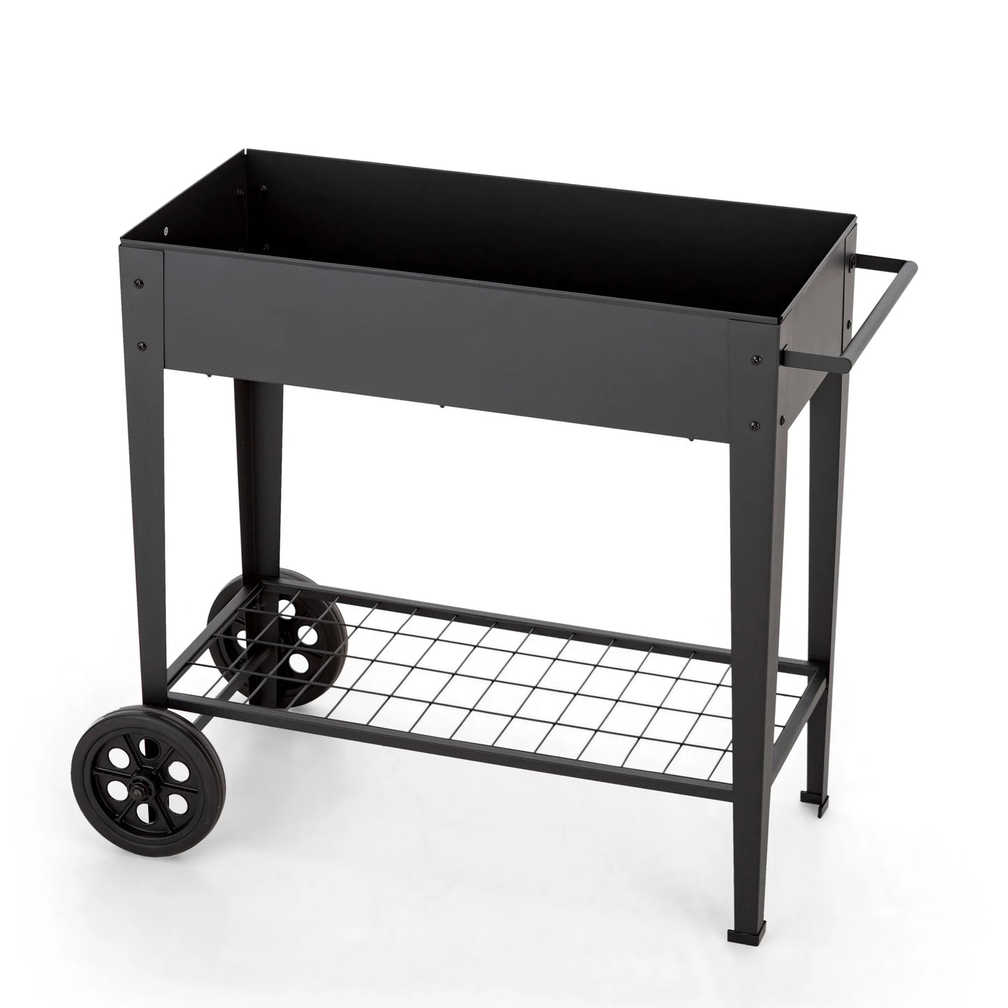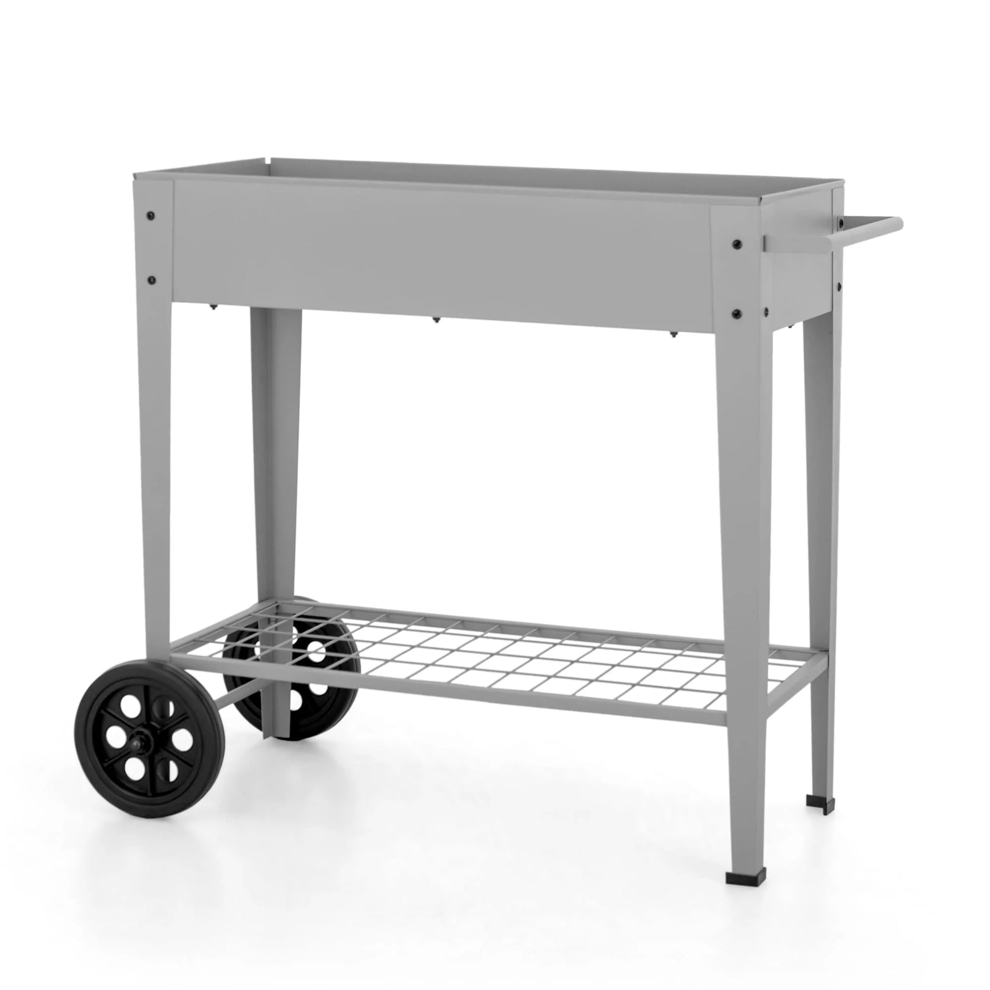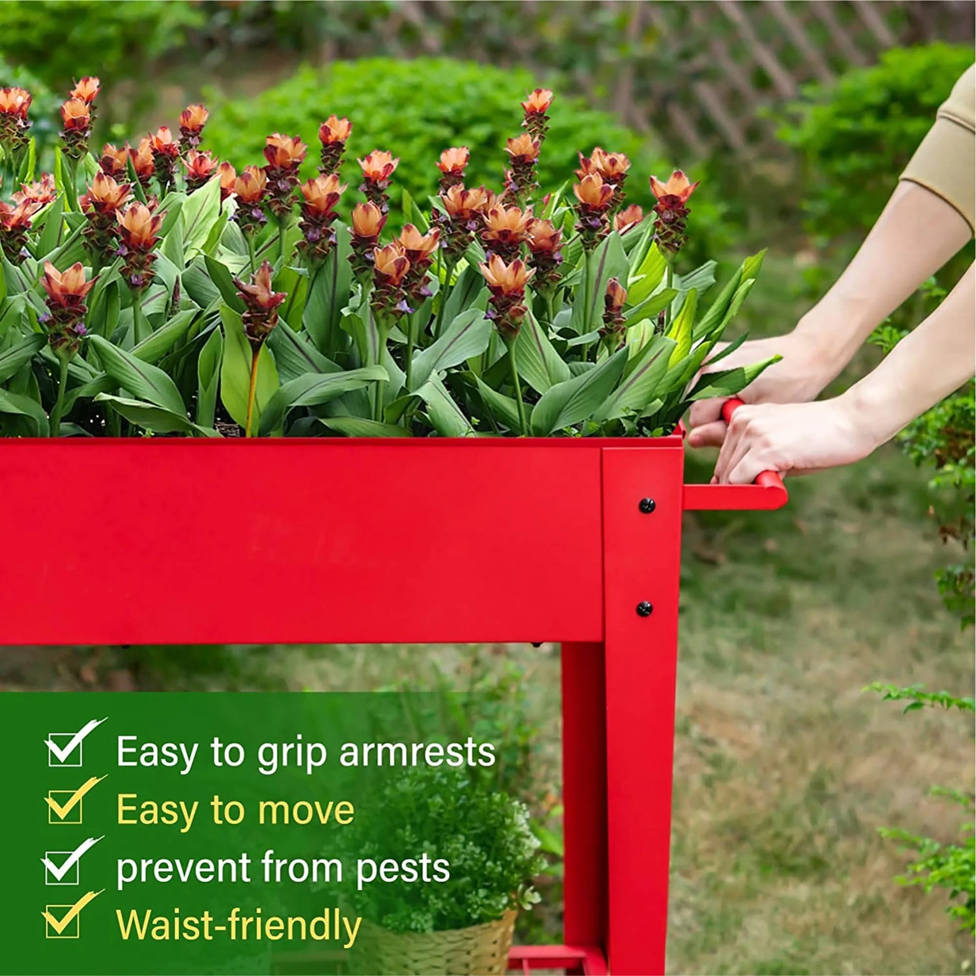 - Multipurpose Storage: The raised planter box on wheels provides ample growing space to raise lettuces, broccoli, some herbs, and flowers with the shelf underneath holding your gloves, a little shovel, and a watering can nicely. Picking fresh veggies is so easy since it is at waist height.