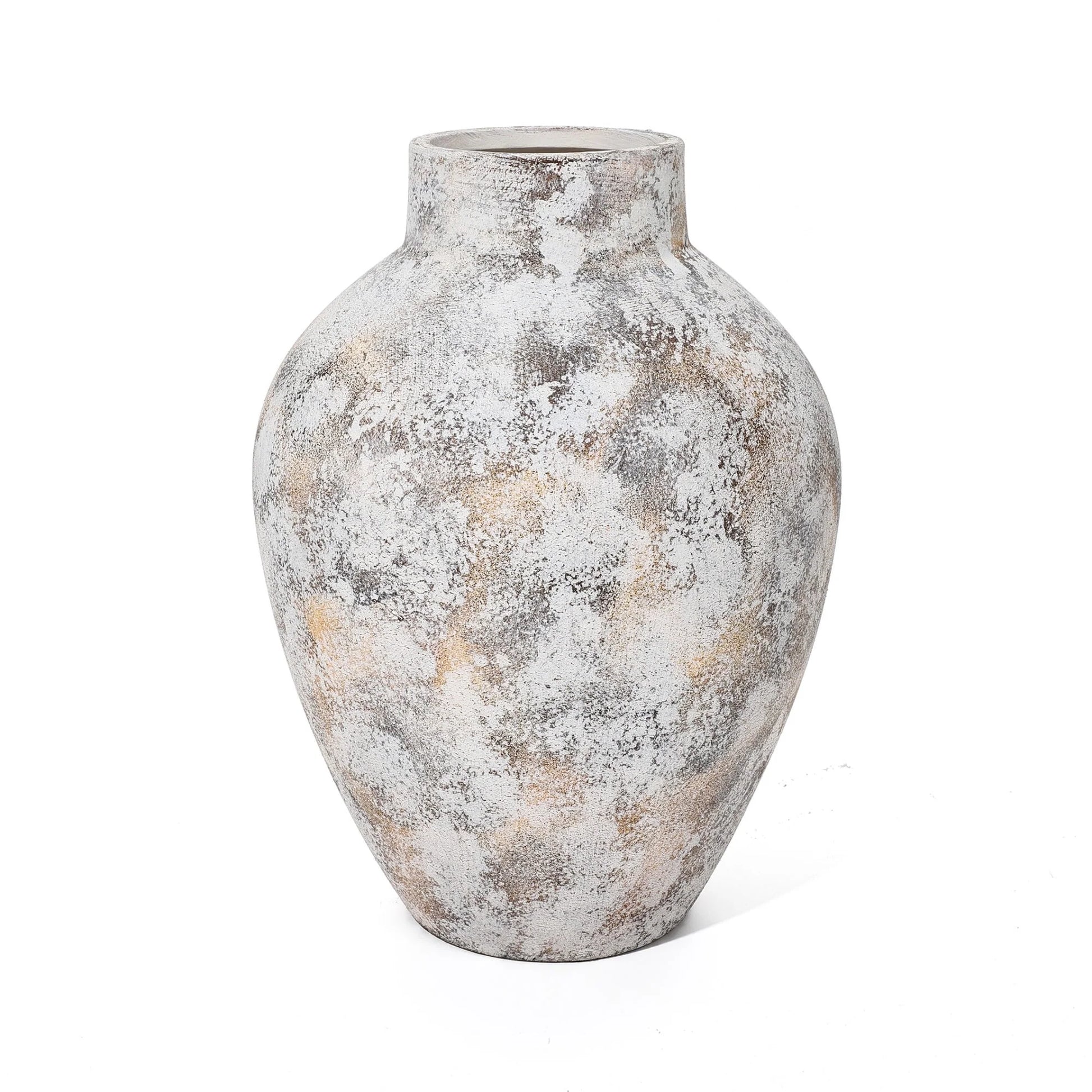 - Craftsmanship: Handcrafted vintage terracotta vase, showing the changing aging surface, conveying the charm of an ancient Mediterranean atmosphere in modern times
