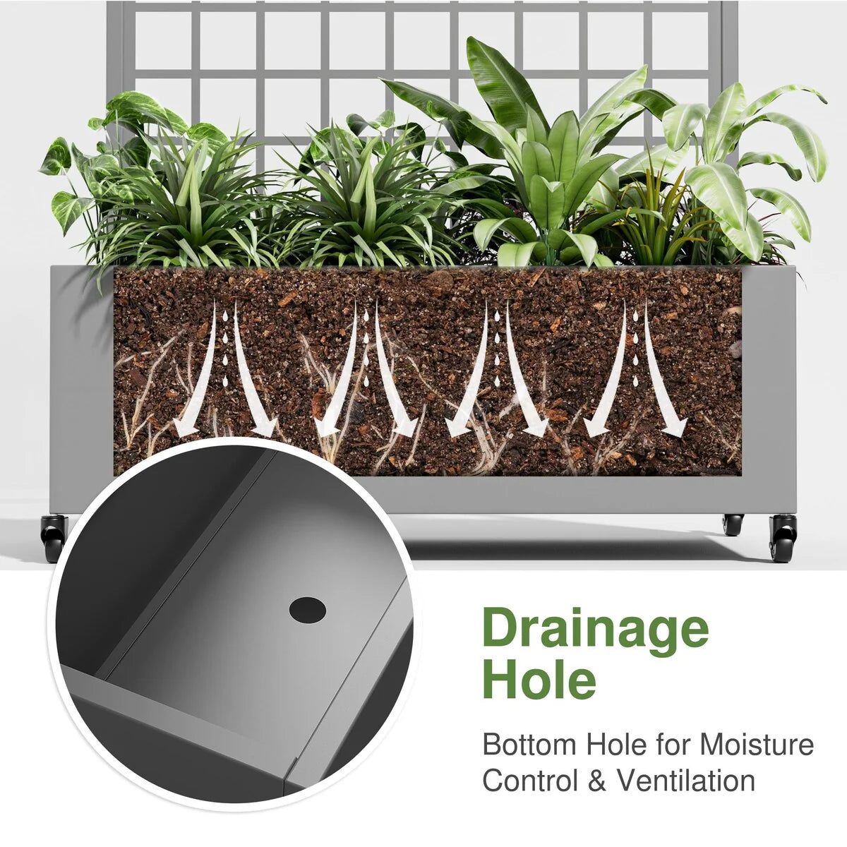 Movable Raised Garden Bed with Trellis and Lockable Wheels - 71*35