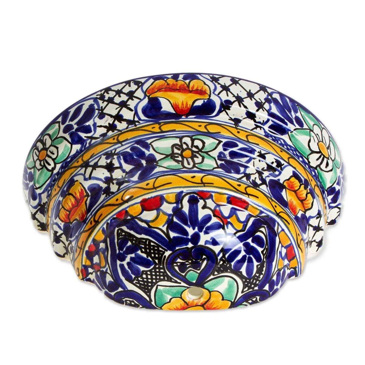 Novica Handmade Cobalt Flowers Ceramic Wall Planter