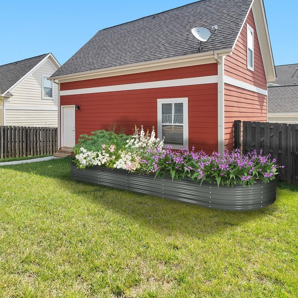 - Longer Lifespan: Made of 22-gauge 0.8mm thickness corrugated galvanized steel with multi-layer eco-friendly powder coatings. The oval round heavy-duty planter box is strong enough to hold soil for decades.