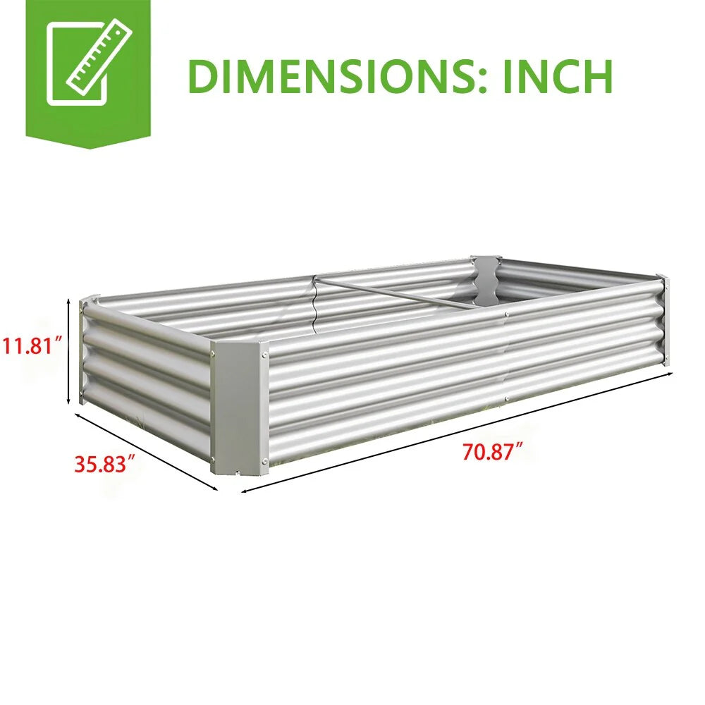 【Lager Size】This corrugated iron garden bed is perfect for growing plants close together in the backyard or creating beautiful flower beds. 70.87''(L)x 35.83''(W) x 11.81''(H) Larger capacity to meet your planting needs, Larger capacity meets your planting needs and the square shape makes the garden more tidy. It has a soil capacity of 17 cu. ft.