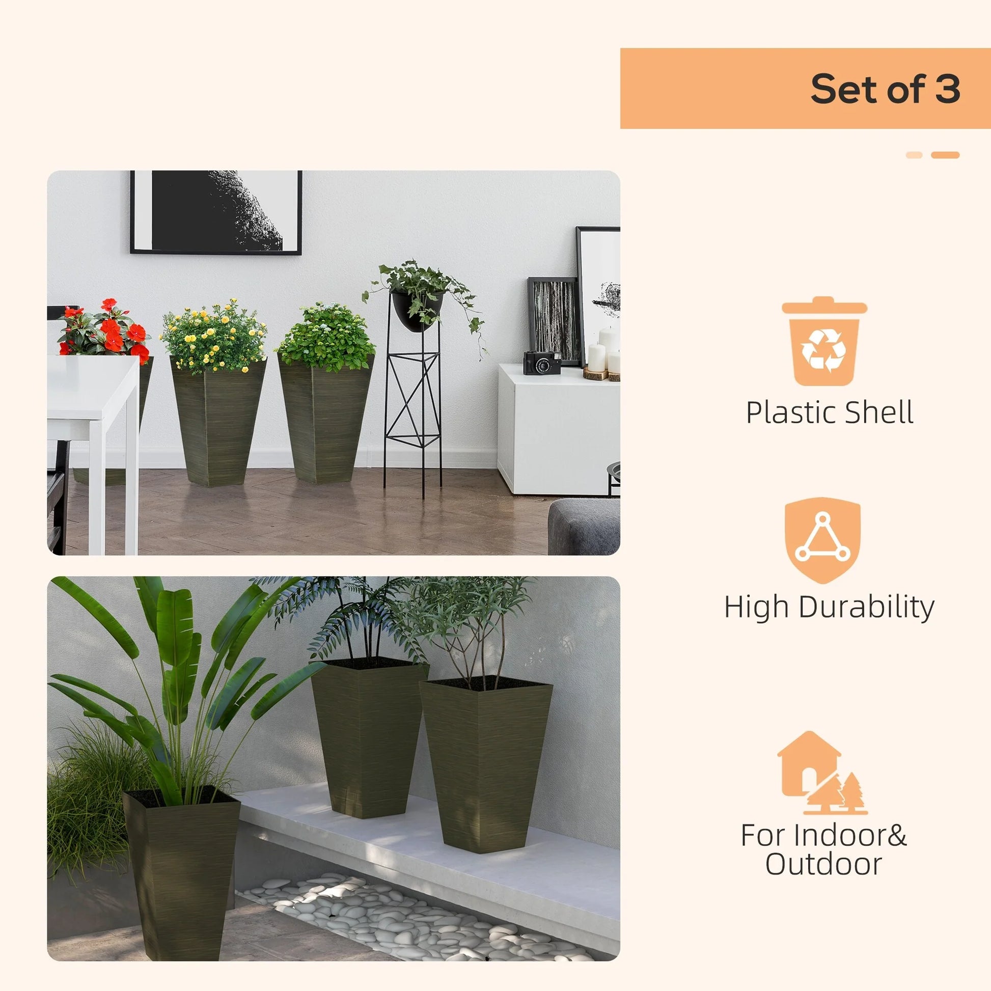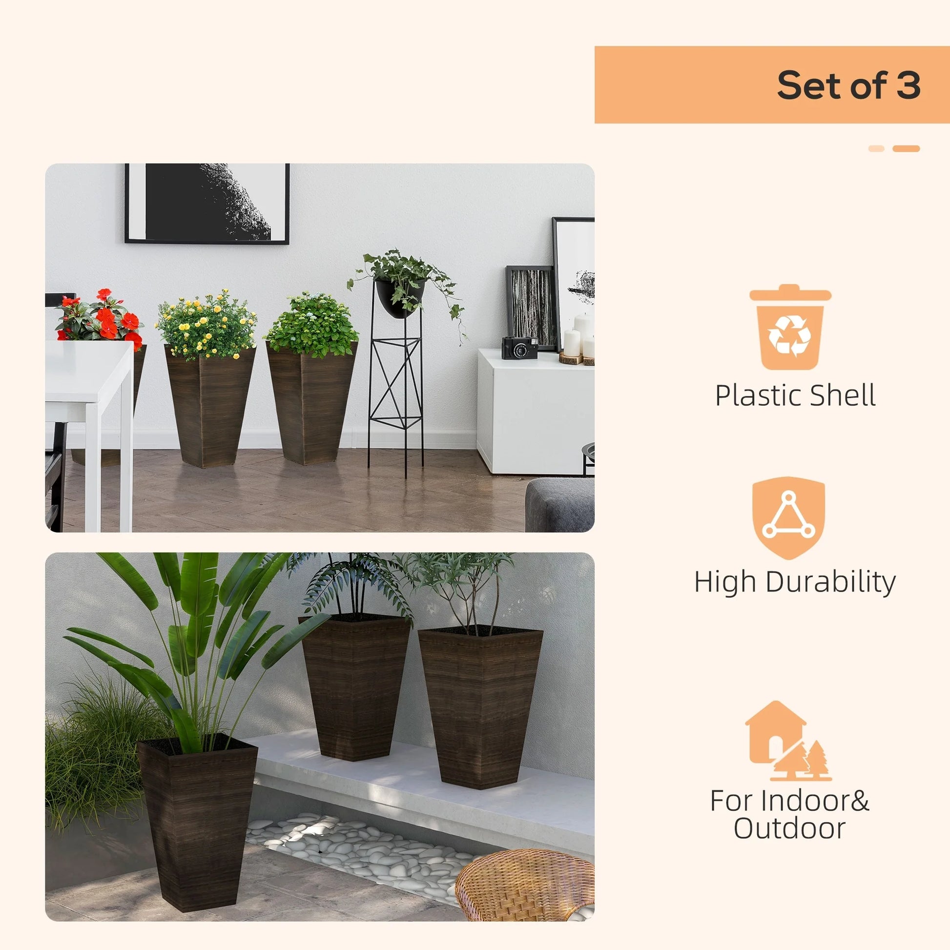 Outsunny 28" Tall Outdoor Planters, Set of 3 Large Taper Planters with Drainage Holes and Plug