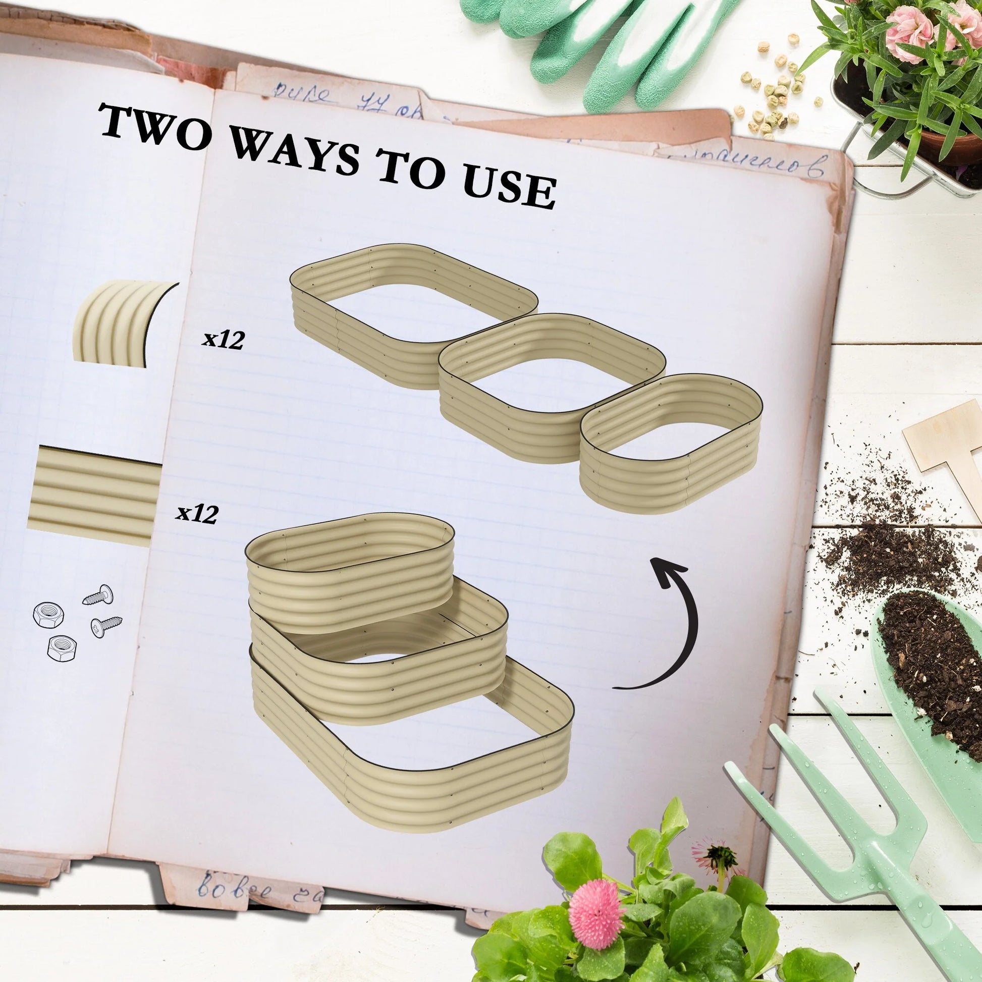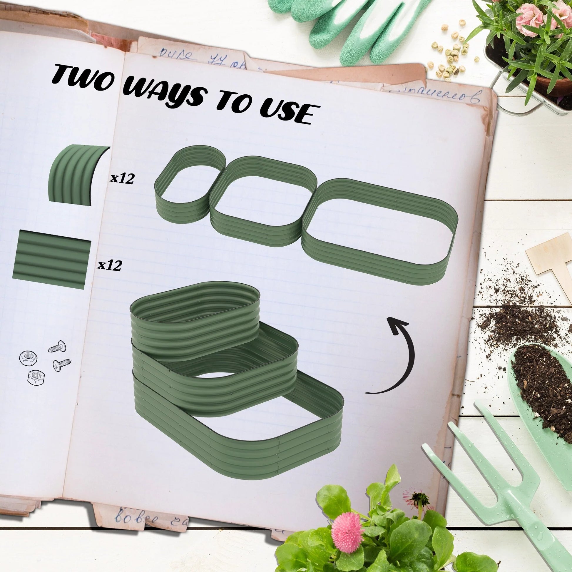 ● They can be arranged separately to create three sizes of planters