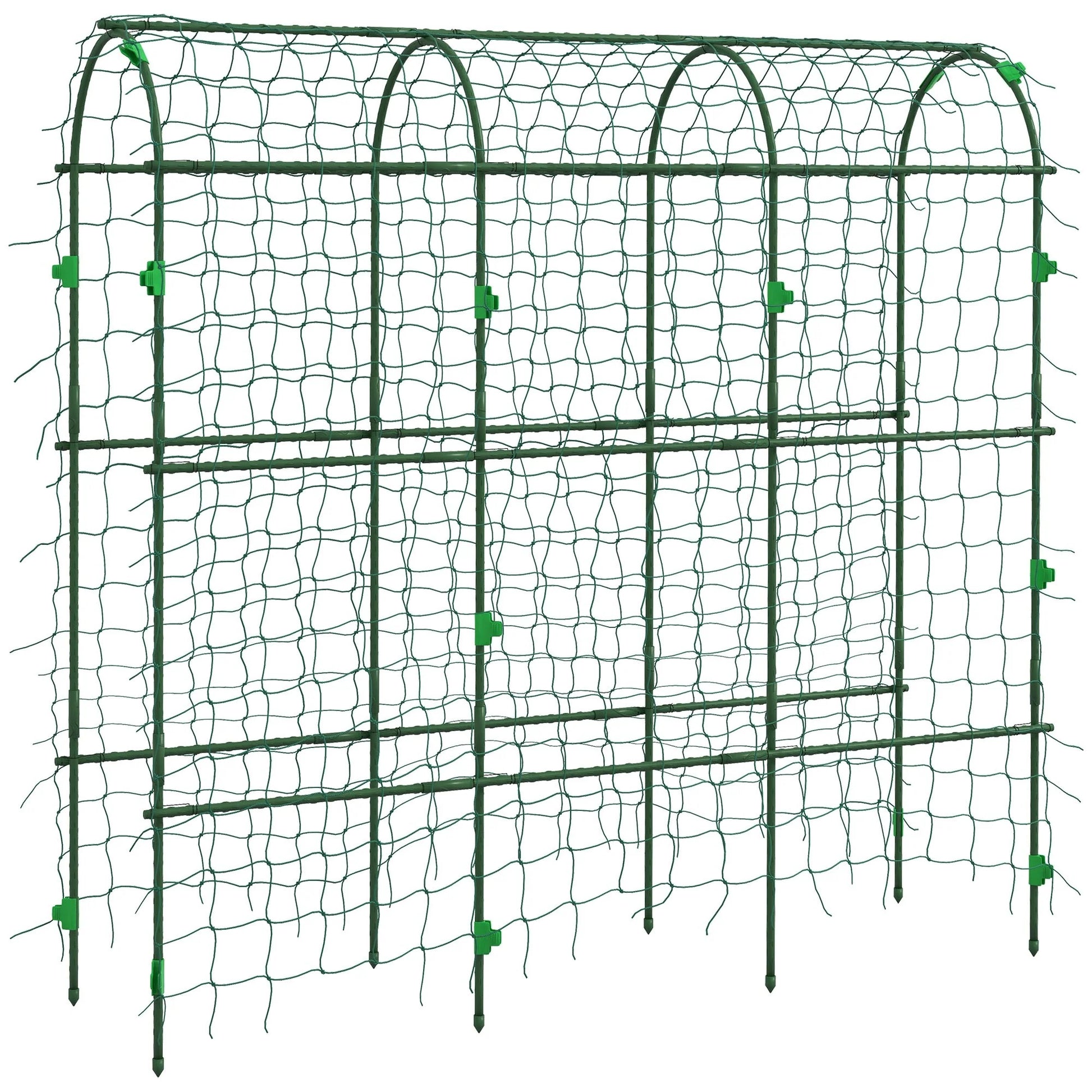Descriptions:Give your garden the support needed to reach its potential. Outsunny's metal garden trellis can help cucumbers, tomatoes, grapes, and other climbing plants. By guiding vines to ascend the framework, you can create a stunning and fruitful garden display. Our garden trellises are easy to assemble, you can customize the layer height, and they're built to endure the weather. With vertical plant support, you can maximize garden space and optimize growth. Raise your green thumb with Outsunny.Features:● Our plant support helps various vine plants and keeps your garden tidy