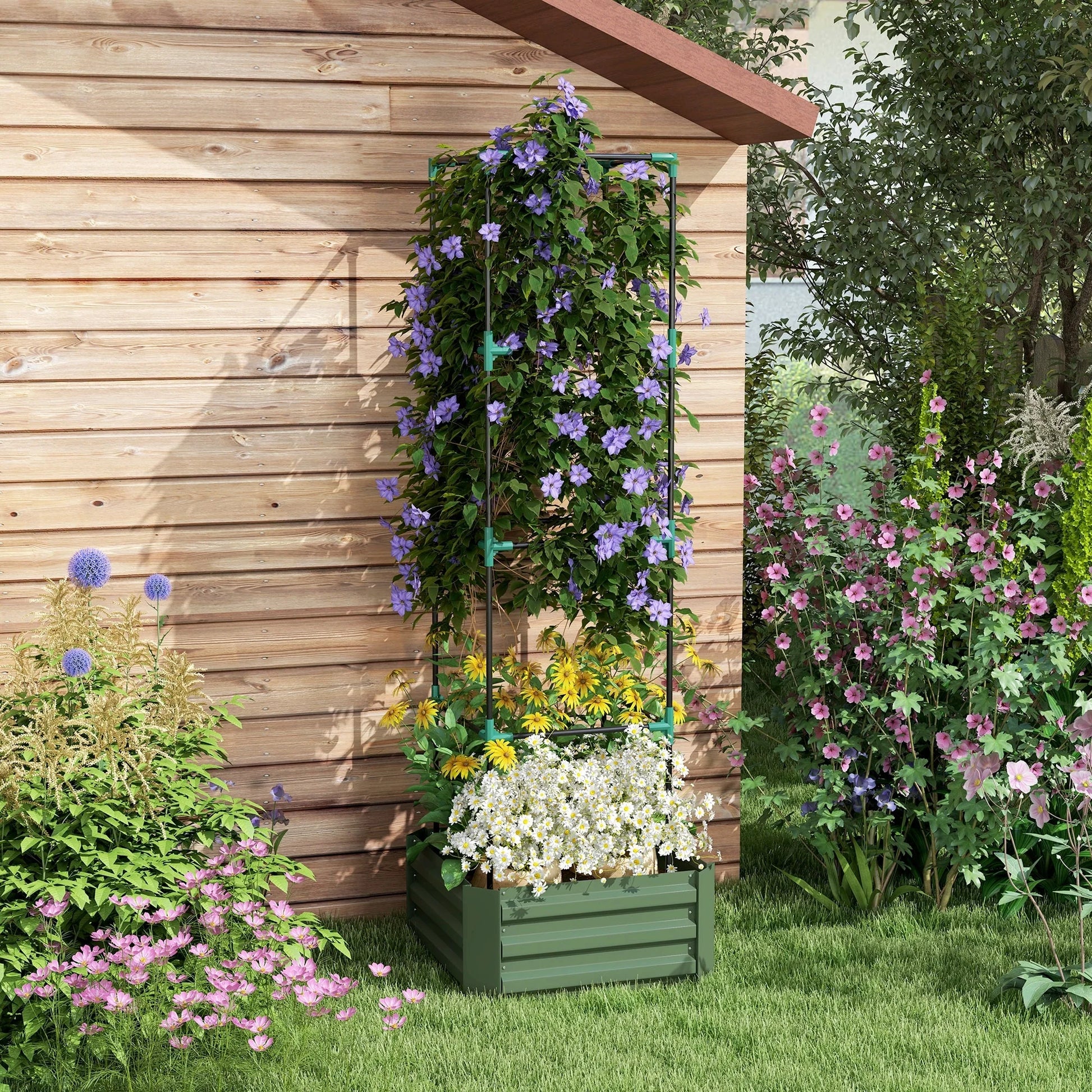Want to grow grapes or tomato vines? Any vine is prime with Outsunny's tomato trellis garden bed combo. Lift plants up and away from weeds and wild animals. With an open-bottomed design, our galvanized raised planter avoids waterlogging, and lets roots grow out extra-long. The tomato trellis adapts to the size and shape of your choice with a customizable cage design. Together, they help plants reach their potential. Raise your green thumb with Outsunny raised garden bed tomato trellis sets.