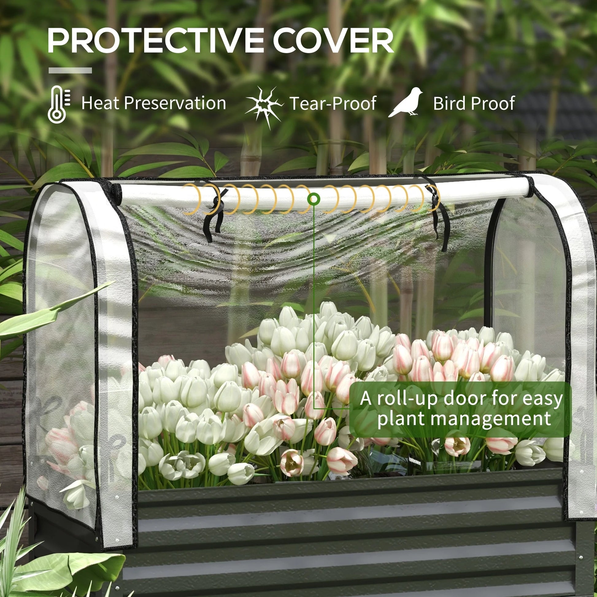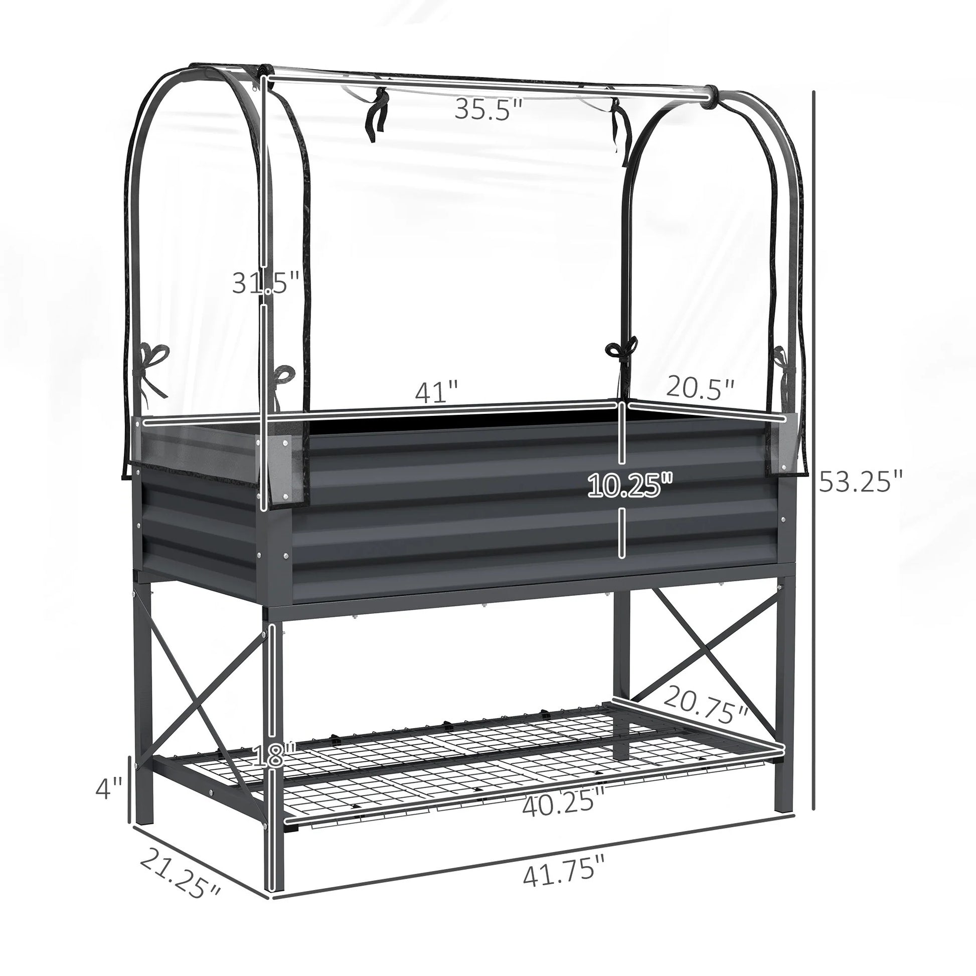 Outsunny Raised Garden Bed with Cover and Storage Shelf, Rectangular Metal Elevated Planter Box