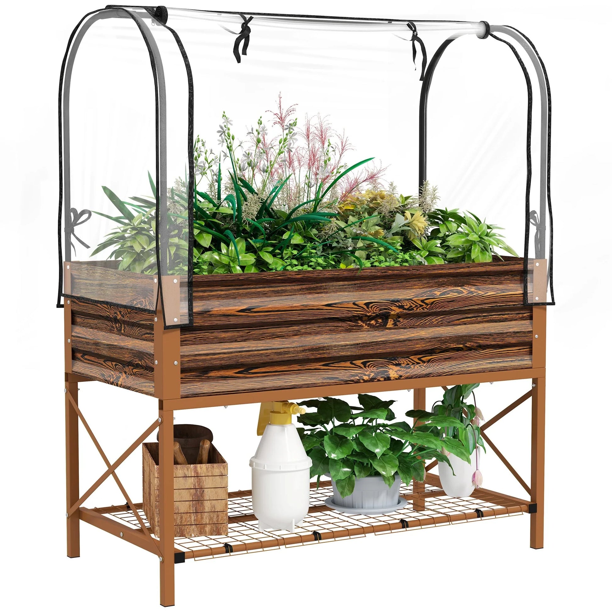 Descriptions:With an Outsunny greenhouse raised planter, having a garden is never outside your reach. Excellent for small spaces, our covered planter box helps plants withstand cold and weather while you have a garden on asphalt. By reducing bending, a raised box means garden work won't be back-breaking work. This planter lifts vegetables away from weeds to keep them safe and protected. Featuring a shelf that keeps supplies nearby, an Outsunny raised planter helps you raise your green thumb.