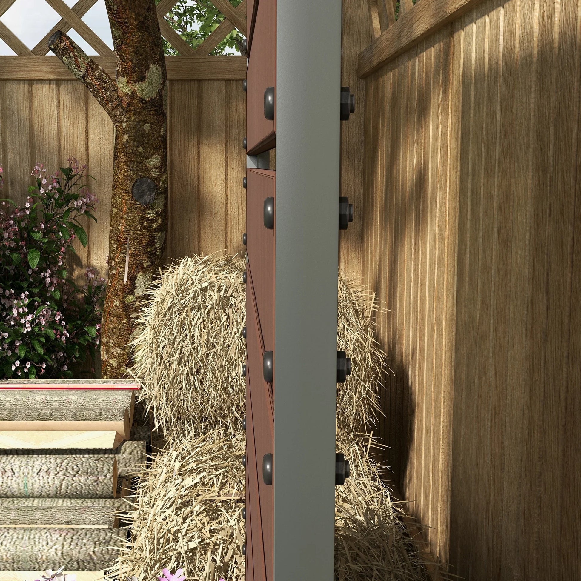 ● Climbing plants and vines can grow up and around the back trellis