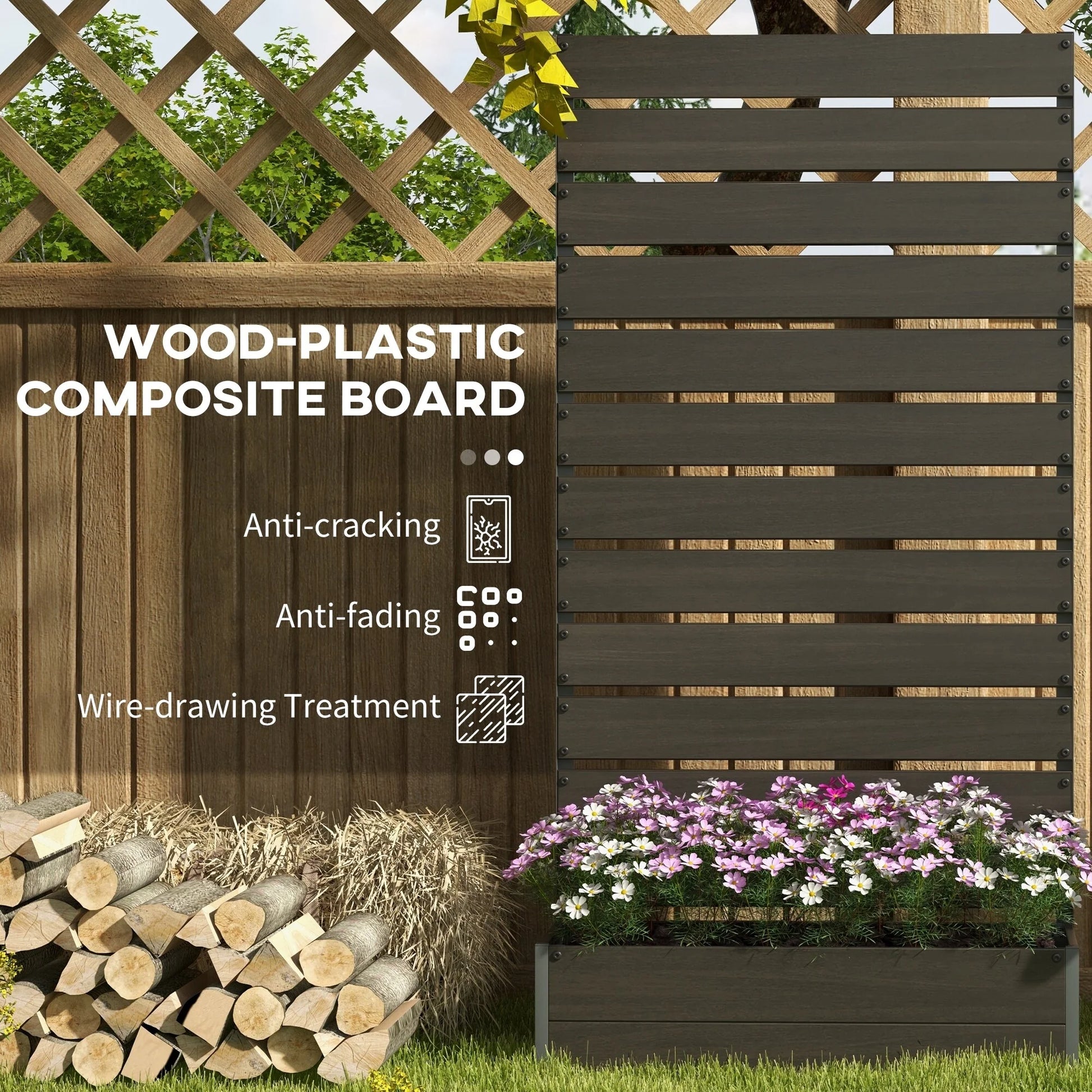 Descriptions:Like the style of a vineyard but can't commit? Create old-world charm when you customize a lovely slatted trellis. Grow grapes, plant passionflower, insert ivy, or mesmerizing morning glory—any climbing vine prime with our trellis planter. Raised up and away from weeds and small animals, it keeps your plants protected. The water-draining slit design on the bottom of the planter helps maintain safe moisture levels and keeps soil breathable. Raise your green thumb with Outsunny.