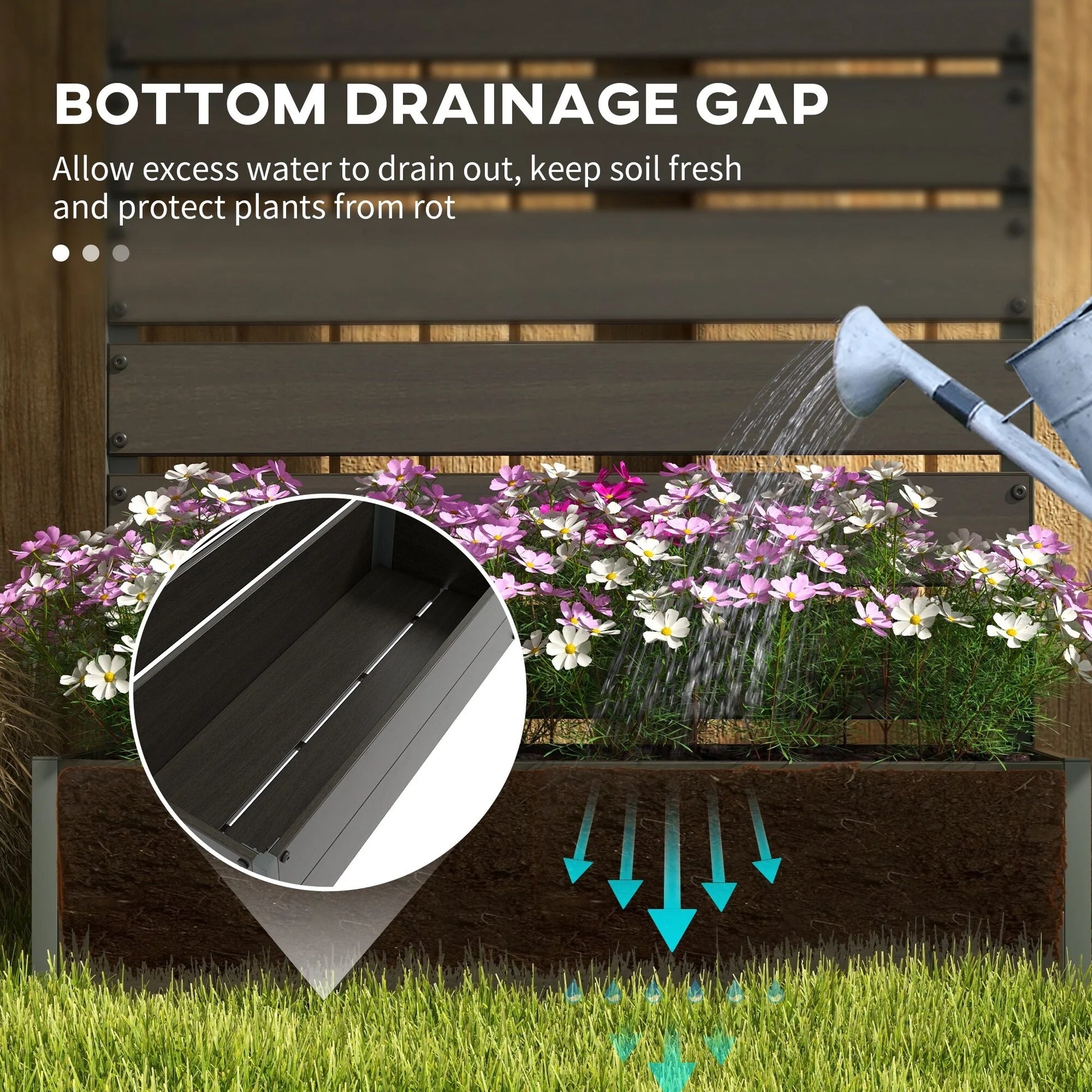 ● Bottom gaps help drain rain, so waterlogging will be less of a worry