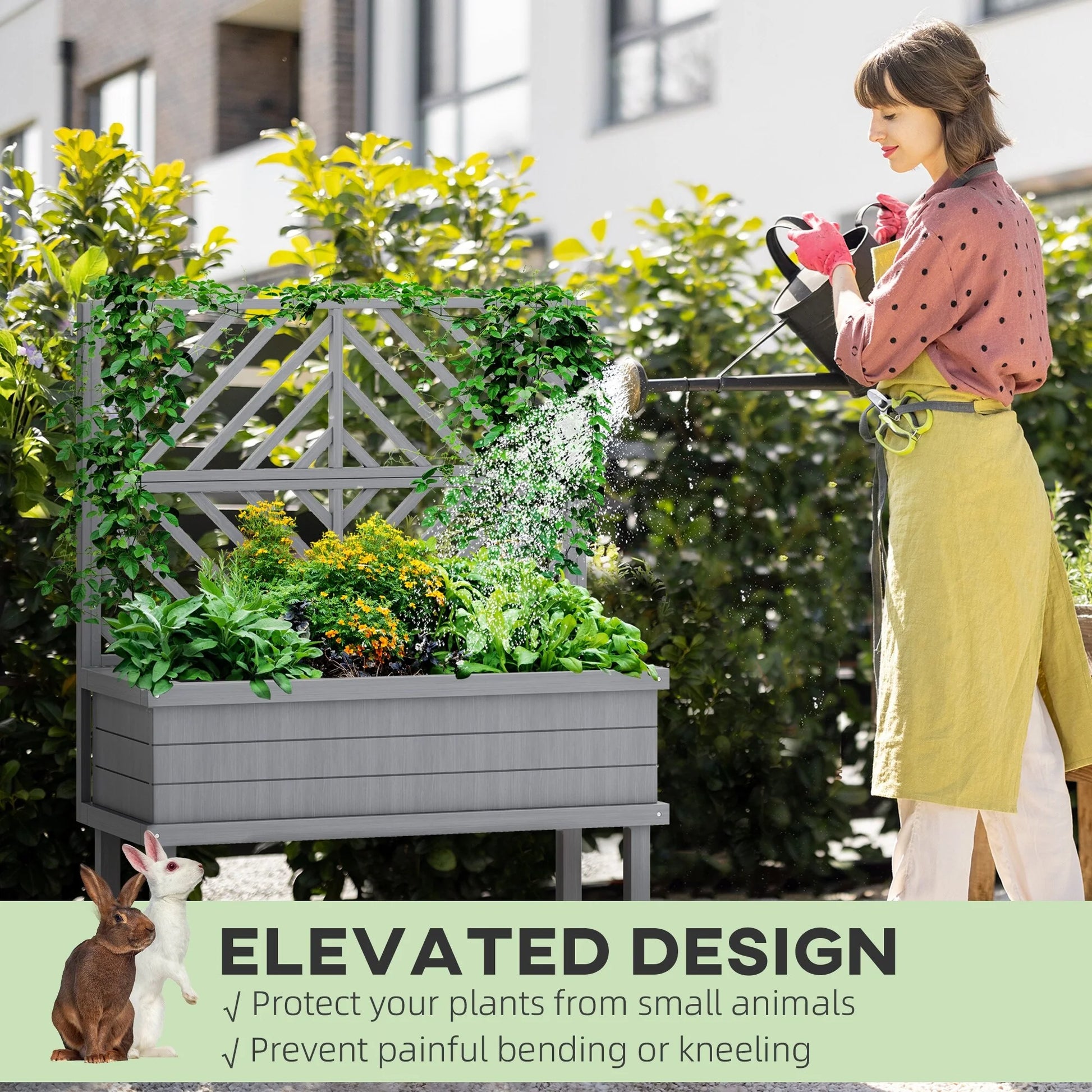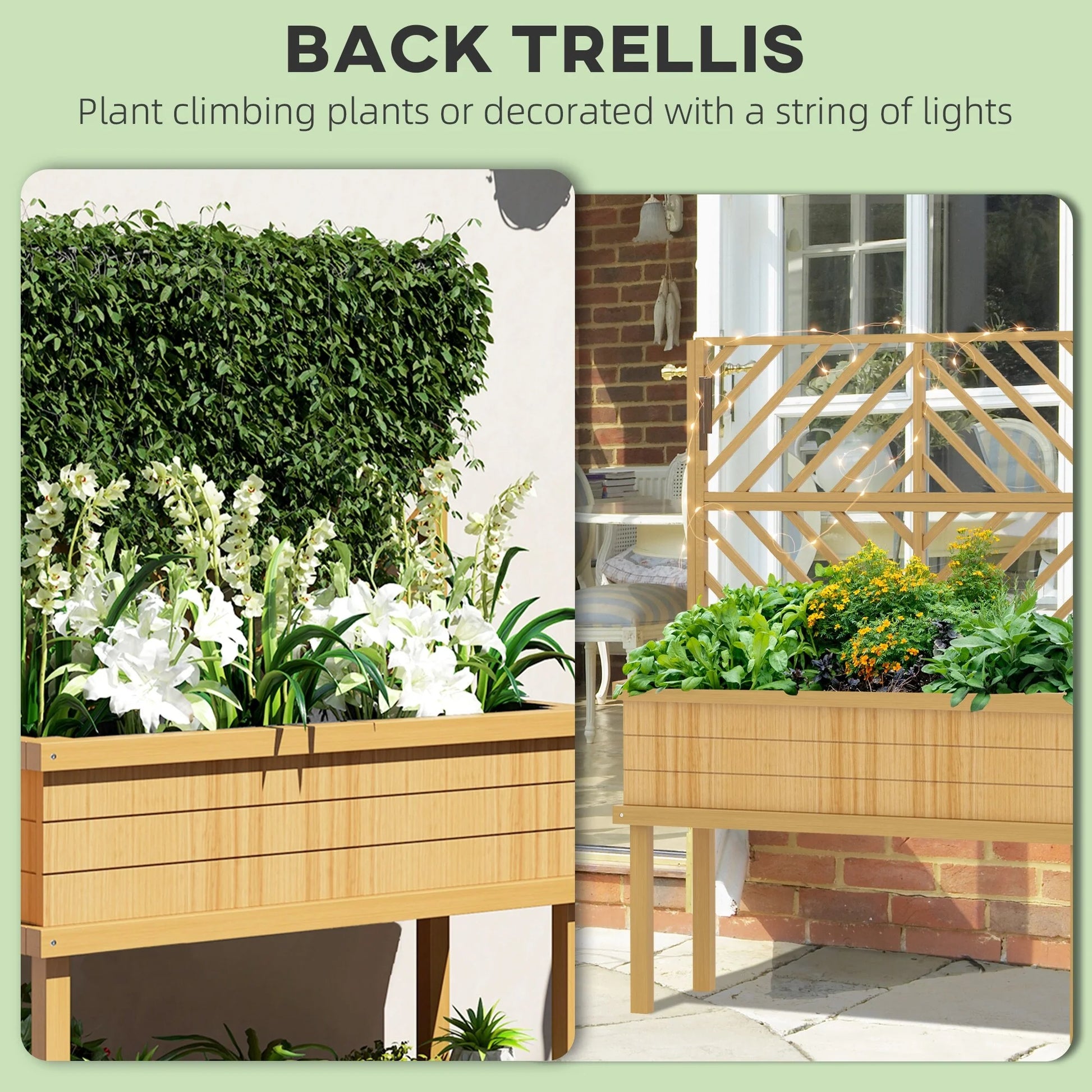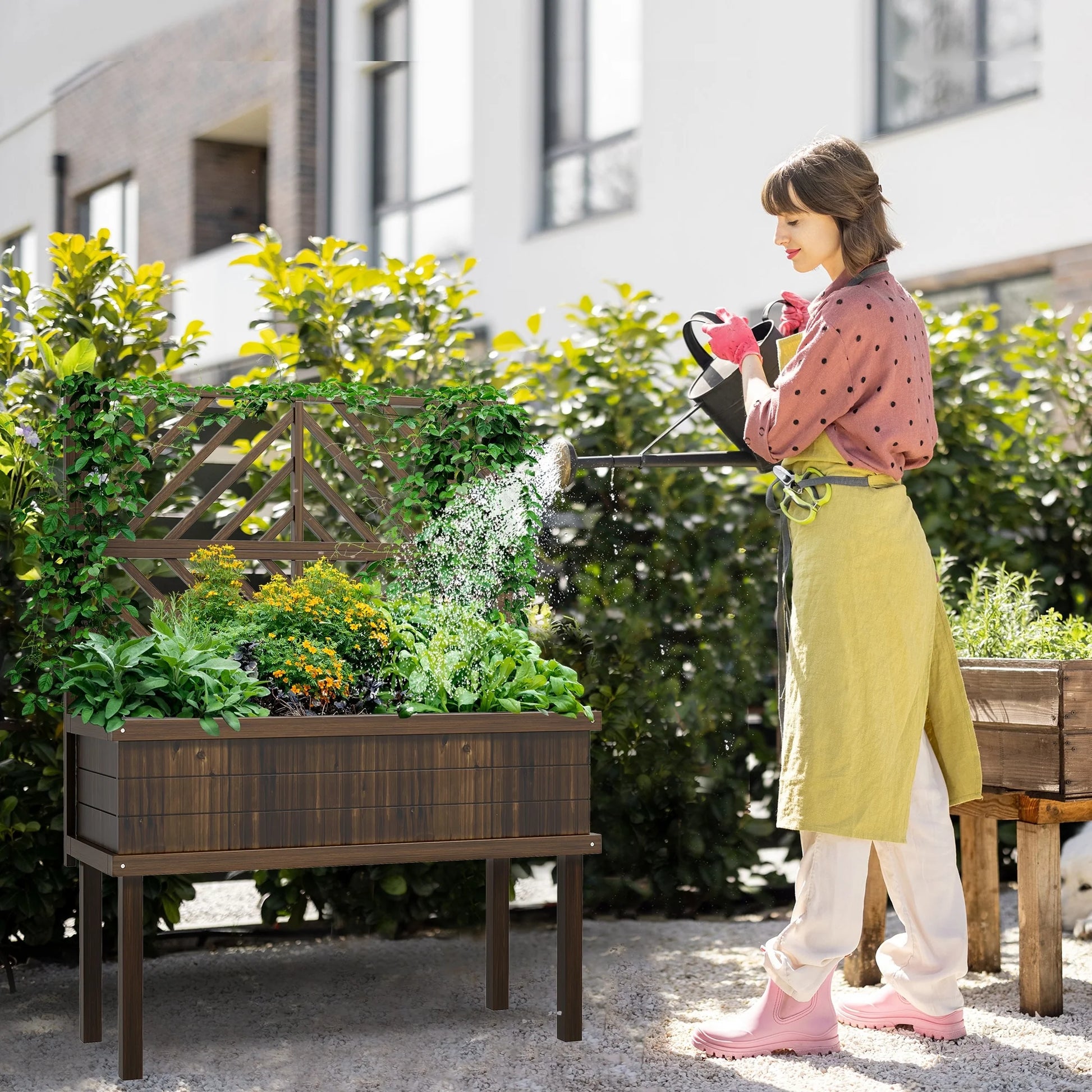 Outsunny Raised Garden Bed with Trellis for Climbing Plants, Vegetable, Grape Vines, Flowers, Wood Planter with Legs