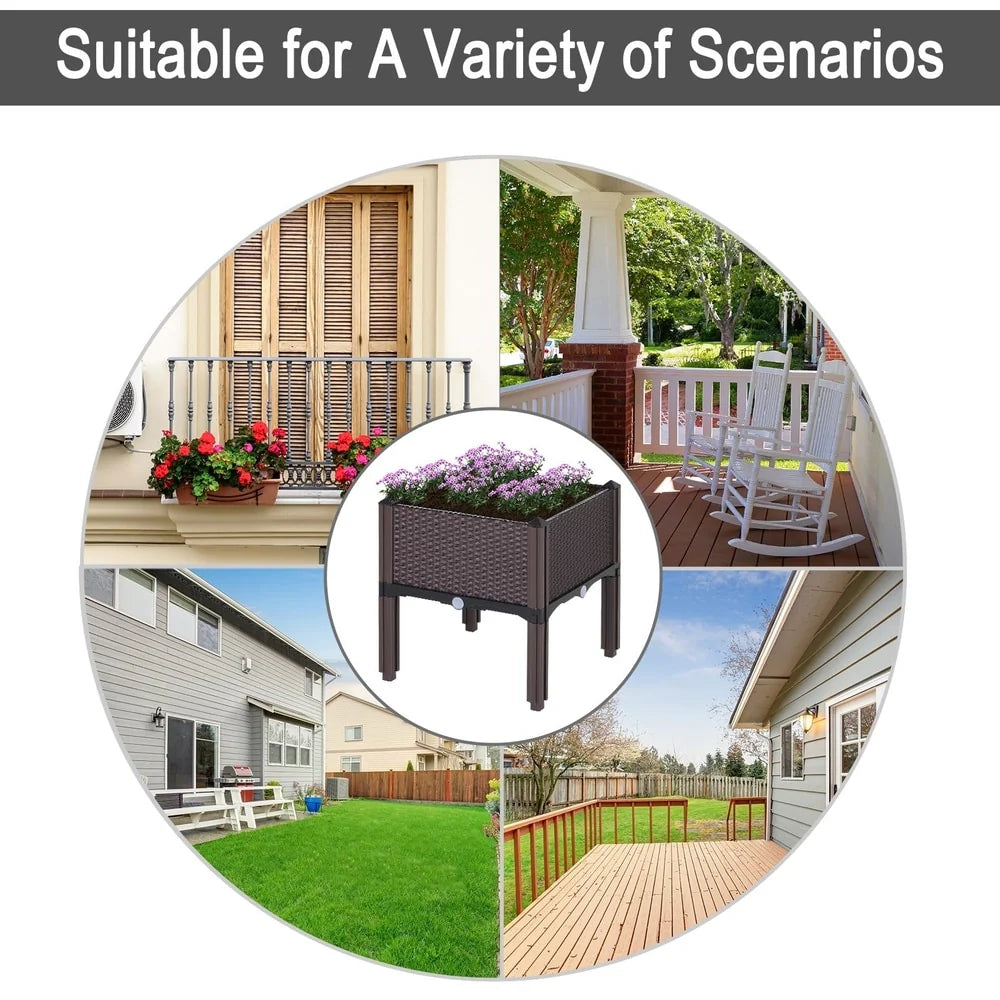 Looking for a way to start a garden but don't have a lot of land? Outsunny offers you a superior solution. Made of lightweight and water-safe plastic, our raised planter boxes keep things comfortable for you and your plants. An above-ground garden design stops you from bending or stooping so your back can be at ease. Up and away from wild animals and weeds, your plants can thrive in a protected place. Fill your yard with flowers, herbs, and vegetables. Exercise your green thumb with Outsunny.