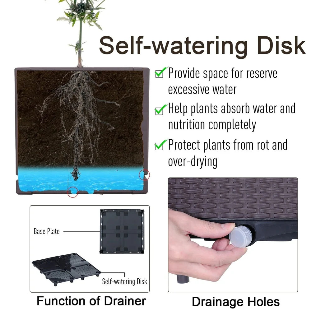 Outsunny Rattan Raised Garden Bed Outdoor Planter Box with Self-Watering Design, Compact Size, Lightweight Materials