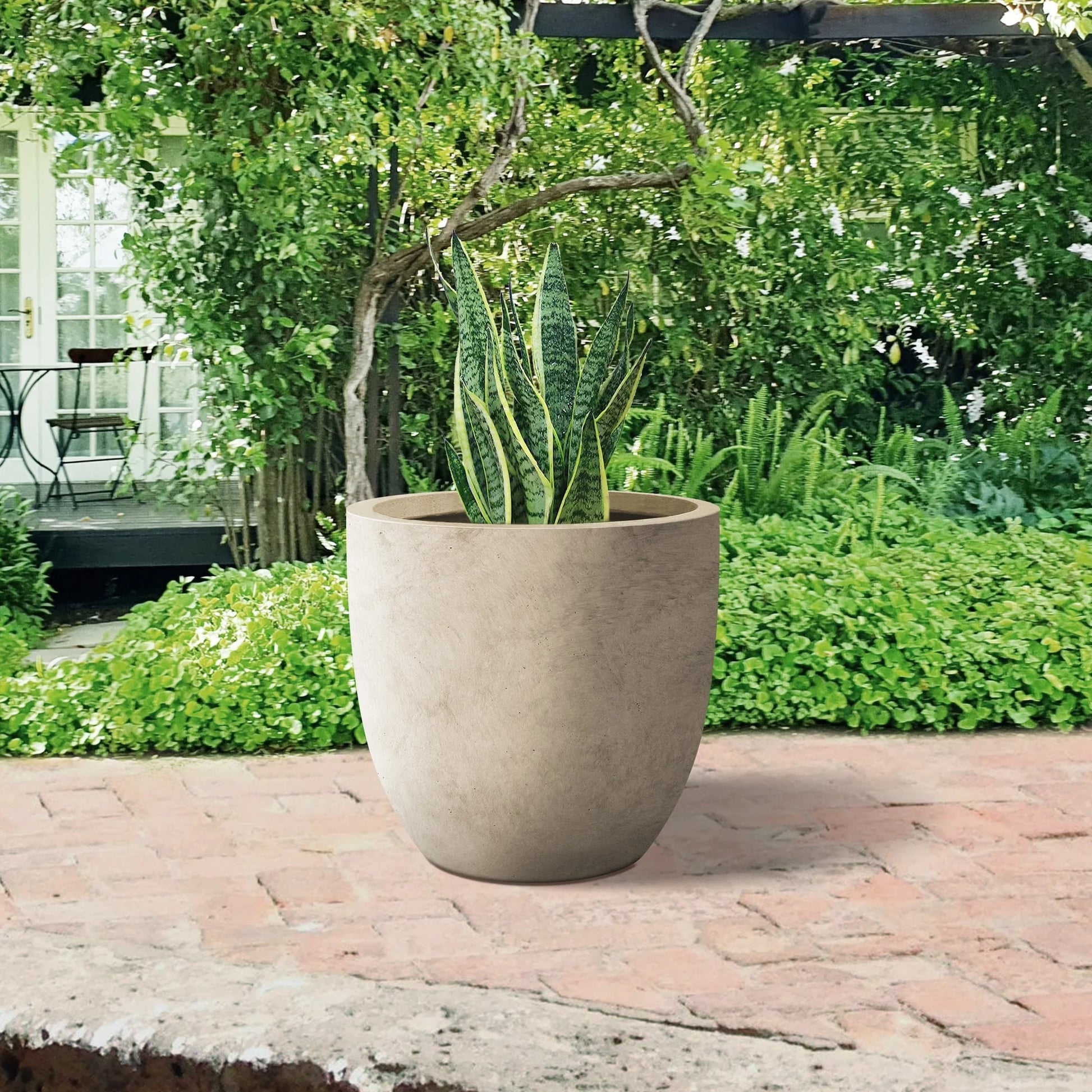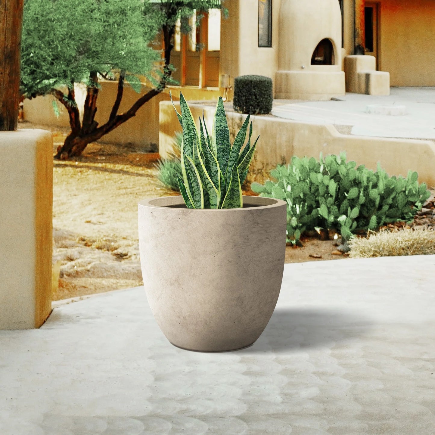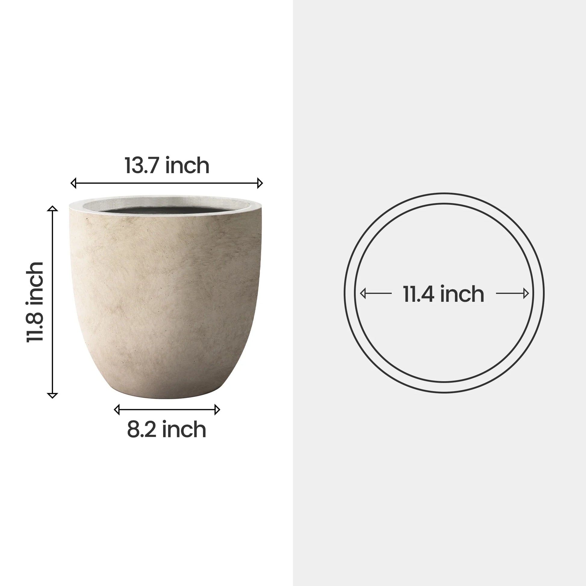 Our contemporary planter pots with an concrete finish with visible pores will add an elegant touch to your décor and it is ideal for endless succulent designs. The smooth lines and round shape of these planters will help you maintain a sleek look throughout your space, while holding a good amount of plants without looking crowded :This planter is handmade, crafted of lightweight concrete through an manufacturing process,and built in drainage hole create a healthy living environment for your plants. Spacious with deep pot space to suit: fiddle leaf fig tree, plant, spider plant, aloe vera, money tree, pothos, artificial tree etc.Engage a modern minimalist style to match home decors and to display your plants.Adorn your outdoor and indoor areas: home, garden, office, porch, patio etc. This material has strong UV resistant ability and stay well in wind, rain, hot and cold season. By adding fiber clay material, planter is much easier to move around due to its lighter weight.You can use it indoors and outdoors freely.MODERN CONCRETE PLANTER - This modern round planters were handmade with an authentic weathered concrete finish with visible pores will add an elegant touch to your décor and to display your plants.Size: 13.8"D x 11.8"H.LIGHTWEIGHT - Made of concrete and weather-resistant fiberglass that is light so you can lift it easily.STURDY & DURABLE - This planter advantages were strength, durability, weather and damage resistance,long-lasting color,and a strong UV resistant ability that stays well in wind, rain, hot and cold season.DRAIN HOLE - This large planter comes with drainage hole, to create a healthy living environment for your indoor and outdoor plants. The water reservoir at the base ensures that your plants and flowers always receive the correct amount of water without the worry of over watering. Your fiddle leaf fig tree, plant, spider plant, aloe vera, money tree, pothos, artificial tree etc will thrive in this large flower pot. A saucer is needed for indoor use (NOT INCLUDED). PERFECT BOTH FOR INDOORS & OUTDOORS - This planter is handmade and great for decorate your outdoor and indoor areas:office,home,garden, porch, patio, deck, balcony, living room, study room, kitchen etc.