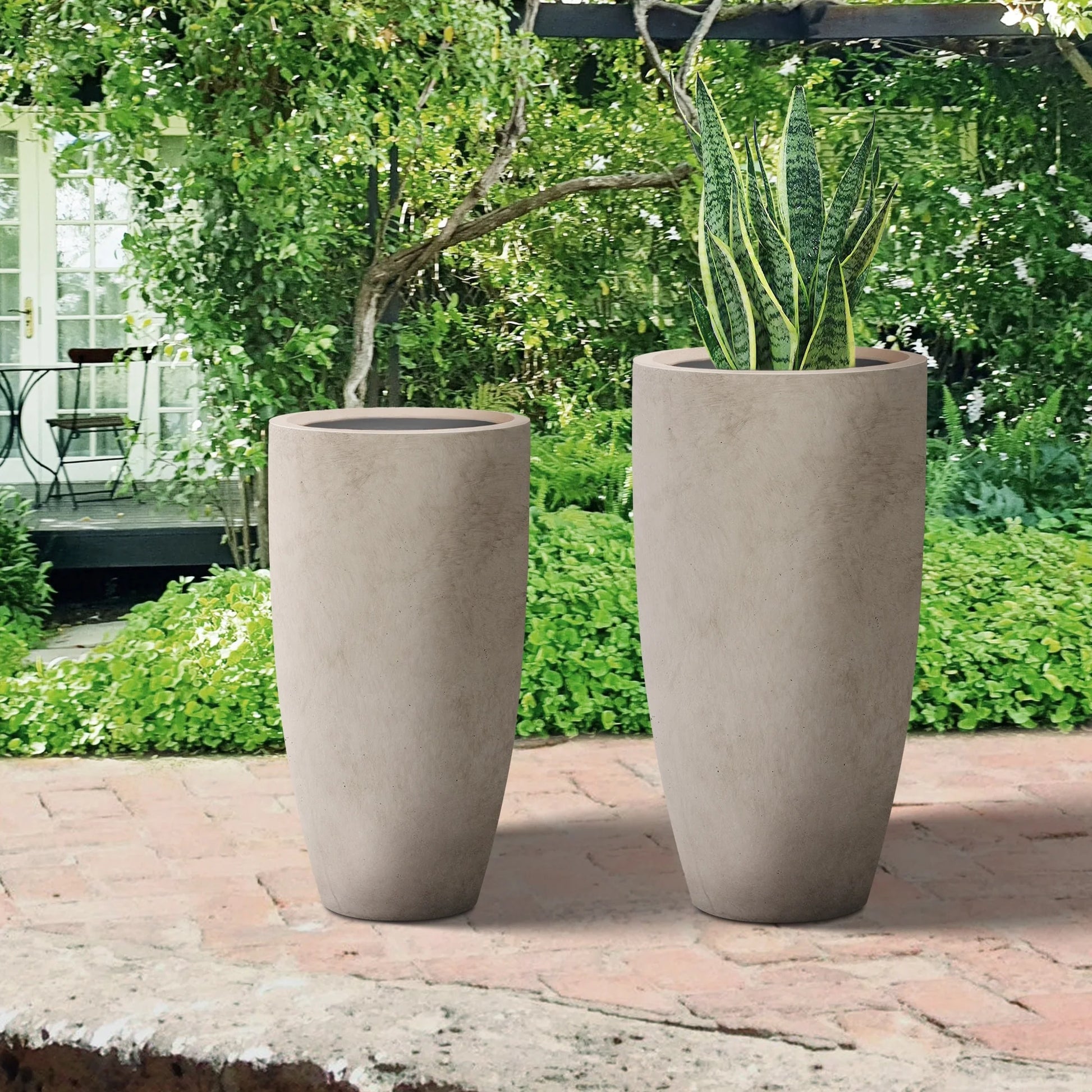 Plantara 32" & 23.6" H Tall Concrete planter, Large Outdoor Plant pot, Modern Tapered Flower pot for Garden