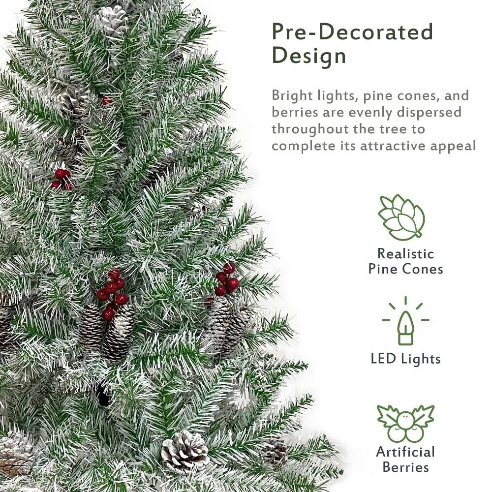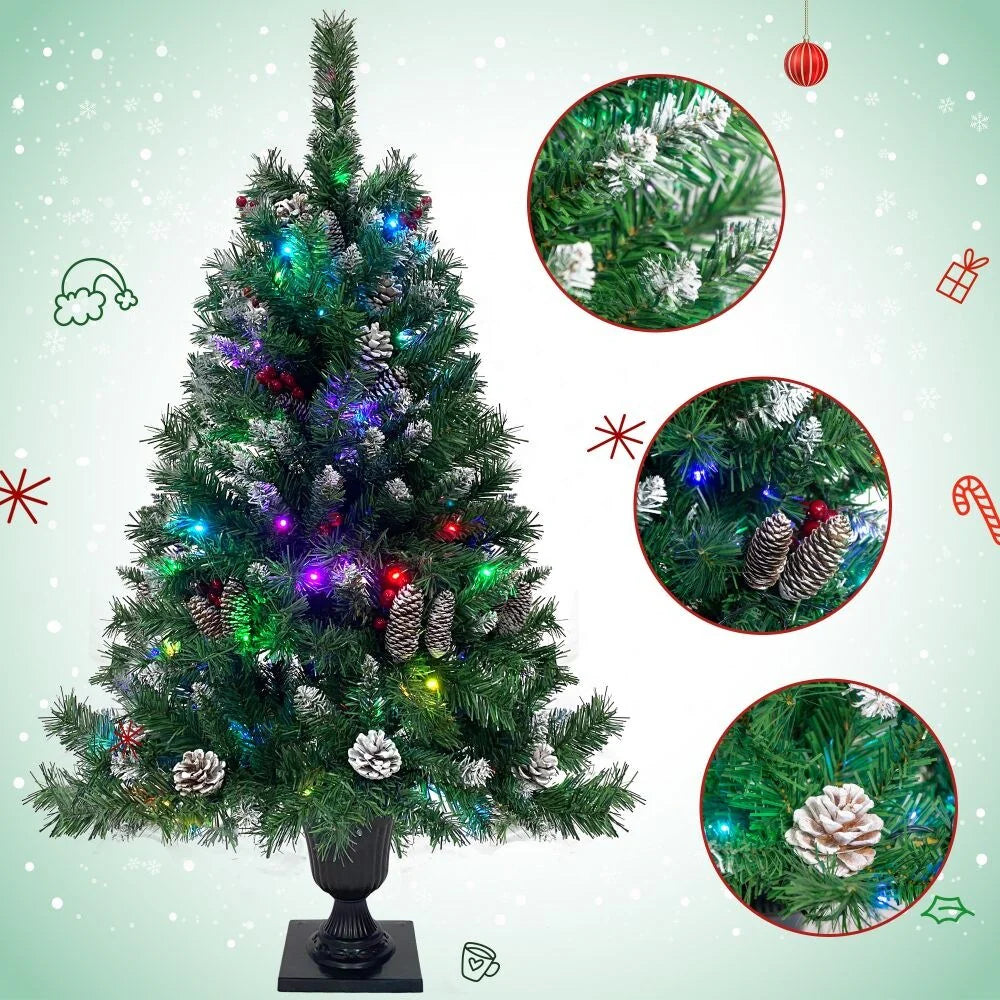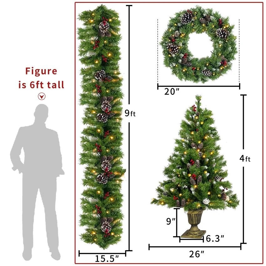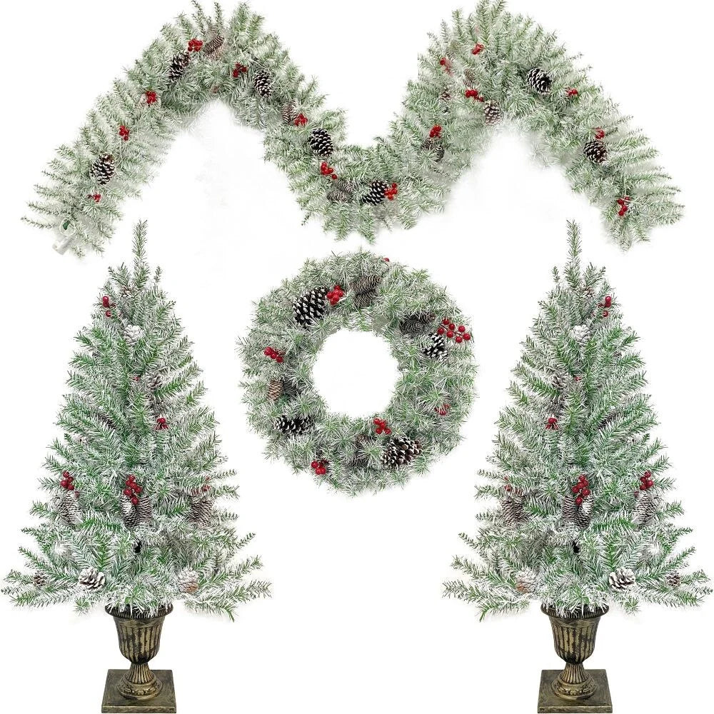 Pre-lit Artificial Christmas 4-Piece Set,Garland, Wreath and Set of 2 Entrance Trees