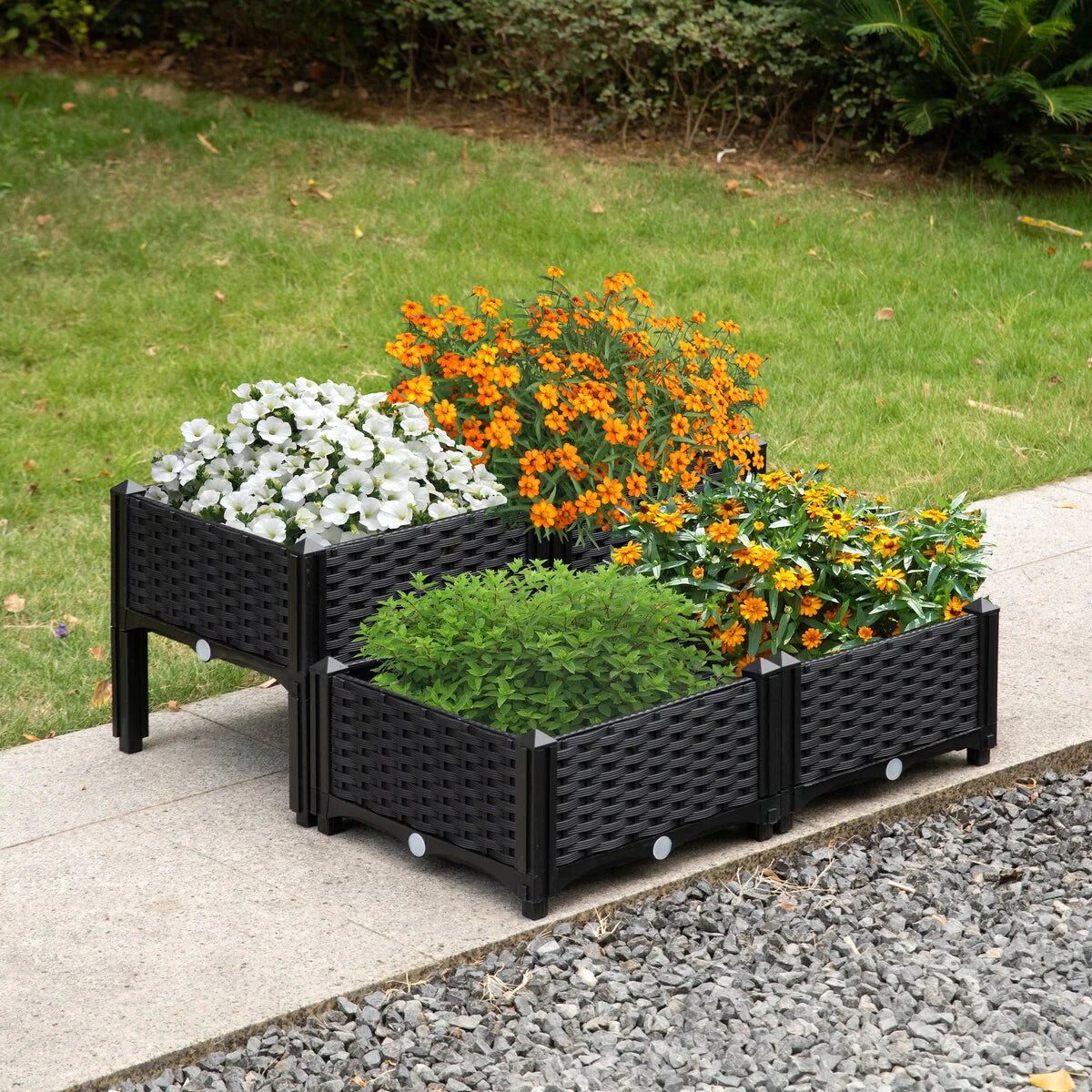 Plant your flowers, plants, herbs or vegetables with this raised bed planter. Composed out of durable plastic material that is long lasting, weather proof and easy to maintain. DIY gardening, simple, quick, and easy to assemble and install. Tool free designed so you can have your planter easily built!