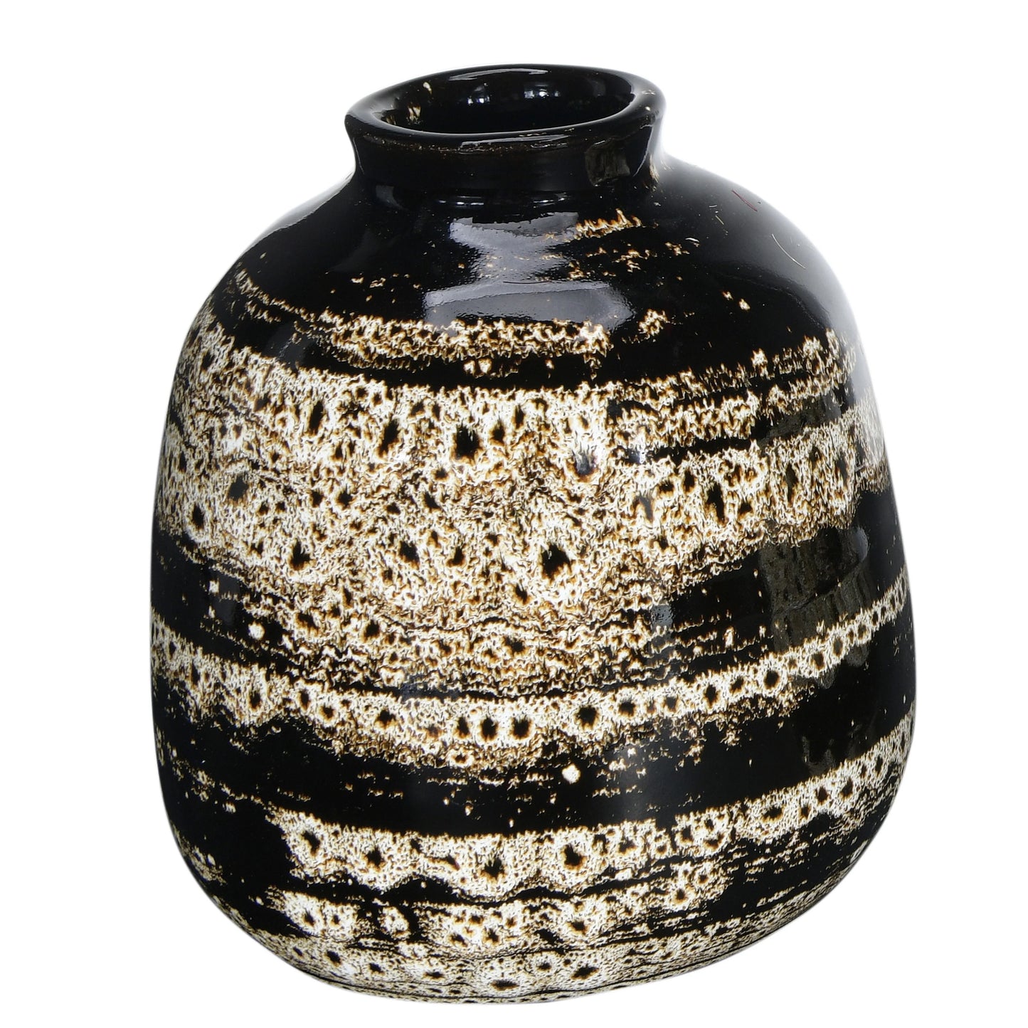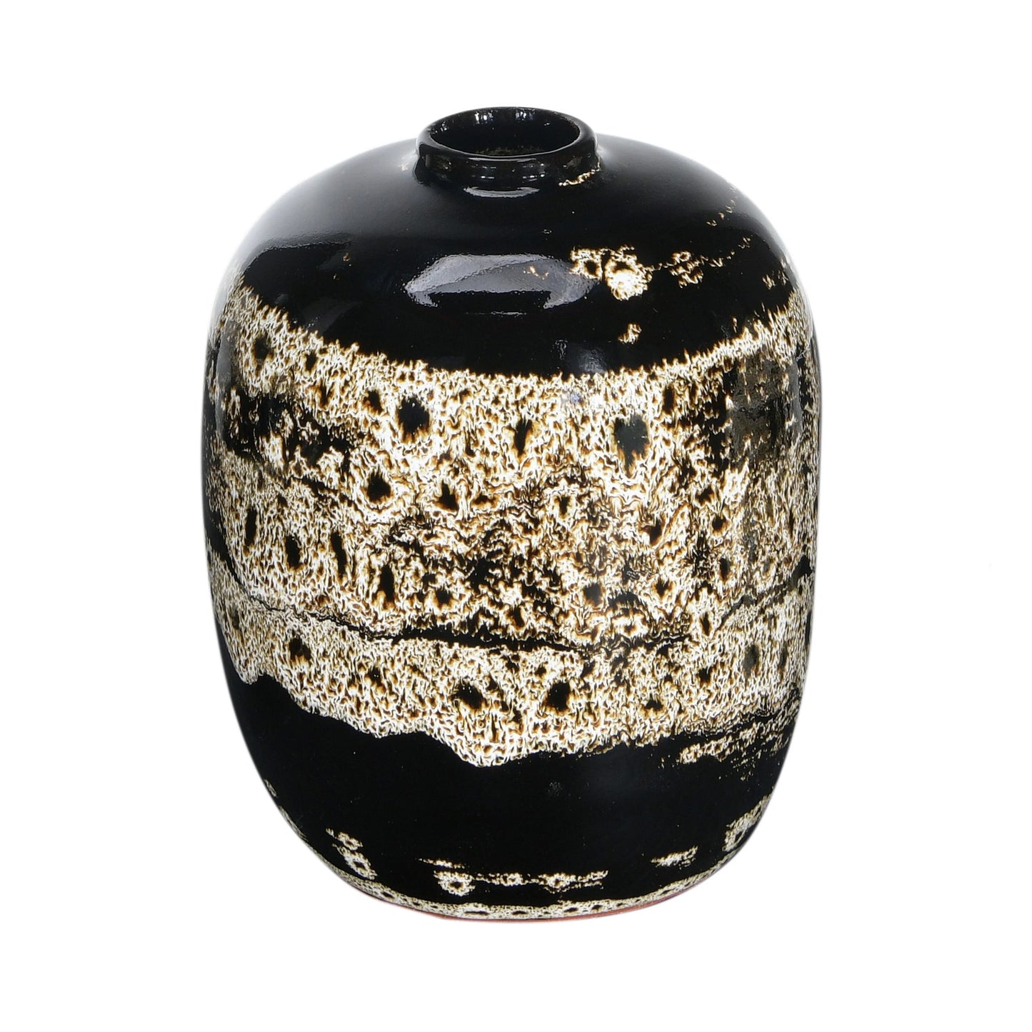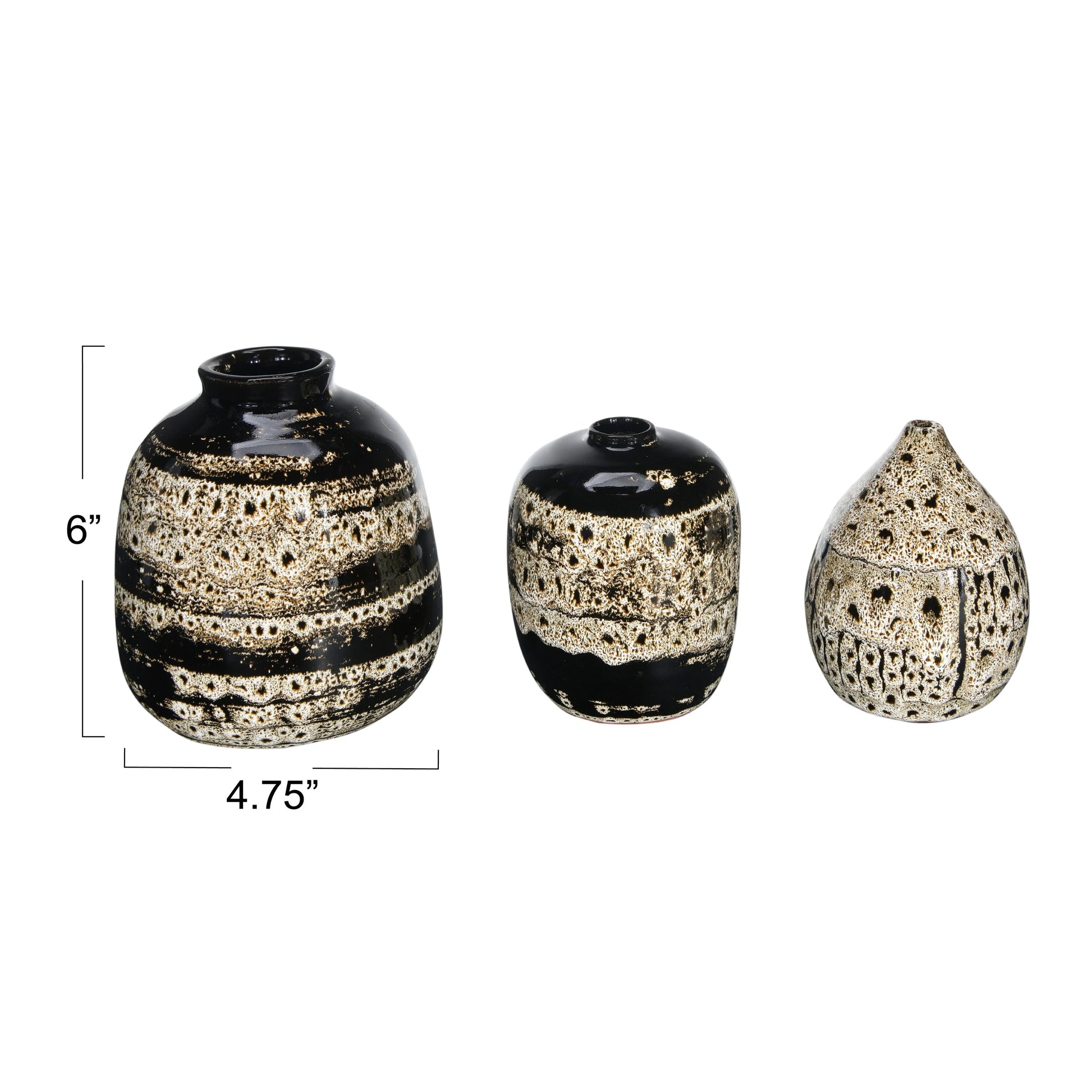 A beautiful way to add some character and coziness to any space, these brown terra-cotta vases with a reactive glaze, set of 3, feature a reactive glaze in a distressed design, creating a rustic and charming look that enhances the beauty of the brown color. The vases do not have any drainage holes, so they are suitable for holding dried or artificial flowers, or as decorative accents on their own. The vases are made of durable terra-cotta, a natural material that has a porous and earthy feel. The vases come in three different sizes, measuring 4.75 inches in diameter and 6 inches in height, 4 inches in diameter and 5 inches in height, and 3 inches in diameter and 4.75 inches in height. This set of three vases will look great in any farmhouse, country, or boho-style décor, adding some texture and warmth to any space.