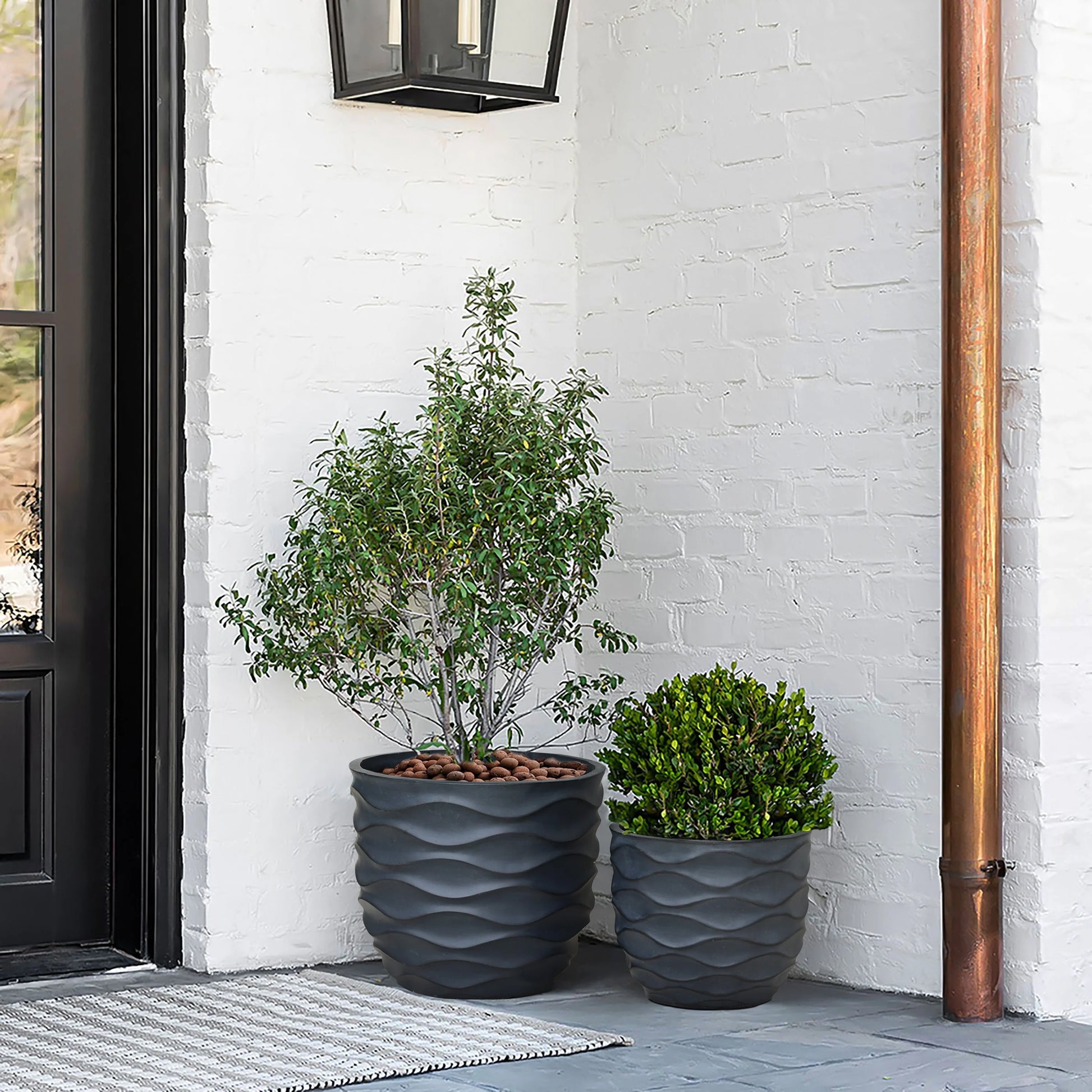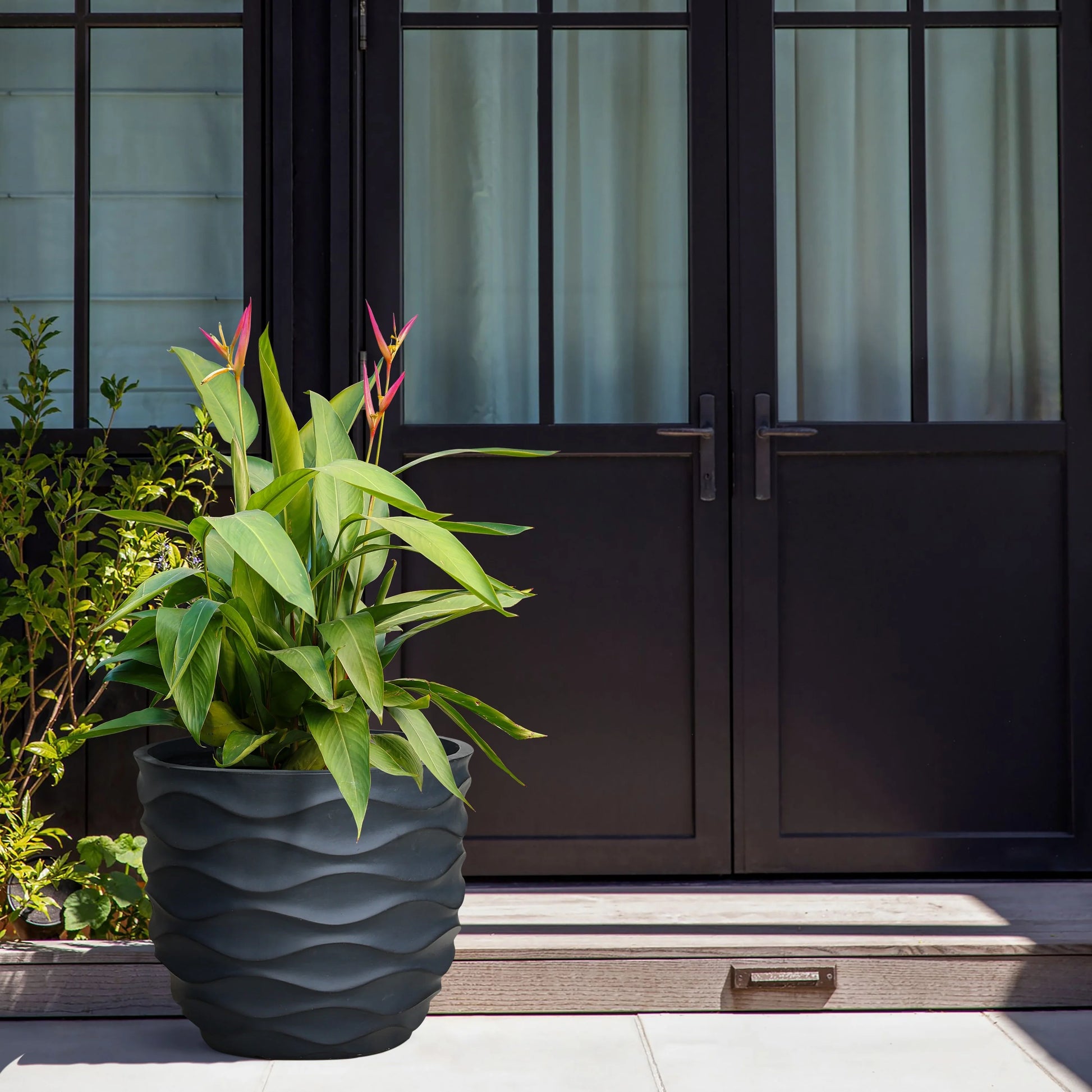 - Whether showcasing a plant indoors or placed on the front steps, porch, or patio, this wavy texture design planter seamlessly integrates into modern, minimalist, and traditional decor with its distinctive style