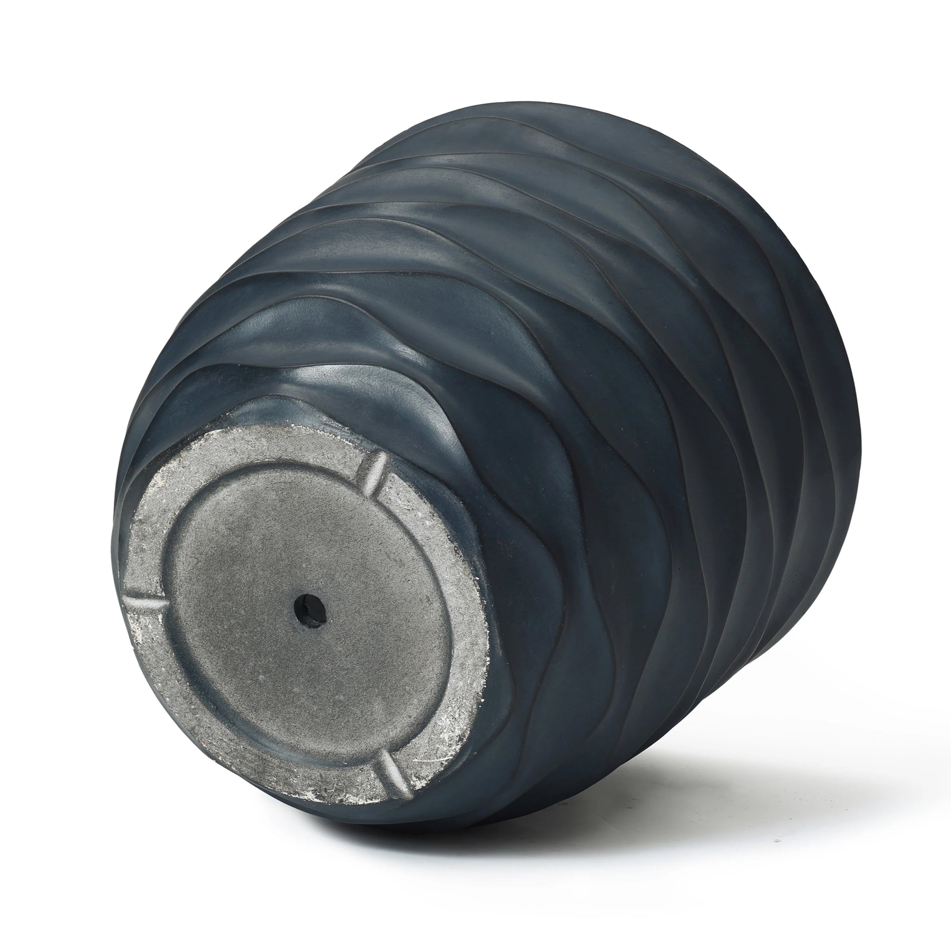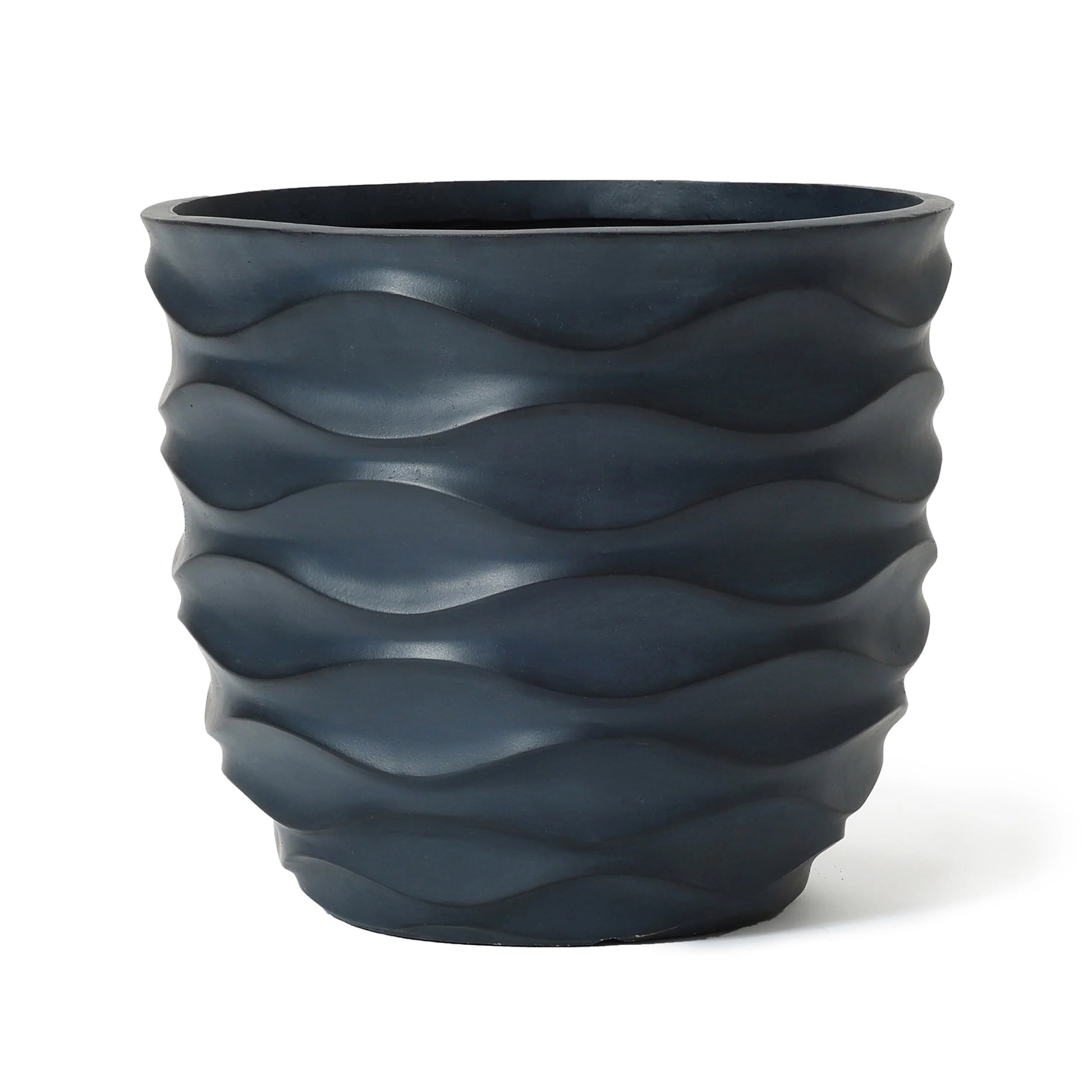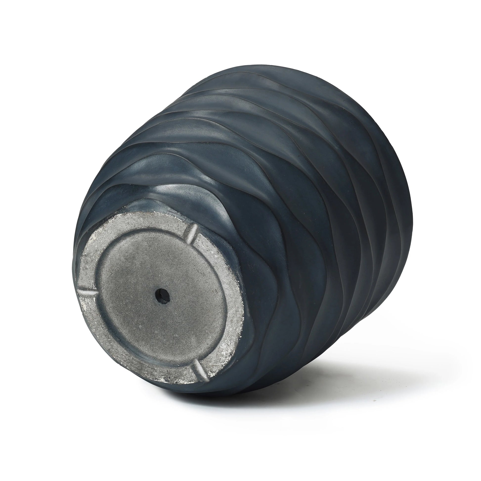 - Modern black round planter pot with horizontal waves design giving a refreshing lift to your indoor and outdoor space