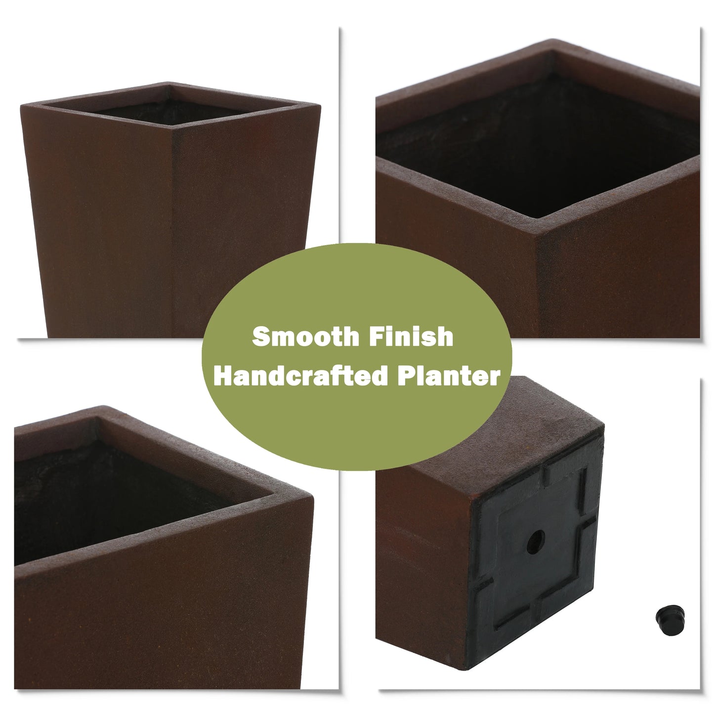 Bring a touch of modern farmhouse style to your outdoor space with Havenside Home's Rustic Brown Handcrafted Medium Angled Planter. Made of durable magnesium oxide (MgO), this planter is built to last and withstand the elements, including rain and UV rays. Its tapered square design and rustic brown finish make it a versatile addition to any decor, while the drainage hole at the bottom ensures that your plants stay healthy and well-watered.