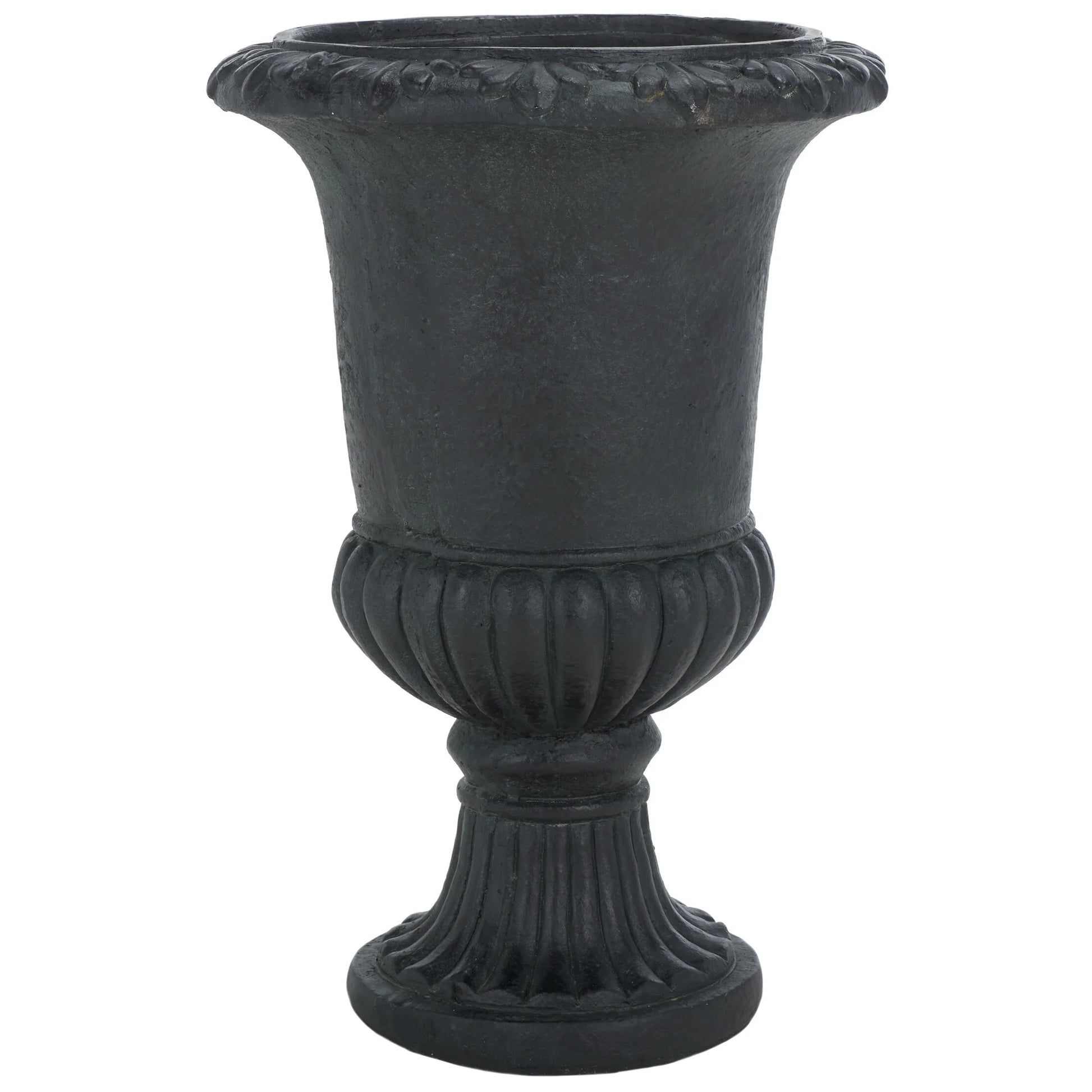 Bring a touch of elegance and grandeur to any outdoor space with our planter. The rim of our graceful urn planter is enriched with intricate vegetal relief. Beautifully complement with a fluted base, the planter makes a grand and classy statement. It is crafted with resin to lend a graceful and earthy appeal. Our classic planter serves as the perfect complement to large floral arrangements, and lush green plants, or can stand alone as a unique architectural detail in your entryway, walkway, or sunroom.
