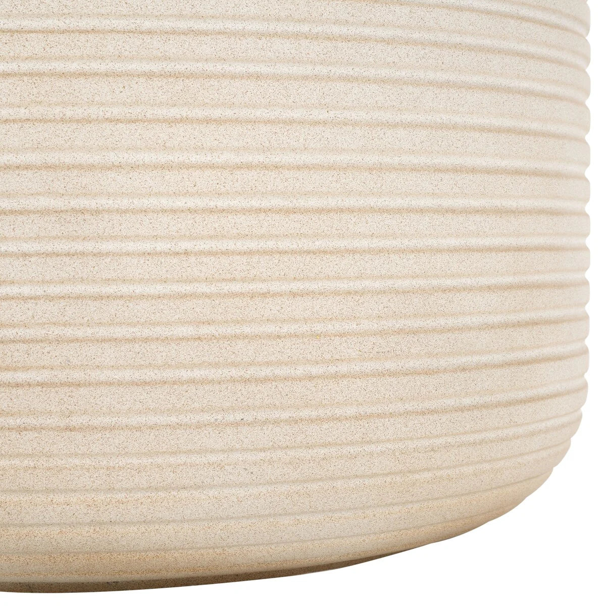 Introducing our Nardo Large Planter Pot, an exceptional addition to your indoor or outdoor decor that exudes stylish simplicity. Elegantly structured, this pot is sculpted in striking horizontal stripes that elevate the aesthetics of your space.Crafted to perfection using the robust yet lightweight Ficonstone, it provides resilience against harsh weather, ensuring longevity and preserving its original allure over time. Presented in a soft, versatile tone that effortlessly blends with various color themes, harmonizing your plant arrangements with charming subtlety.The Nardo Large Planter Pot is not just a pot, it is a sophisticated statement piece that underlines your impeccable taste in decor. With the impressive size, it offers ample space for your favorite plants to flourish, creating a distinctive focal point.Embrace this blend of durability, design, and class to breathe life into your surroundings. The Nardo Large Planter Pot in Beige - where style meets functionality.