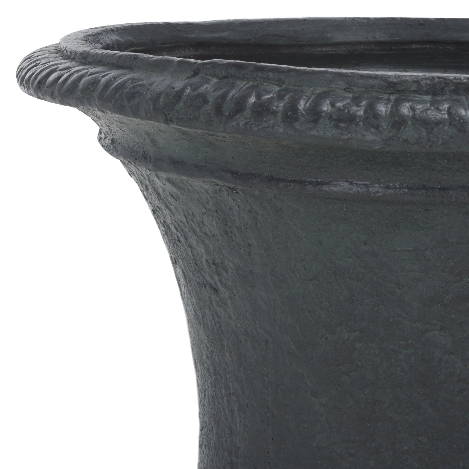 Update your home with the classic and sophisticated style of our planter. Deeply inspired by the classic era, our urn planter adds a nostalgic style to any outdoor space. It adorns beautiful vegetal patterns and a fluted base to serve as a stunning architectural detail on its own. Enriched with grandeur and elegance, the planter is crafted with resin to achieve a graceful and earthy feel. Our classic planter creates an elevated display of your floral arrangements and lush green plants in an entryway, walkway, or sunroom.